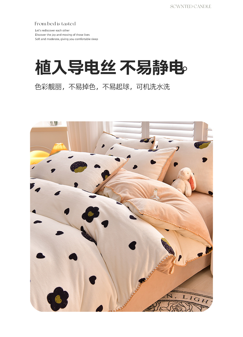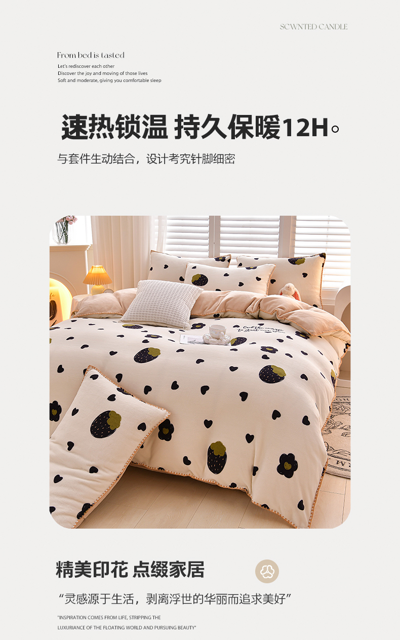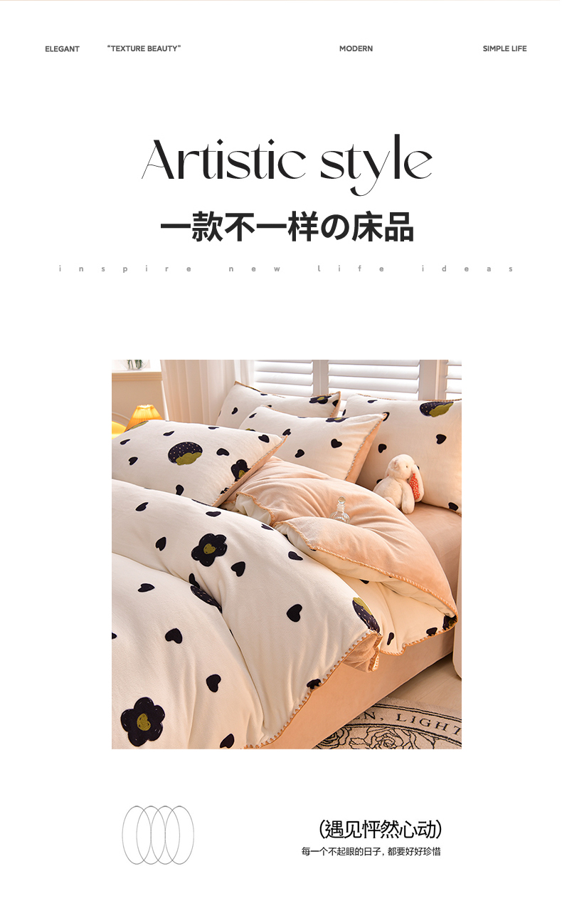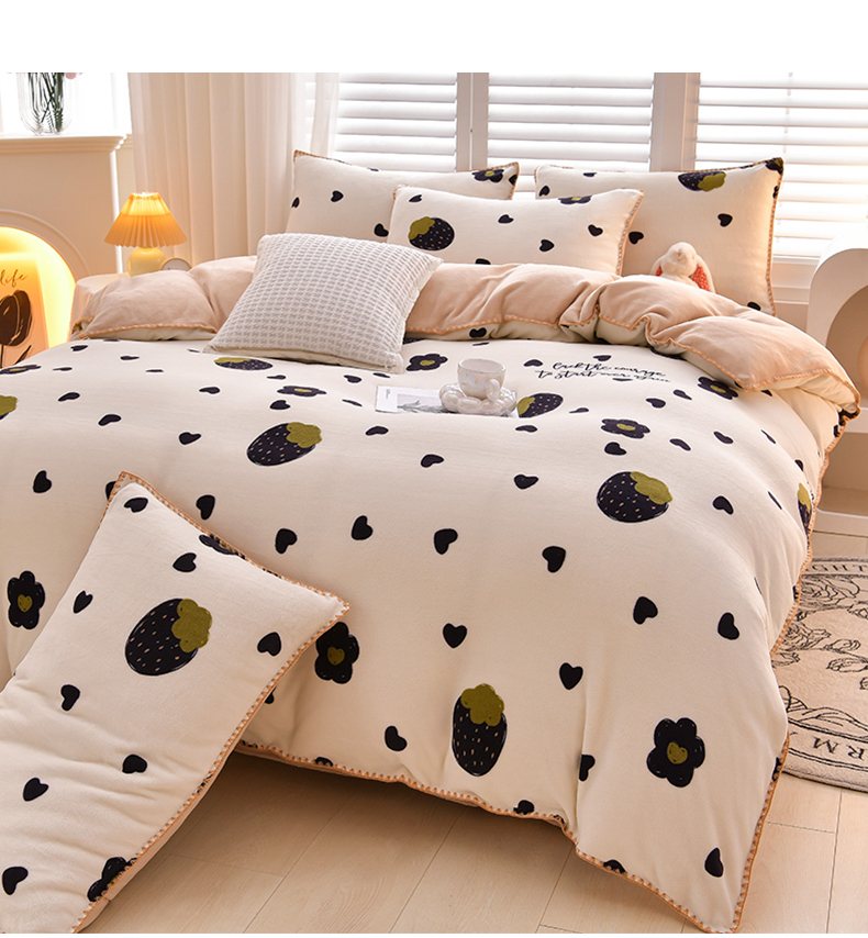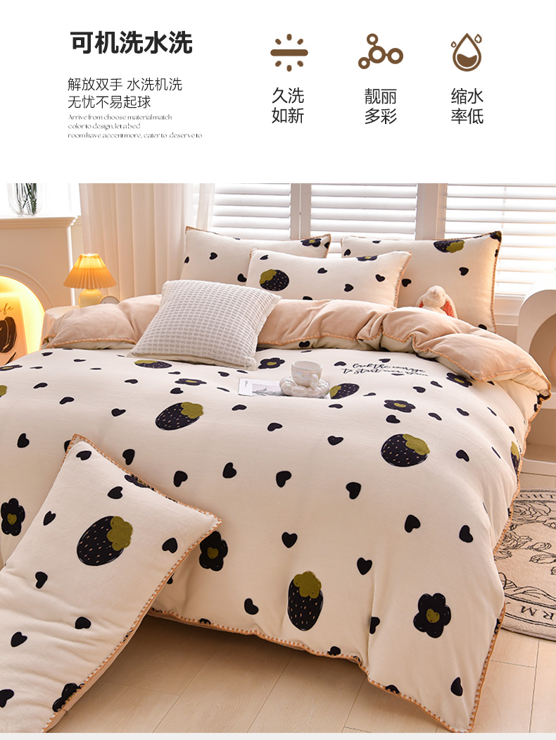 当前位置: 91家纺网 > 商品网购 > 床品套件 > 四件套 > 牛奶绒四件套 > 菡宝 2024新款高克重印花贝壳边牛奶绒四件套 爱心黑莓
