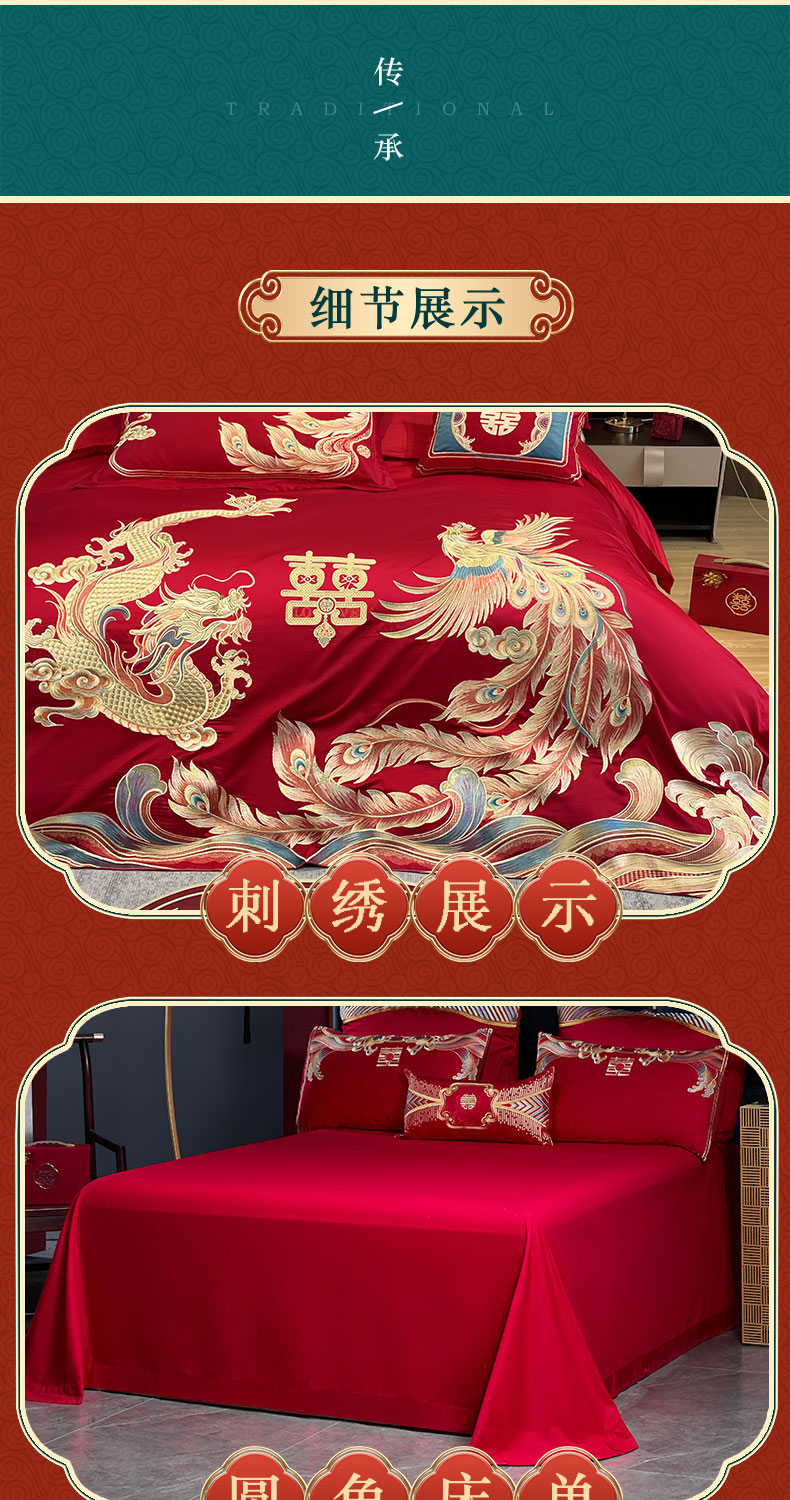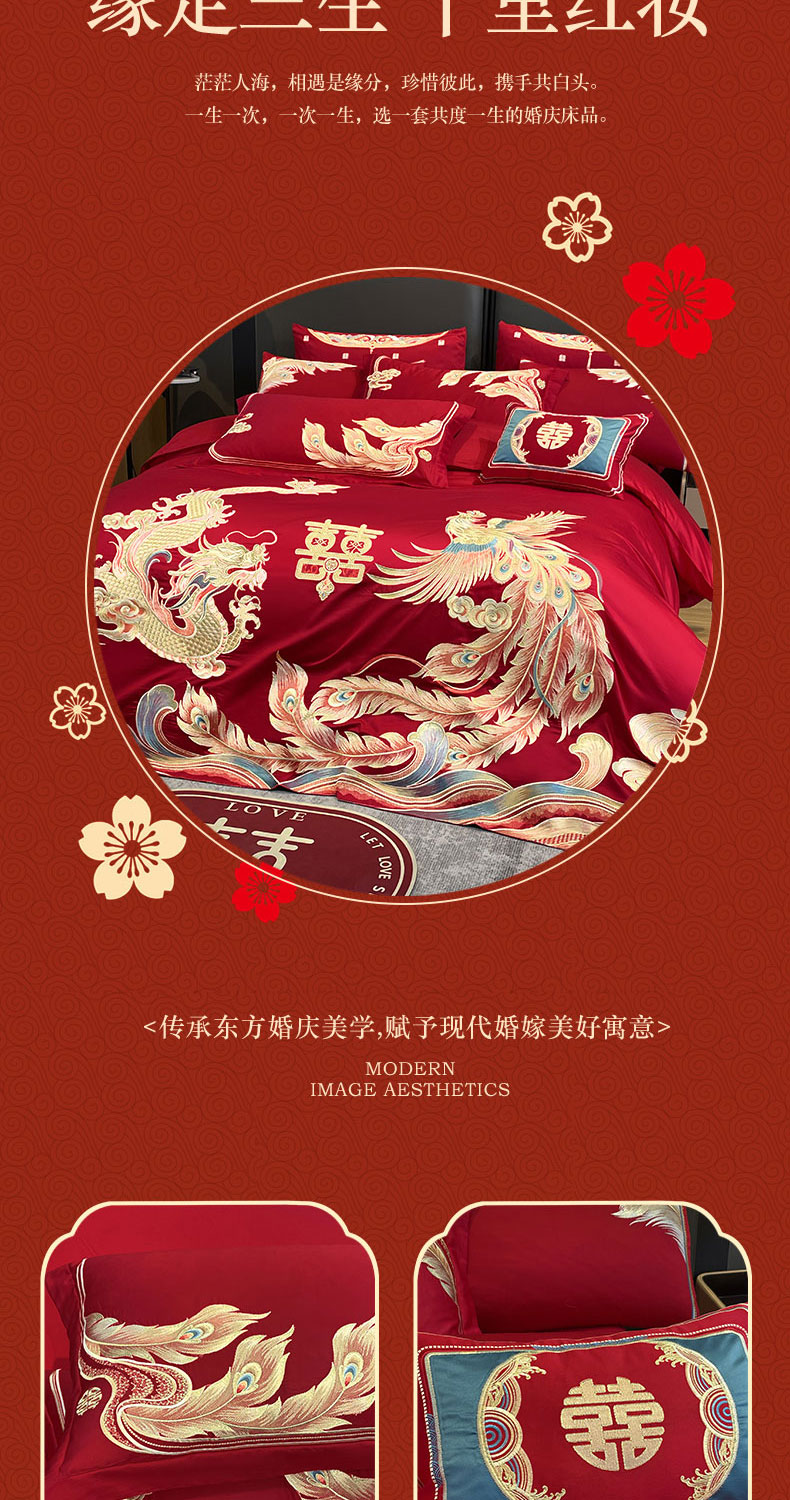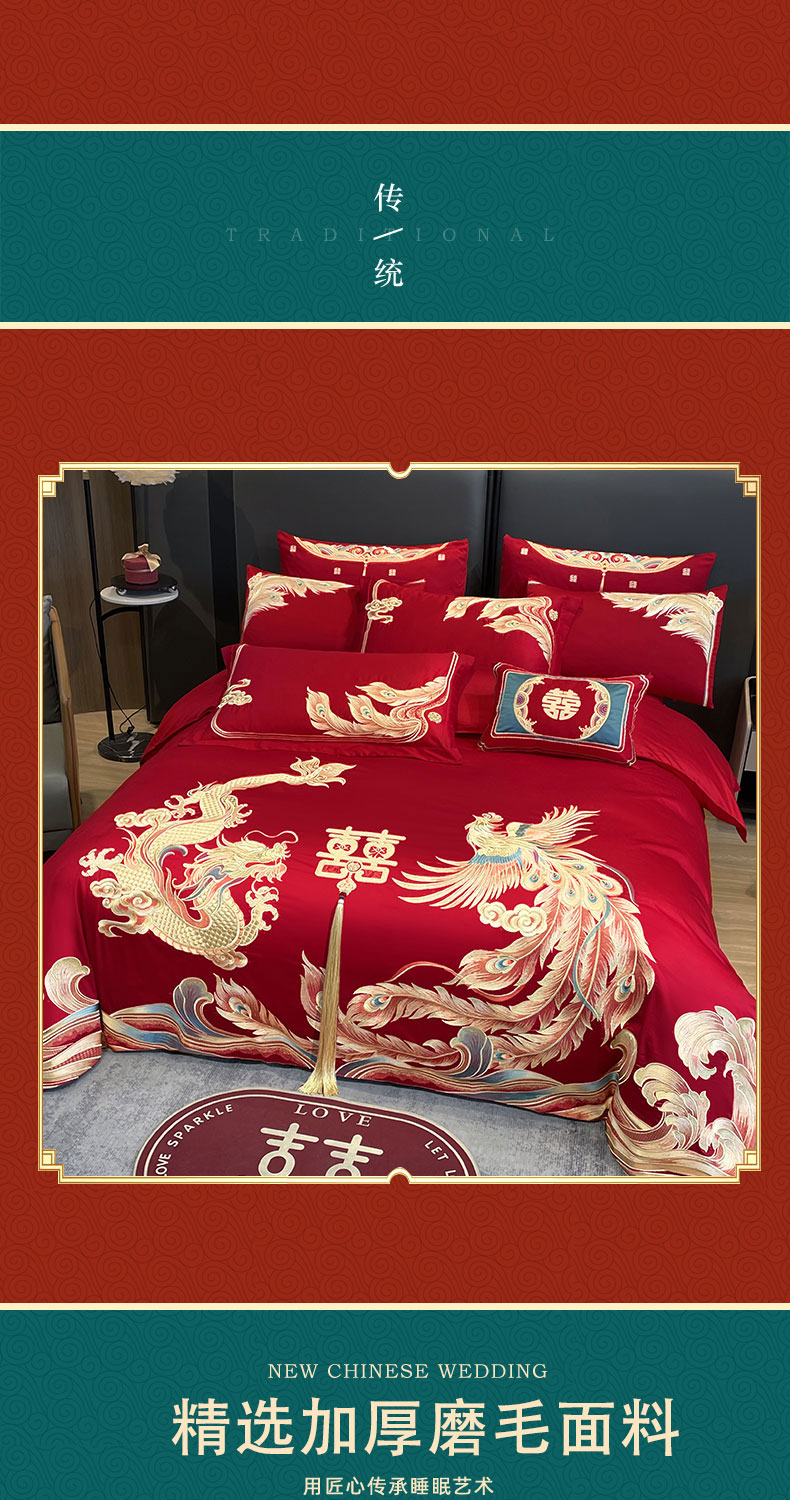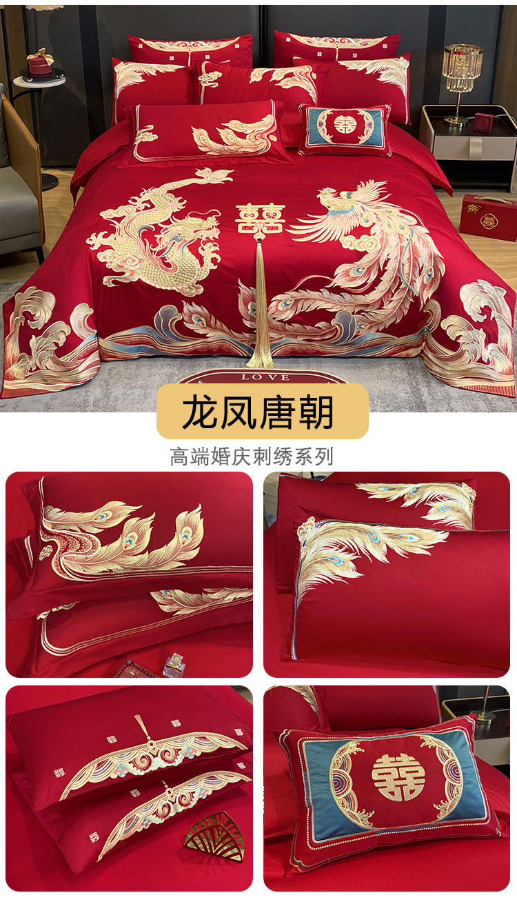 当前位置: 91家纺网 > 商品网购 > 床品套件 > 四件套 > 婚庆四件套 > 用心 2024年新款双面磨毛绣花婚庆四件套龙凤唐朝