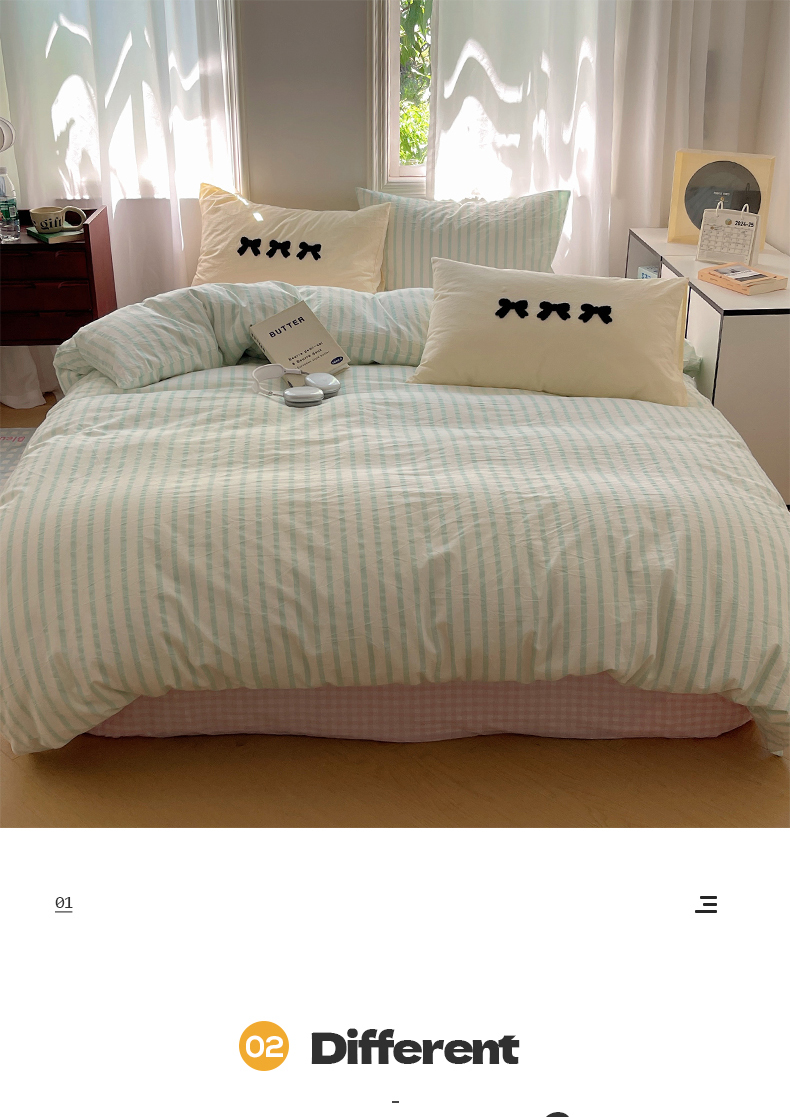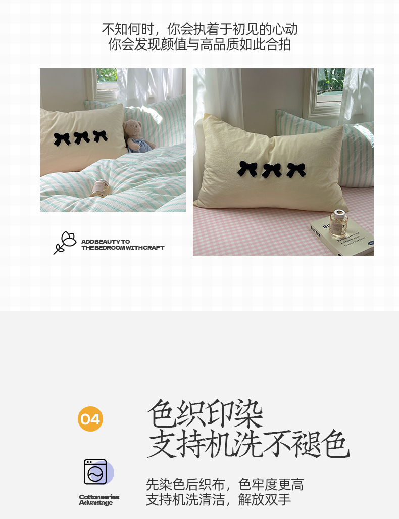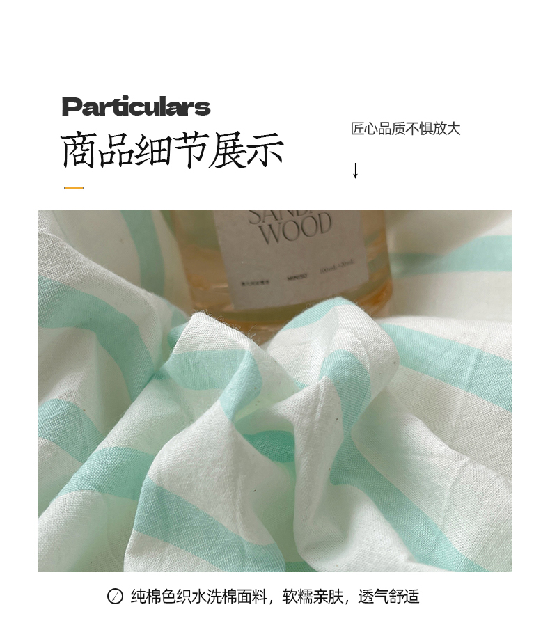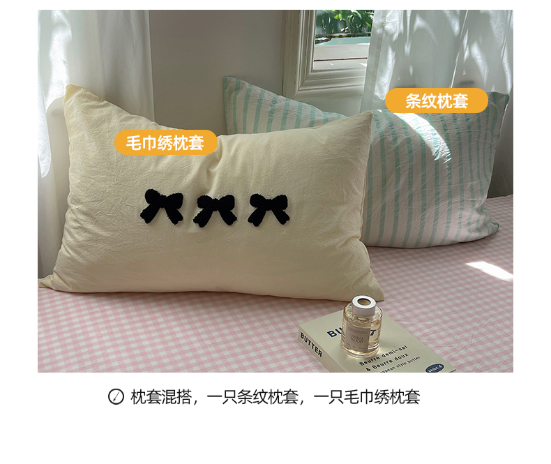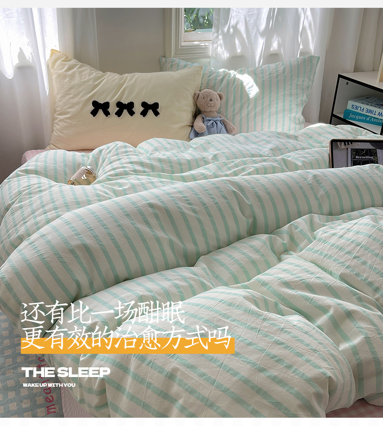 当前位置: 91家纺网 > 商品网购 > 床品套件 > 四件套 > 其它四件套 > 桃子家居 2024新款A类色织毛巾绣条纹小清新野原混搭纯棉系列四件套 色织水洗棉-野原绿蝴蝶结