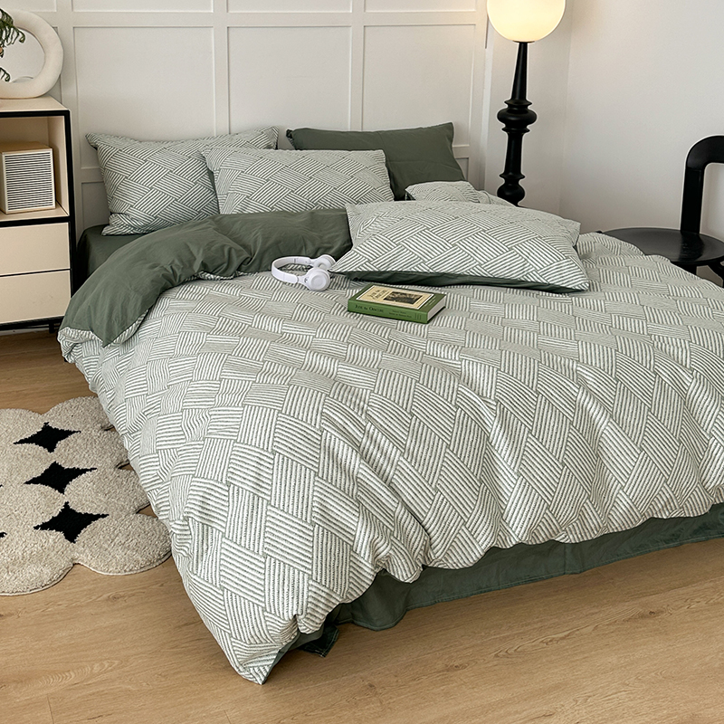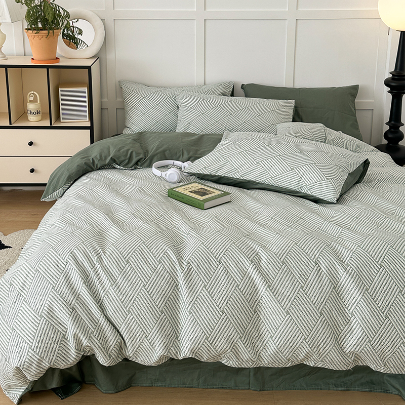 (总)昔可 2023新款全棉ins格子混搭系列四件套,ins简约绿格,粉蓝格,开心果格,学院格纹,粉绿格,海盐兰格,黄绿格,夏日蓝条,芝士黄条,紫芋泥芝士格