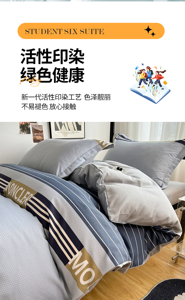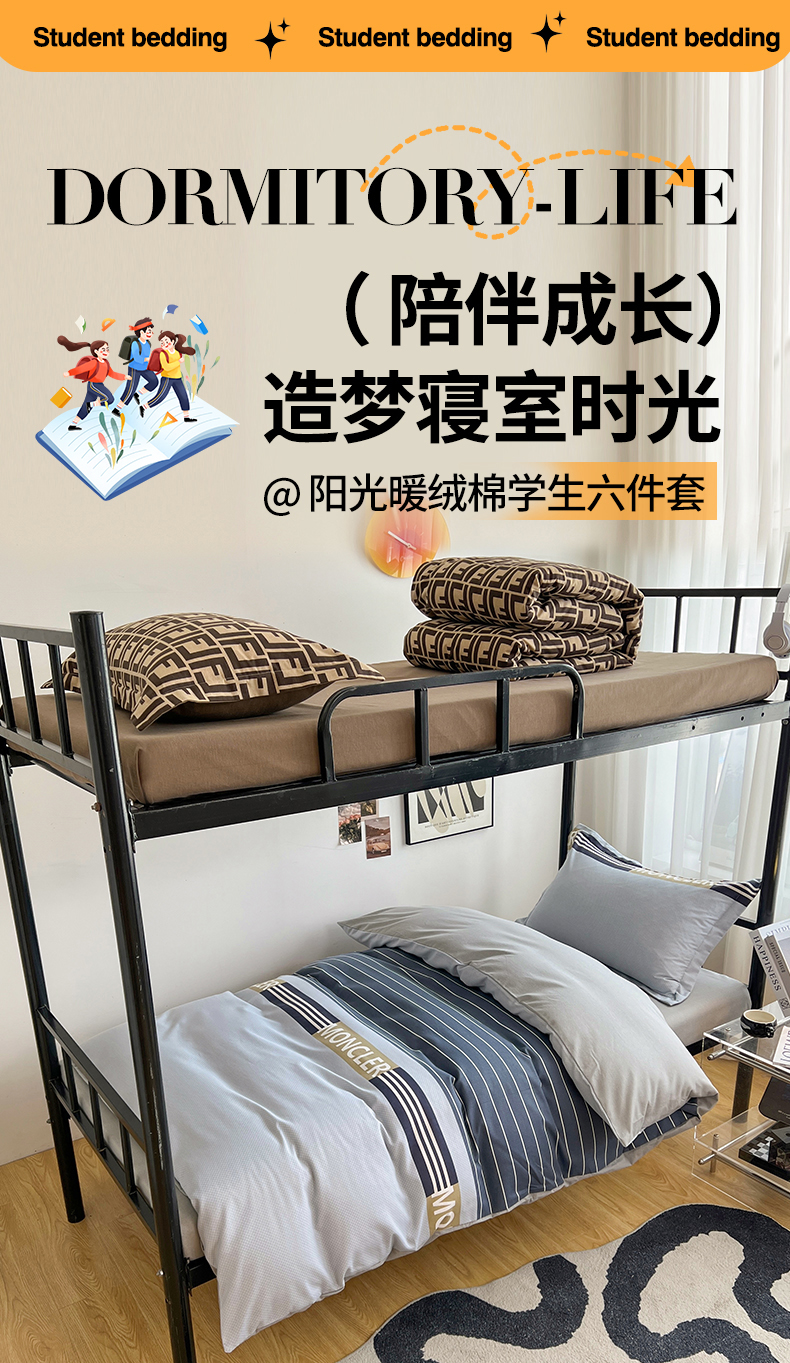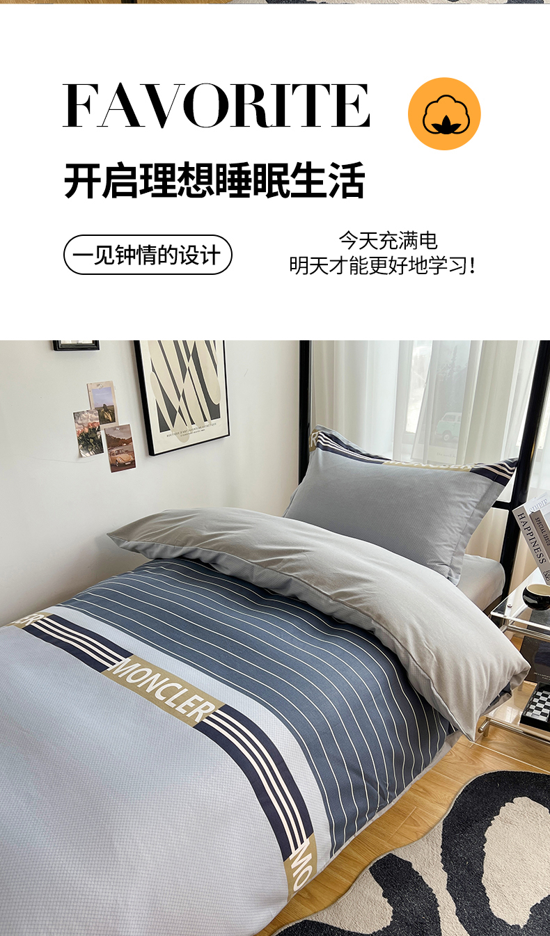 当前位置: 91家纺网 > 商品网购 > 床品套件 > 三件套 > 慕木 2025新款A类印花阳光暖绒棉高克重170克学生宿舍床三件套被芯床垫枕芯上下铺六件套 莫妮卡-蓝