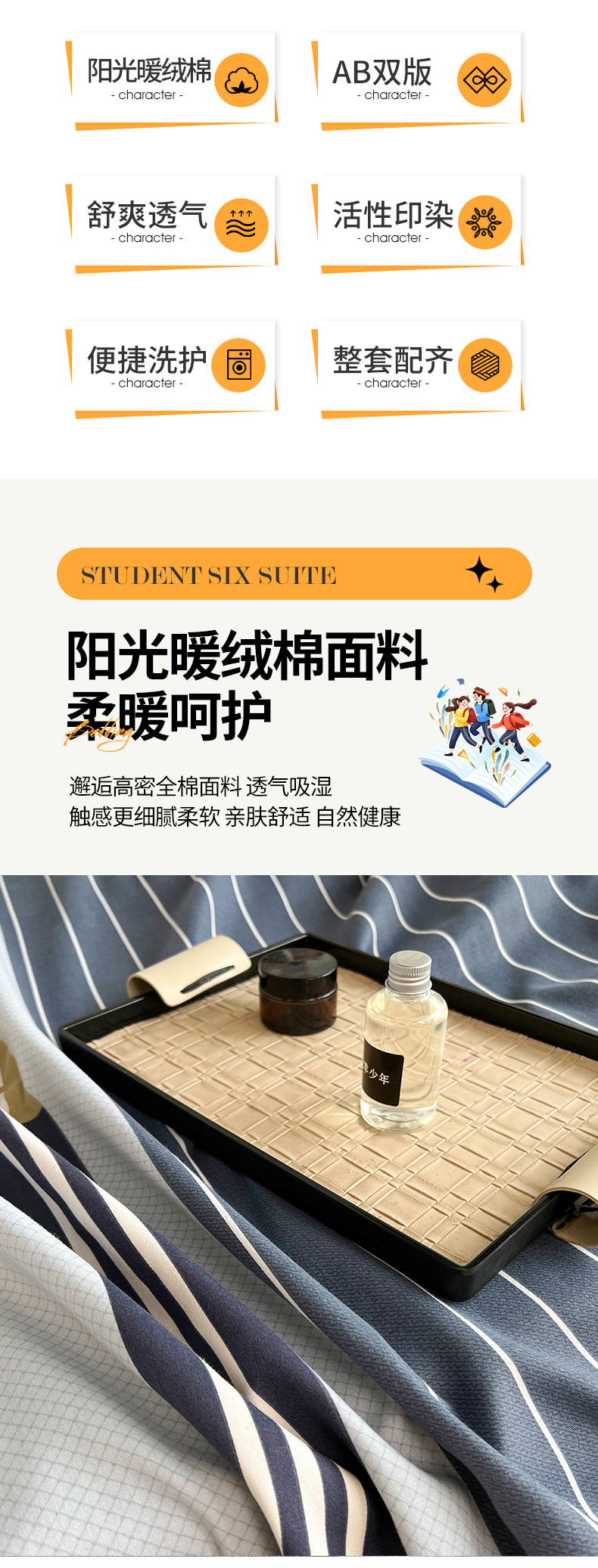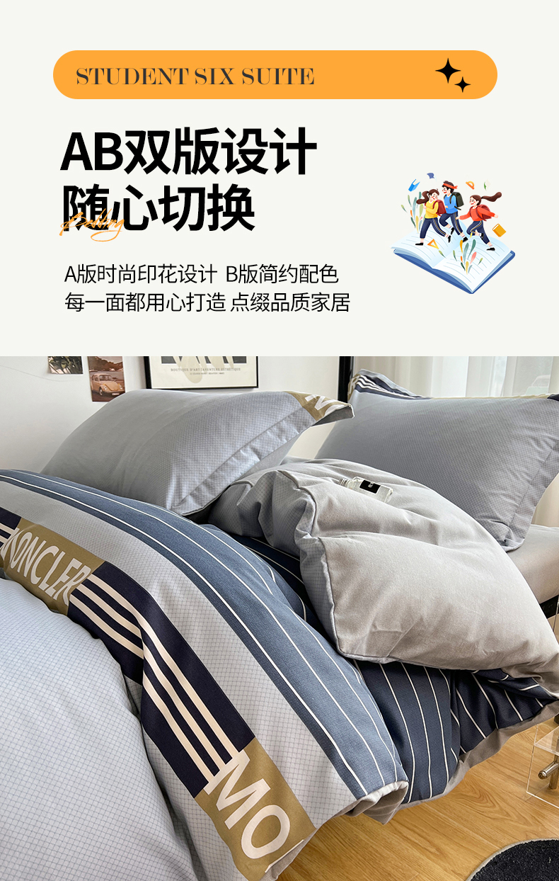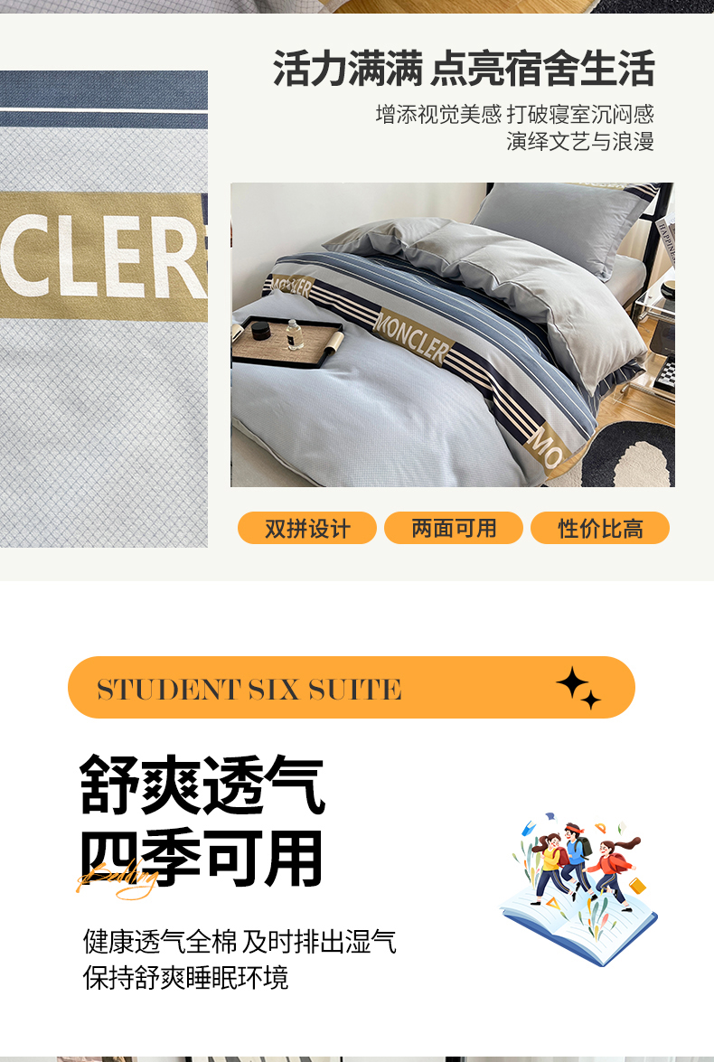 当前位置: 91家纺网 > 商品网购 > 床品套件 > 三件套 > 慕木 2025新款A类印花阳光暖绒棉高克重170克学生宿舍床三件套被芯床垫枕芯上下铺六件套 莫妮卡-蓝