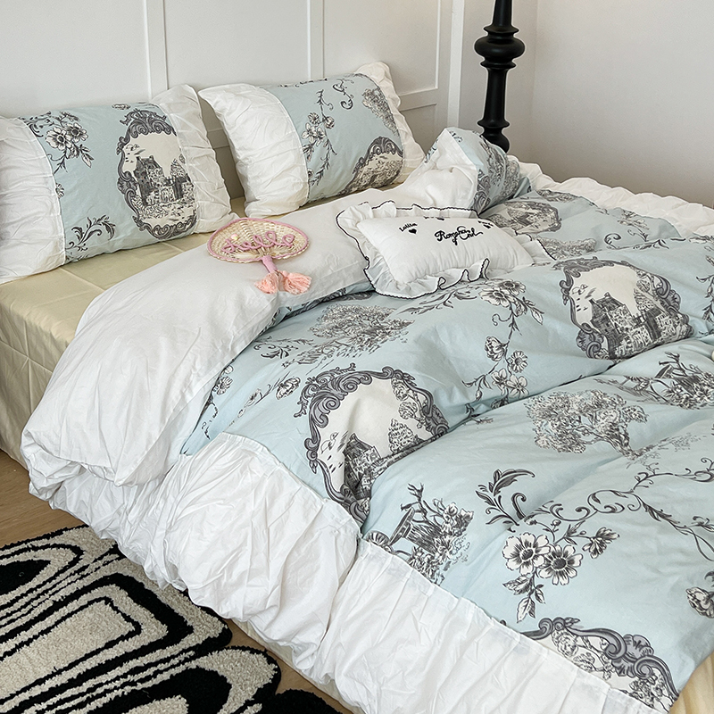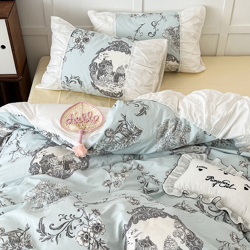 商品名称:昔可家纺 2024新款韩版花边工艺款轻奢四件套 复古城堡