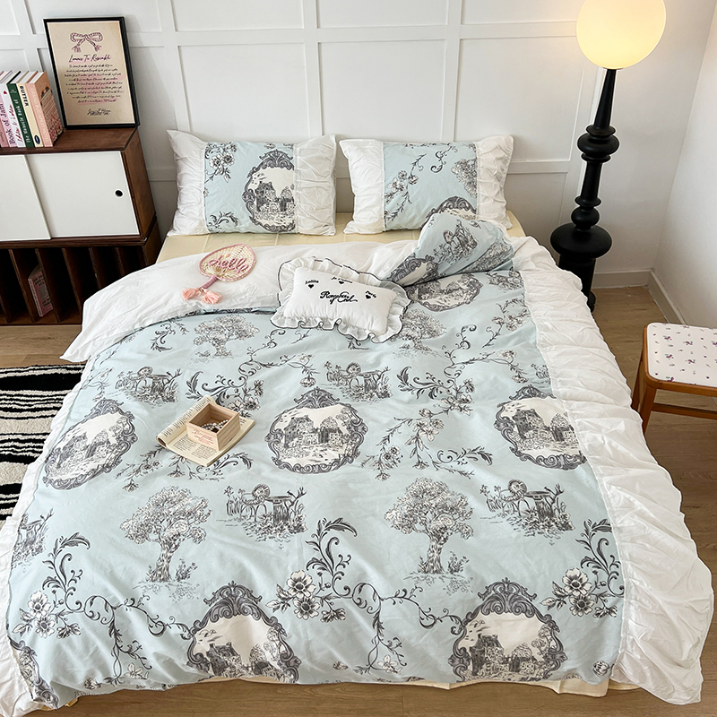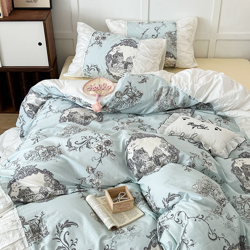昔可家纺 2024新款韩版花边工艺款轻奢四件套 复古城堡