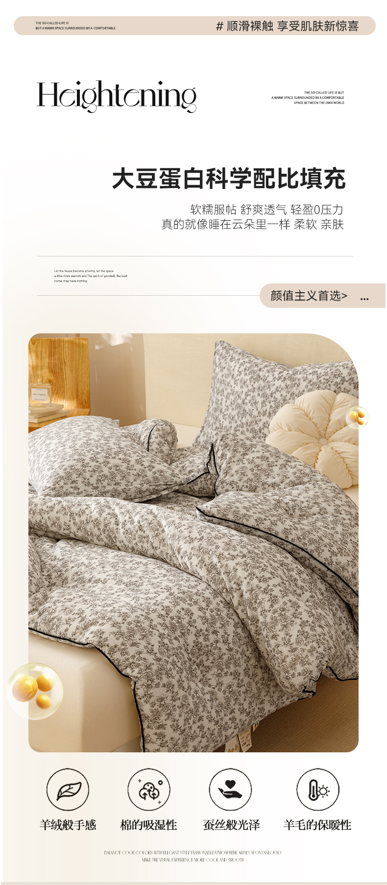 • 填充纤维种类: 大豆蛋白改性聚酯纤维