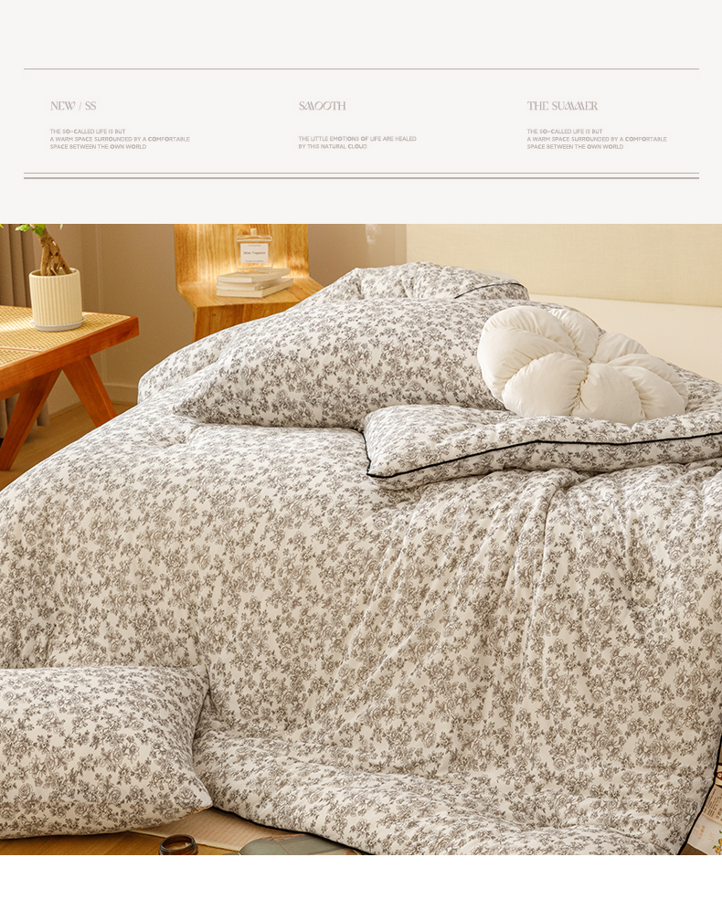 (总)优被业 2025新款A类全棉中古风全棉三层纱提花大豆夏被,展示图,长夏-咖,长夏-玉,春亦-绿,锦堂-灰蓝,灵叶-咖,流年-灰,小熊-咖,叶茂-灰