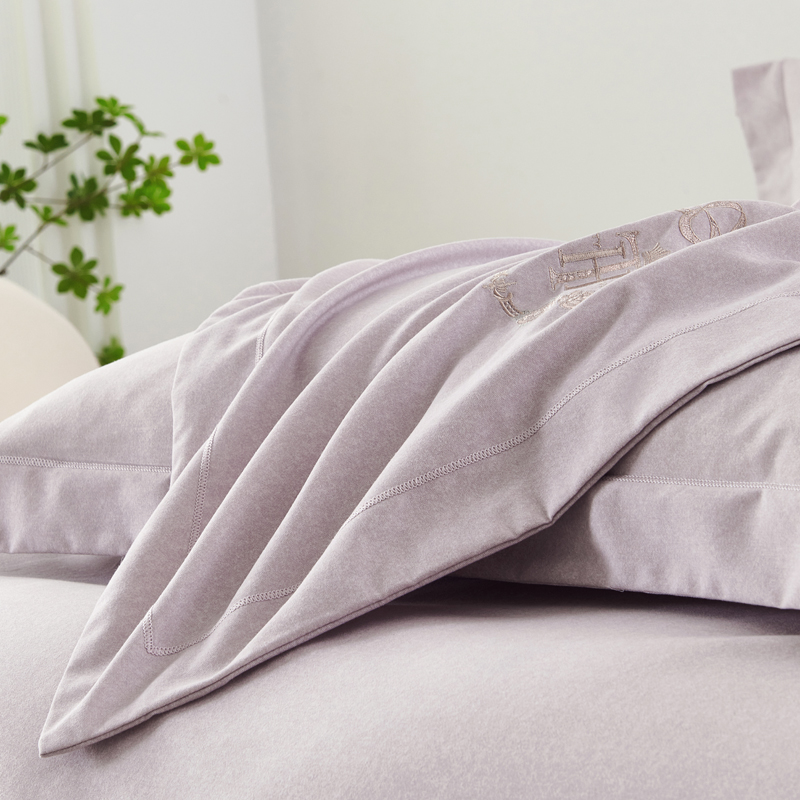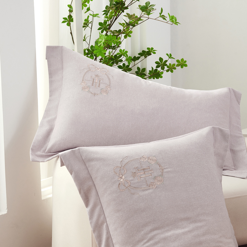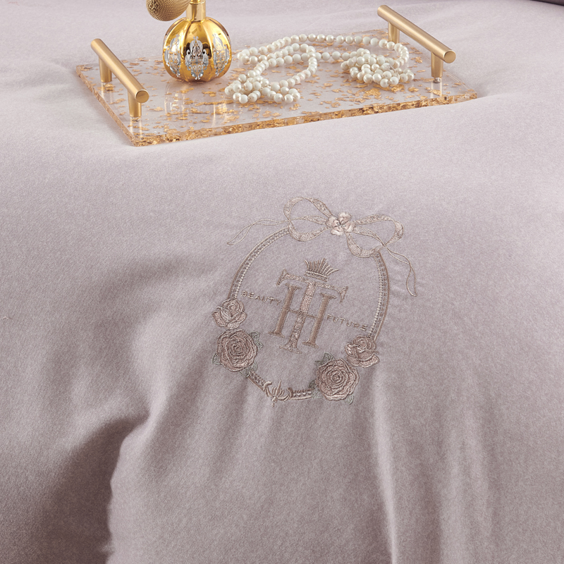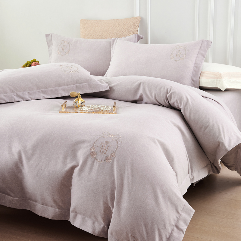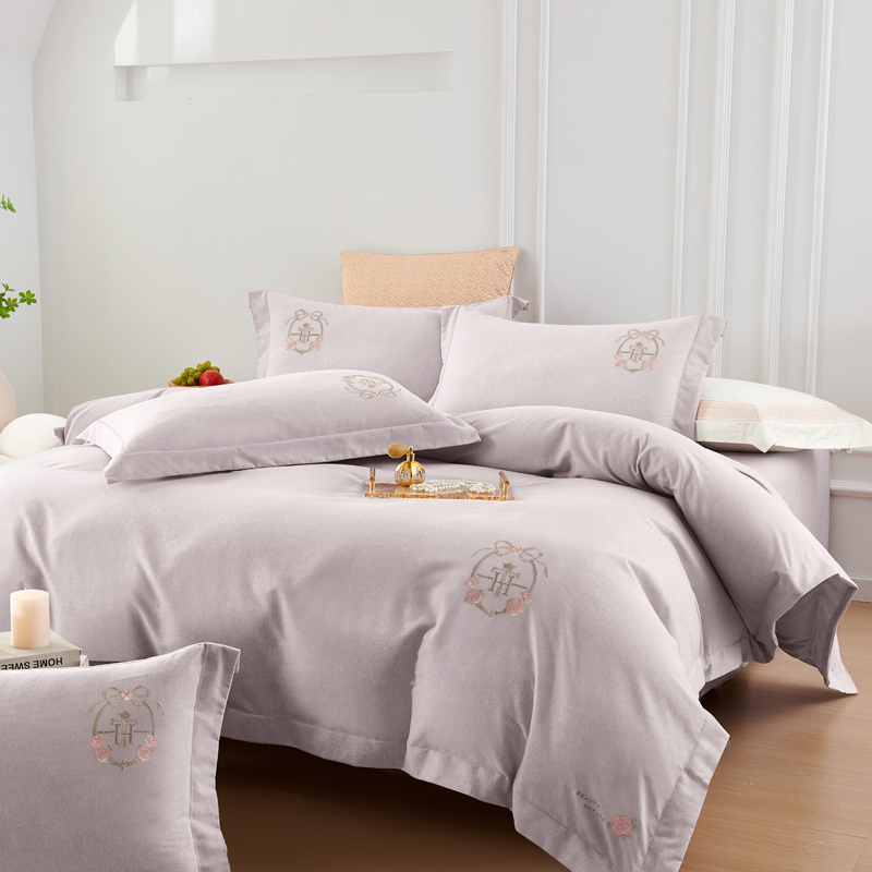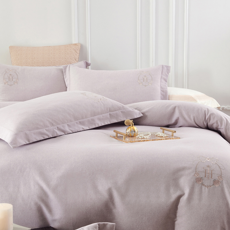 U品汇 2024新品生态加厚长绒棉纯棉绣花40S全棉磨毛刺绣四件套宽边款 梵诗迪 -紫灰