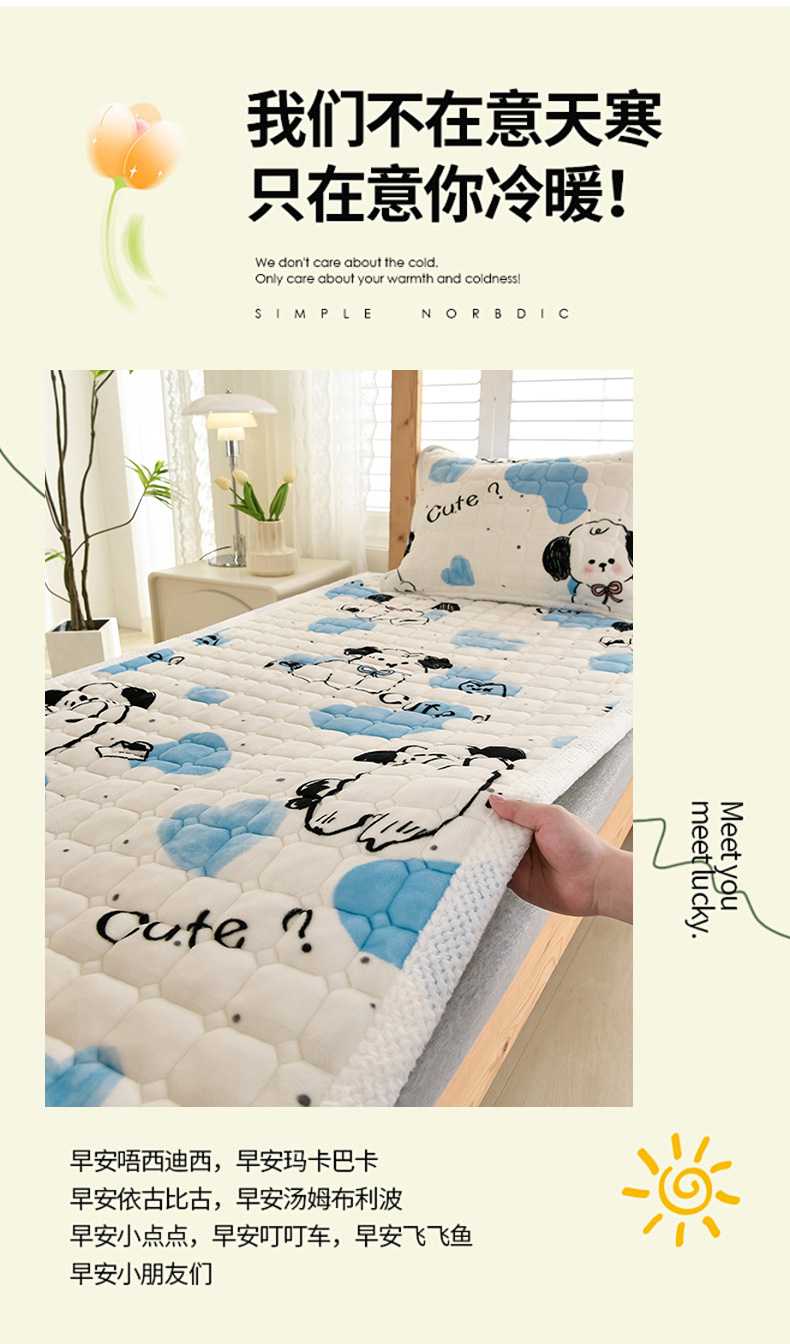 当前位置: 91家纺网 > 商品网购 > 床垫/床褥 > 普通床垫 > 牵依 2025新款牛奶绒印花床垫学生床褥 班尼狗