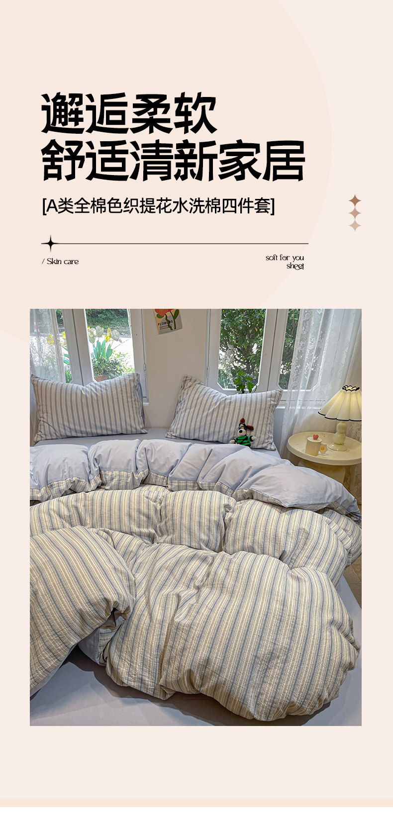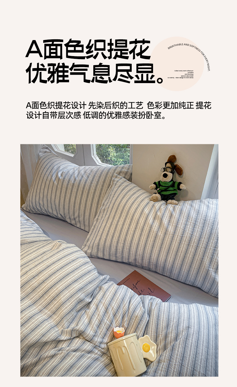 (总)莱茵家居 2025新款全棉纯棉皱皱纱条纹四件套-杼影,杼影-咖纸蓝,杼影-冷雾蓝,杼影-麦浪紫,杼影-绵云咖,杼影-奶泡粉,杼影-暖果黄,杼影-午茶绿,杼影-雨巷灰