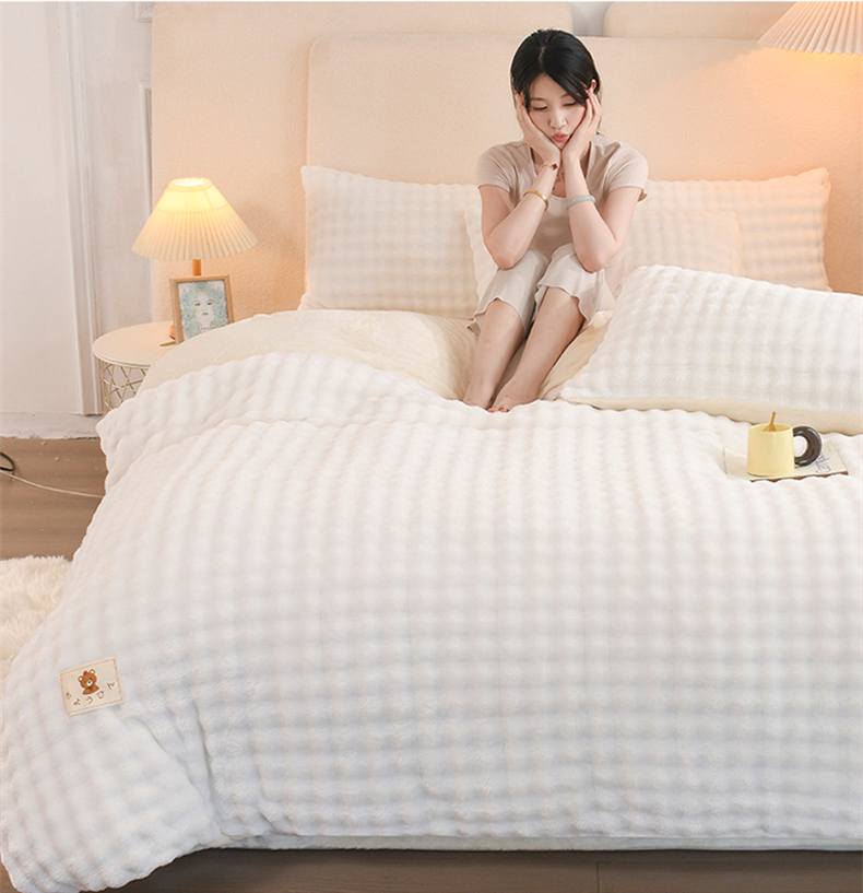 当前位置: 91家纺网 > 商品网购 > 床品套件 > 四件套 > 其它四件套 > 2024新款A类泡泡兔毛绒四件套系列 【泡泡】-米白