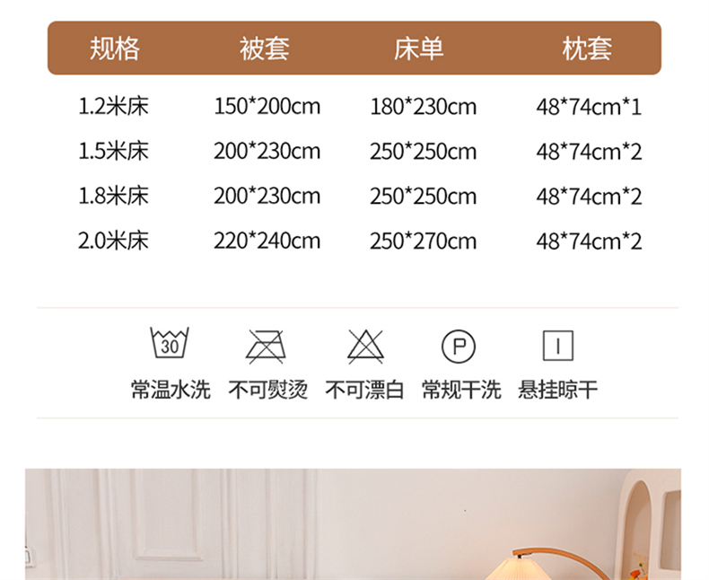 1.8m 床笠款四件套 | ¥110.00 |