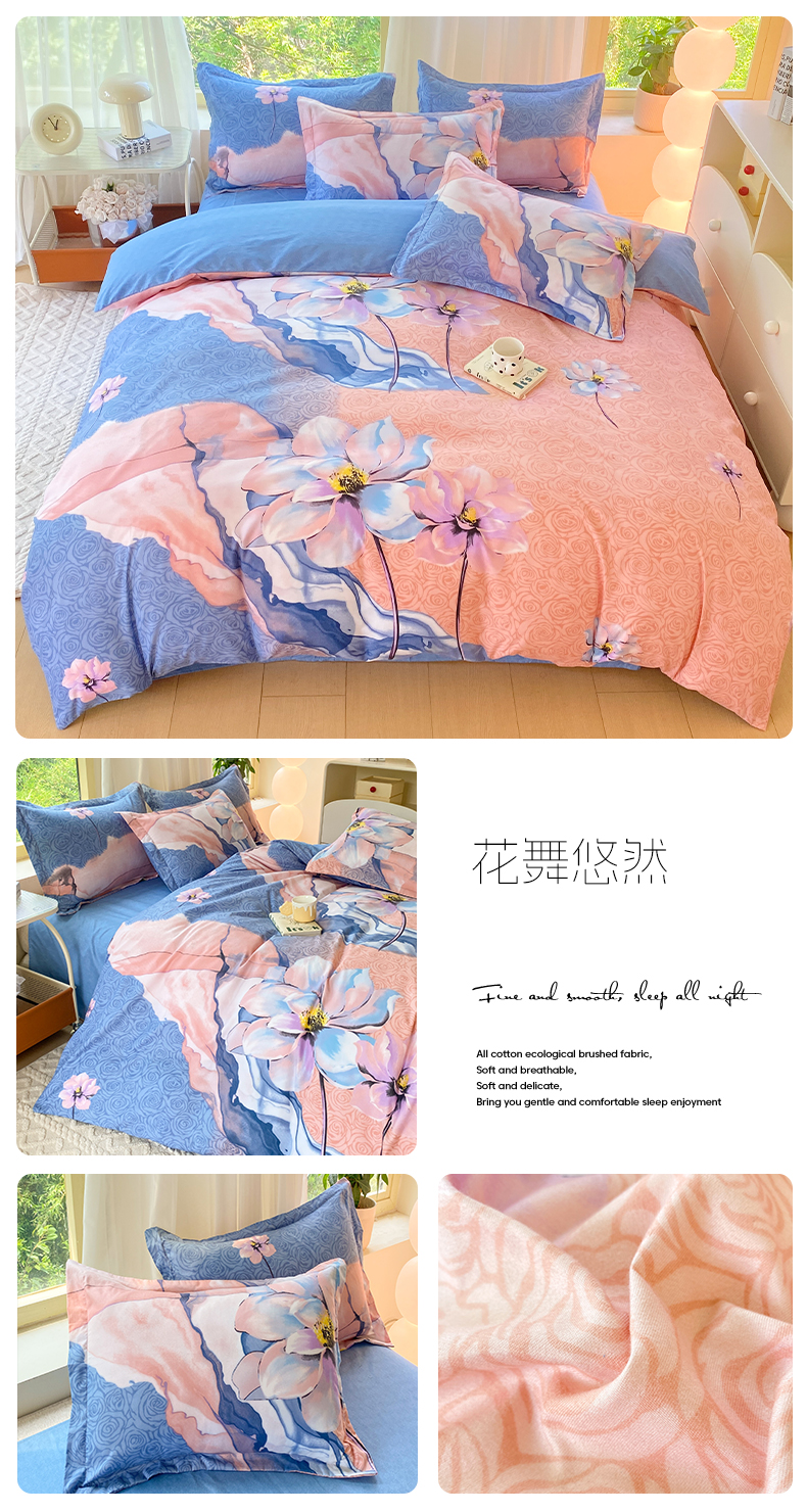 商品名称:2025新款植物羊绒大板磨毛活性印花四件套花舞悠然