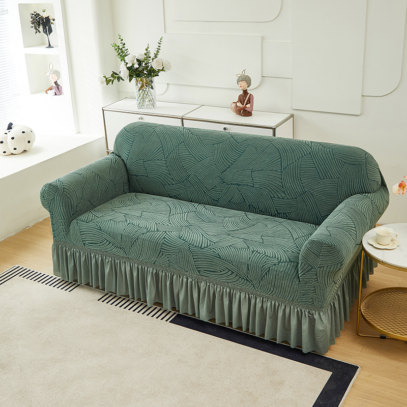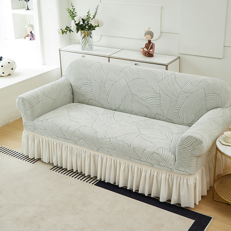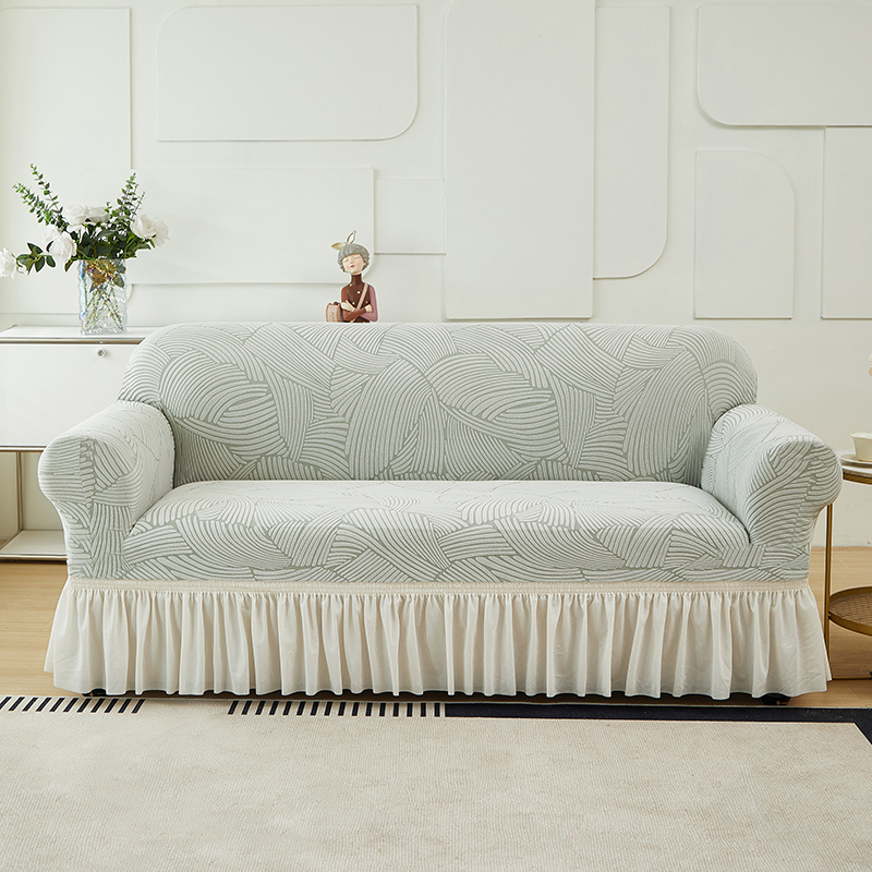 (总)共鸣沙发套 2025春夏新款水波纹裙摆弹力提花全包万能沙发套单沙发套裙摆款,浅灰色,橄榄绿,黑色,米黄色,墨绿色,深灰色(偏蓝),驼色,象牙白
