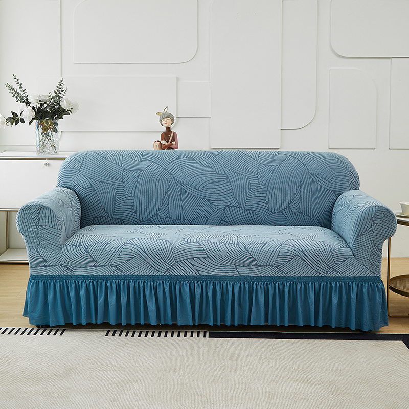 商品名称:共鸣沙发套 2024新款臻品提花系列沙发套(裙摆款) 枫纹-净蓝