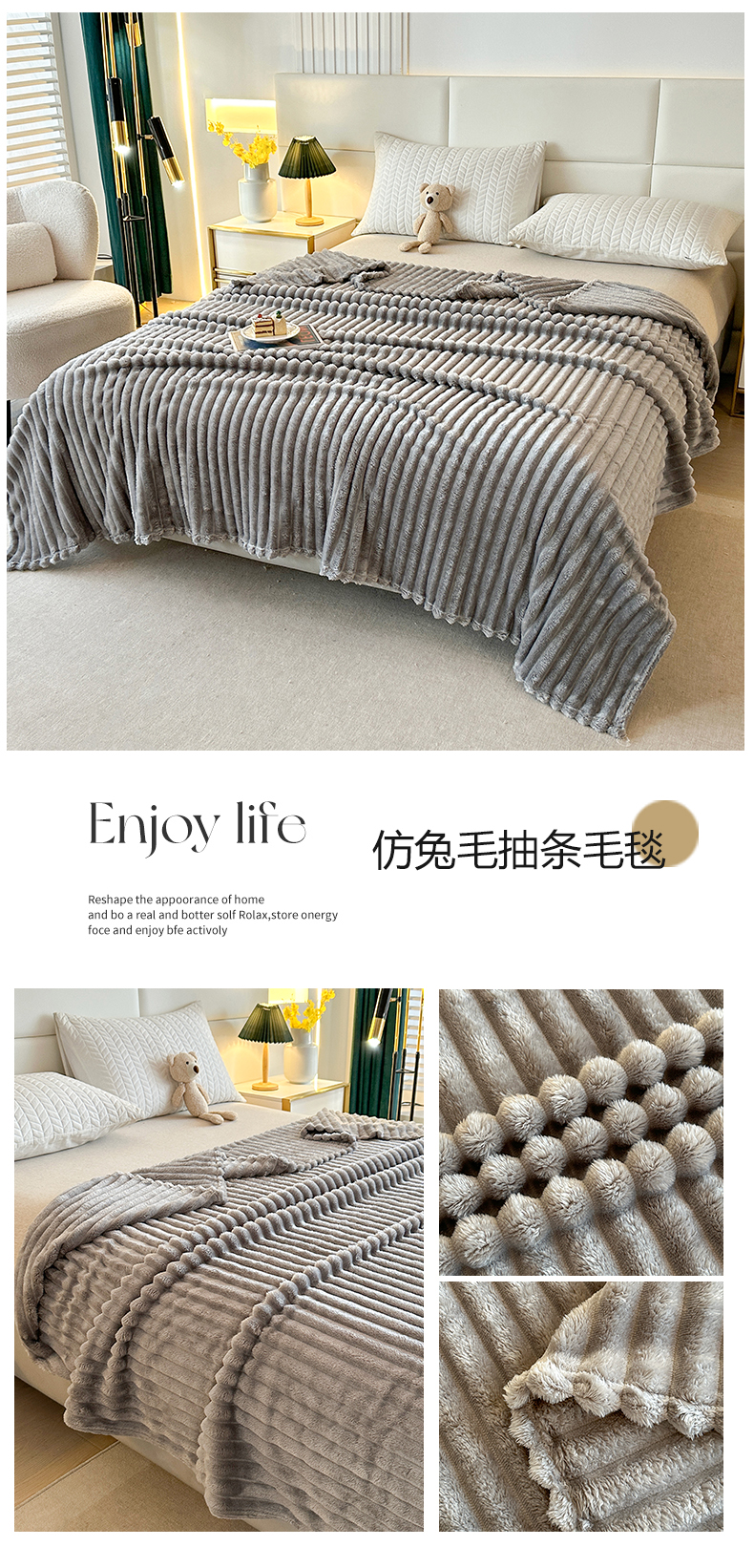 商品名称:芸锦豪 2024新款仿兔毛抽条毛毯-卷边款 灰色