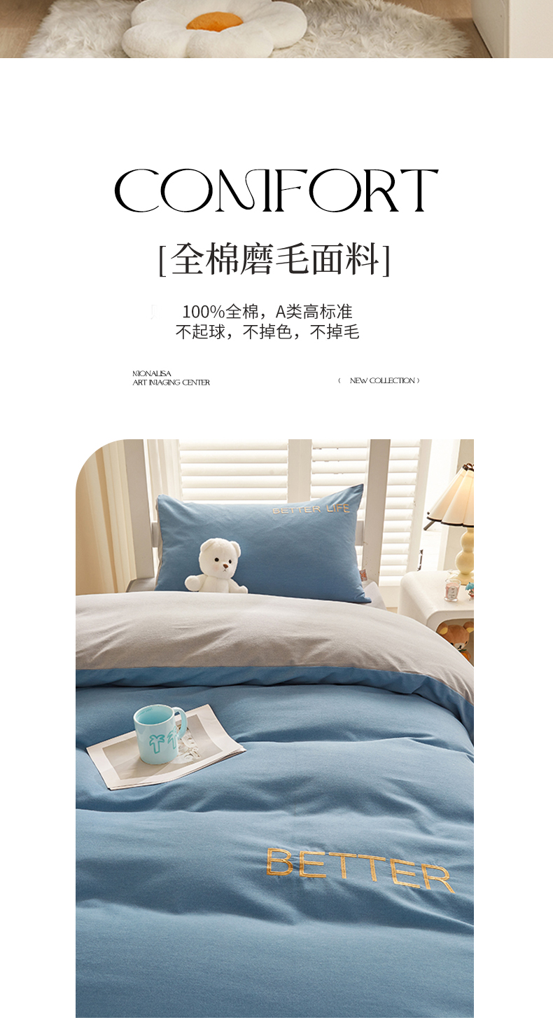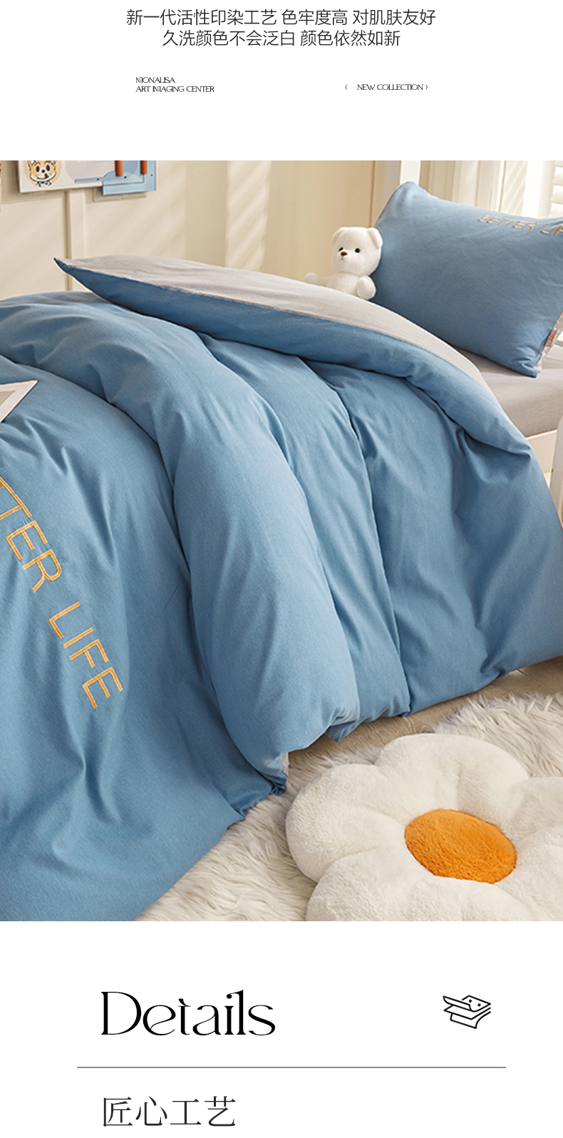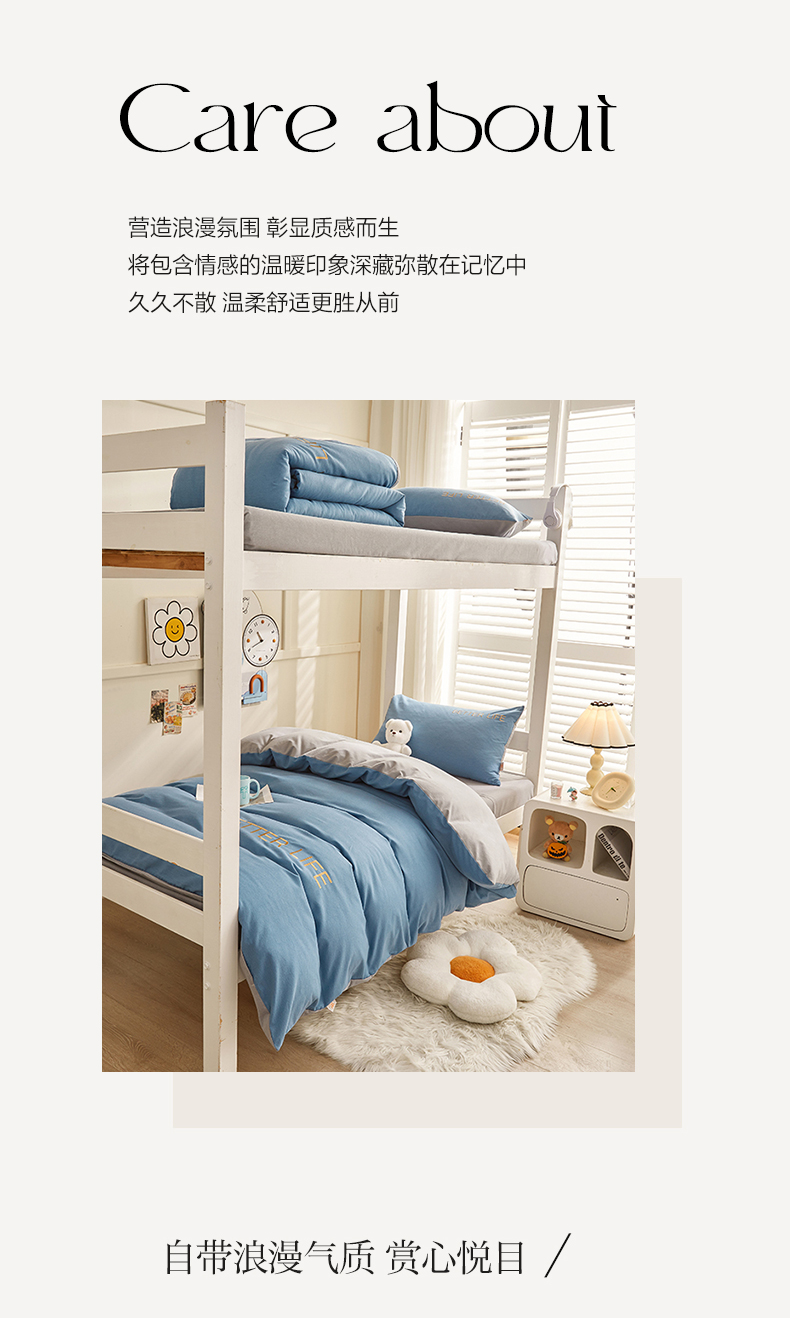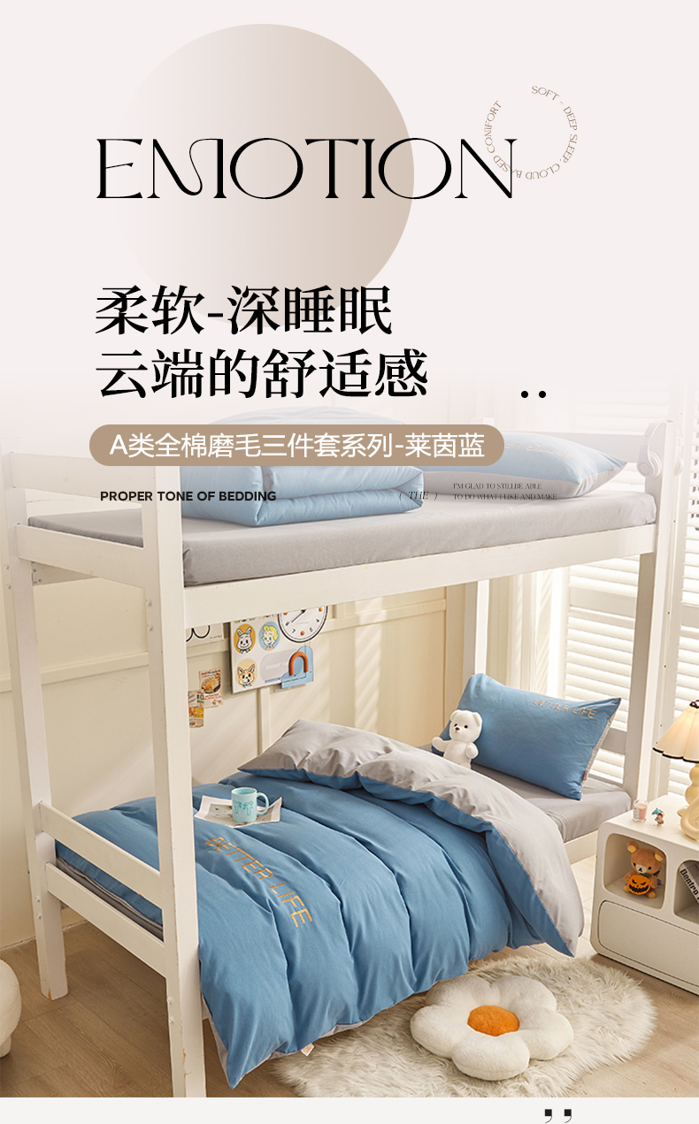 商品名称:七仙女家纺 2025新款全棉生态磨毛-前程似锦系列-学生三件套 莱茵蓝