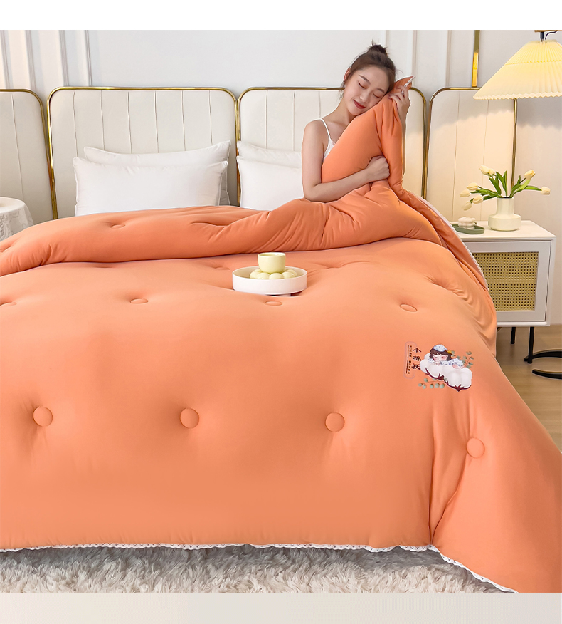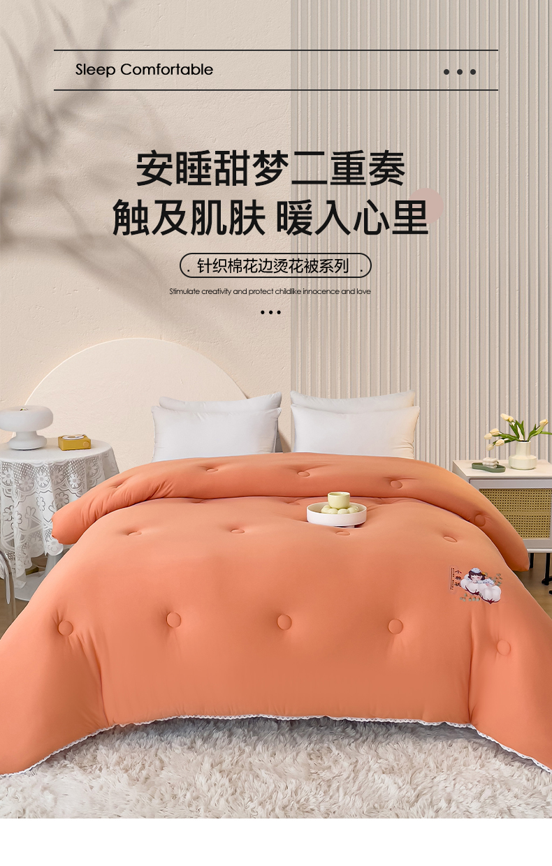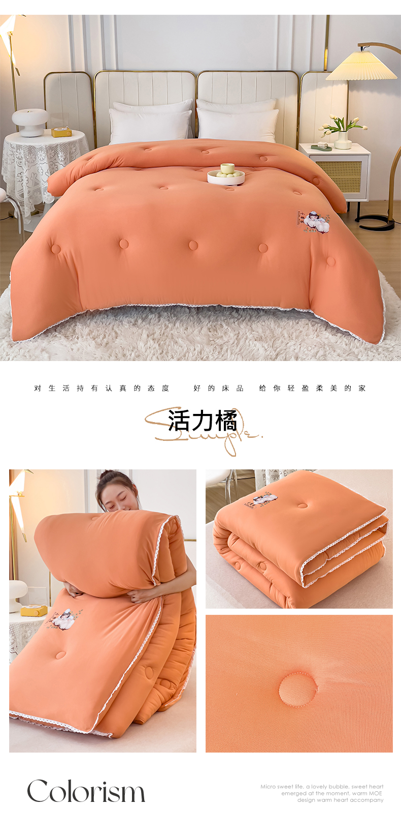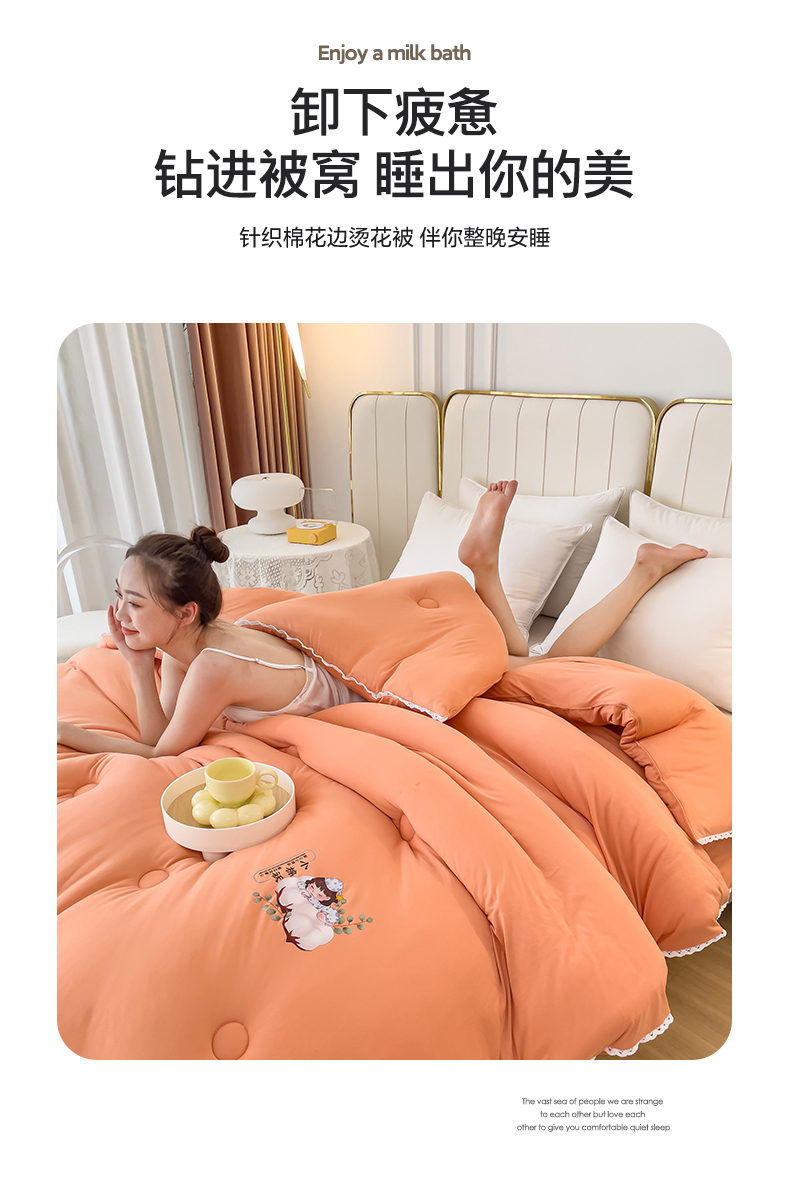 商品名称:81号家纺 2024新款针织棉花边烫花被冬被被芯 活力橘