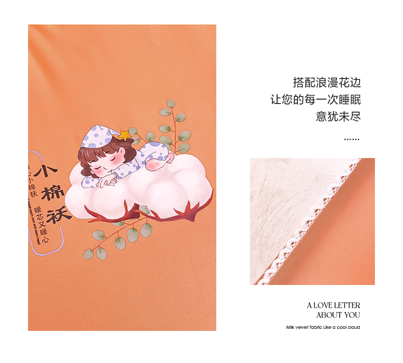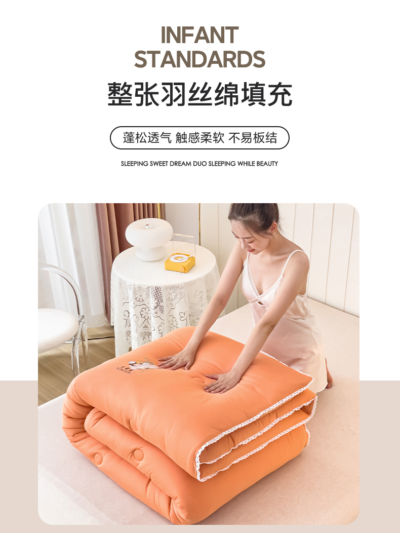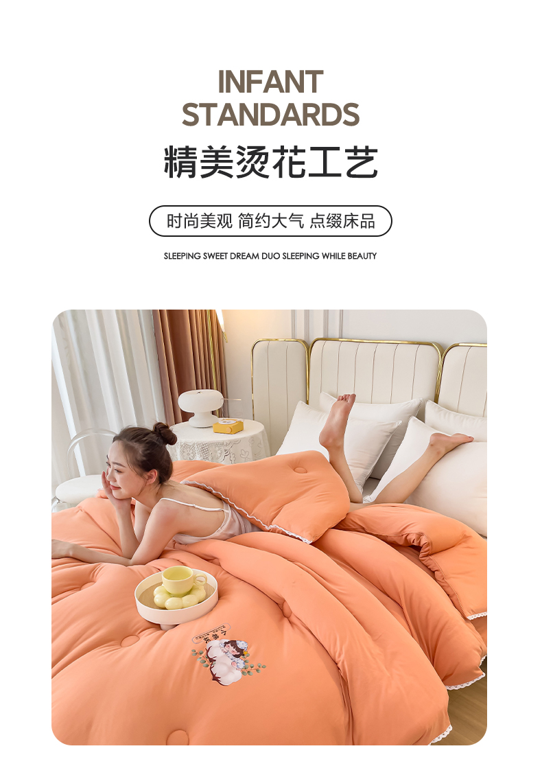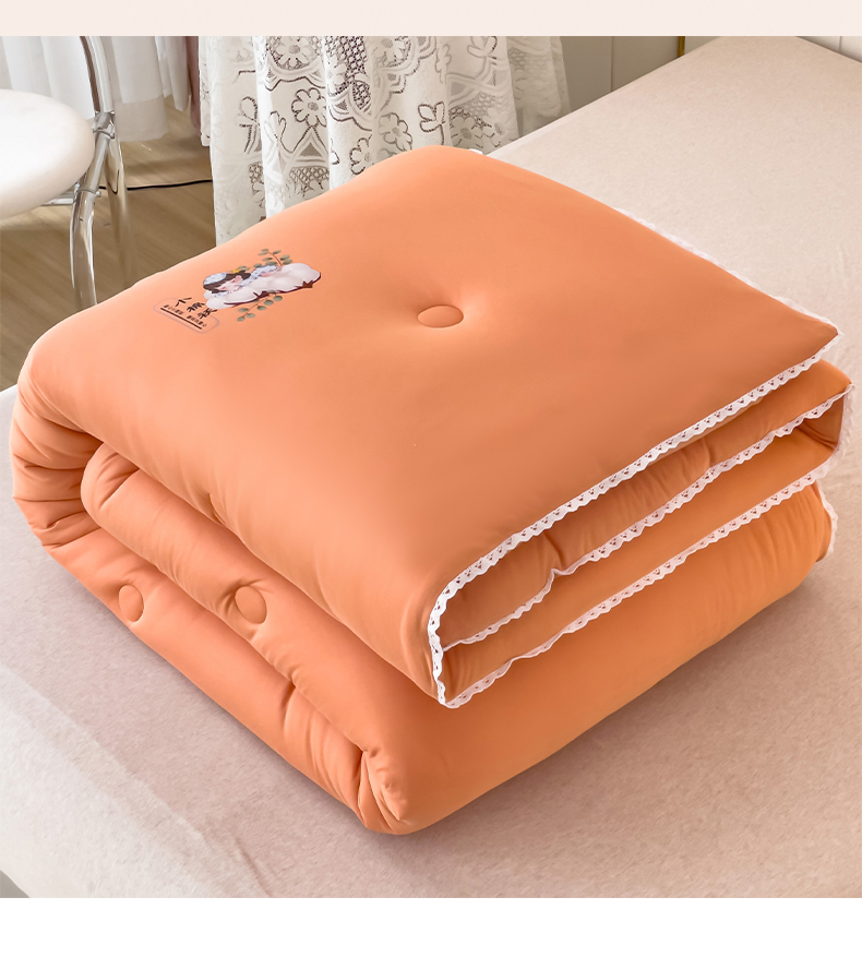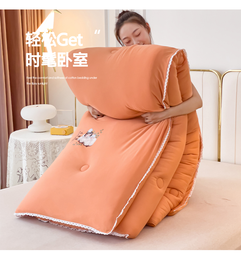 商品名称:81号家纺 2024新款针织棉花边烫花被冬被被芯 活力橘