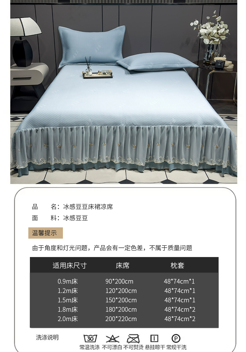商品名称:81号家纺 2024新款冰感豆豆床裙款凉席 高级灰