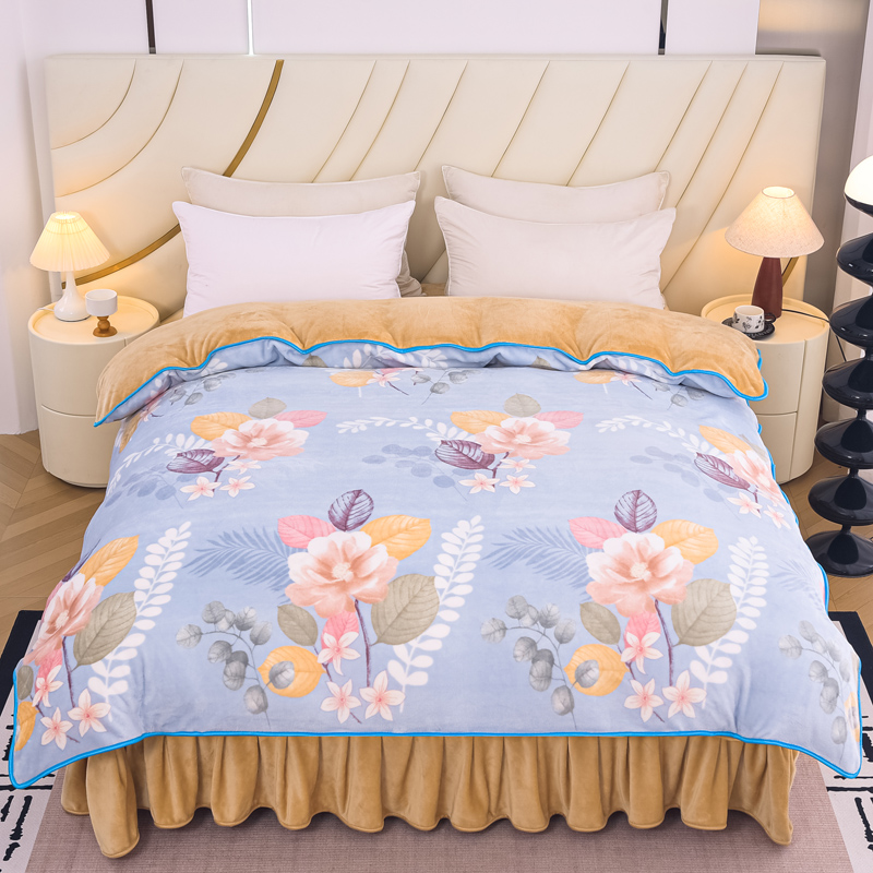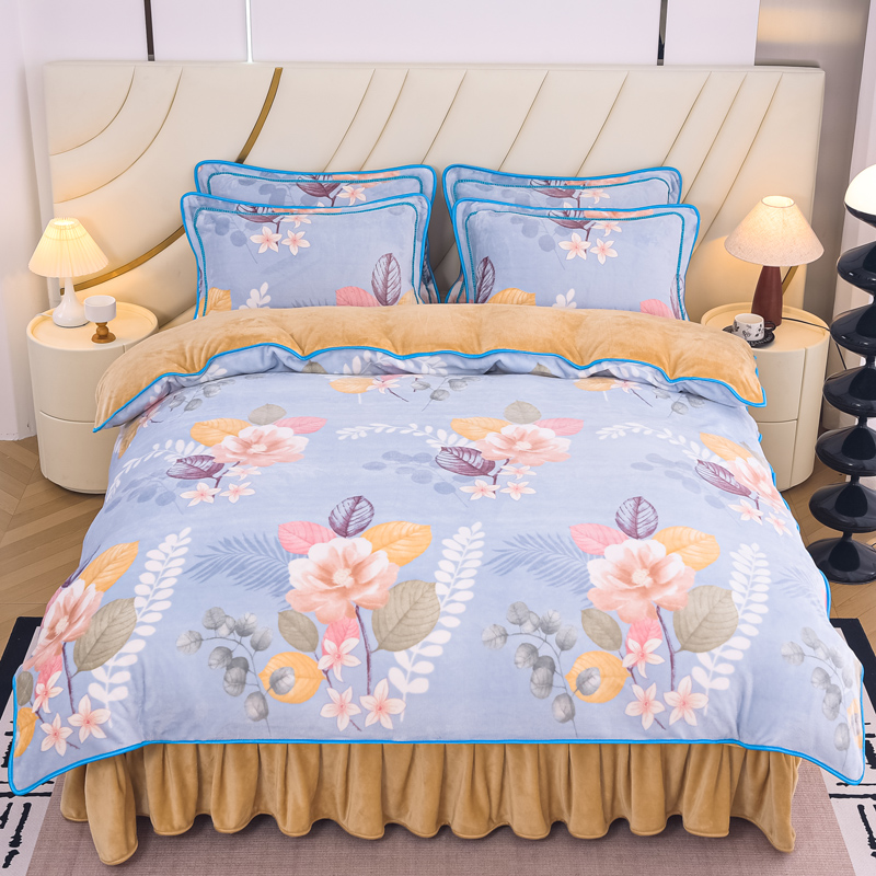商品名称:2024新款日产1万套+直播爆款8.5斤高克重牛奶绒四件套法莱绒金貂 蓝色花朵