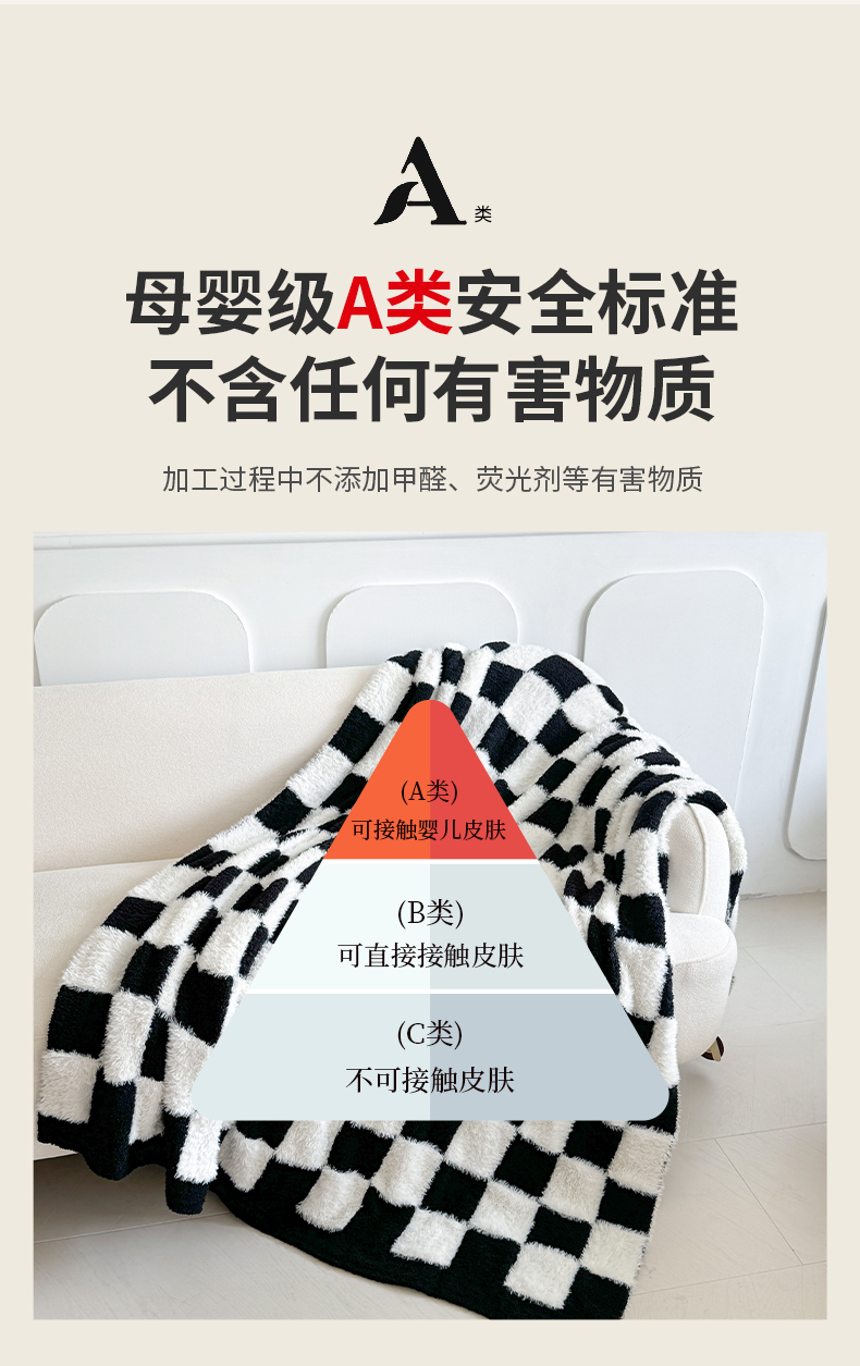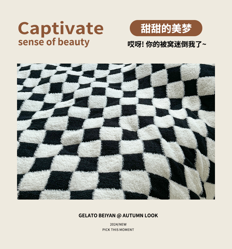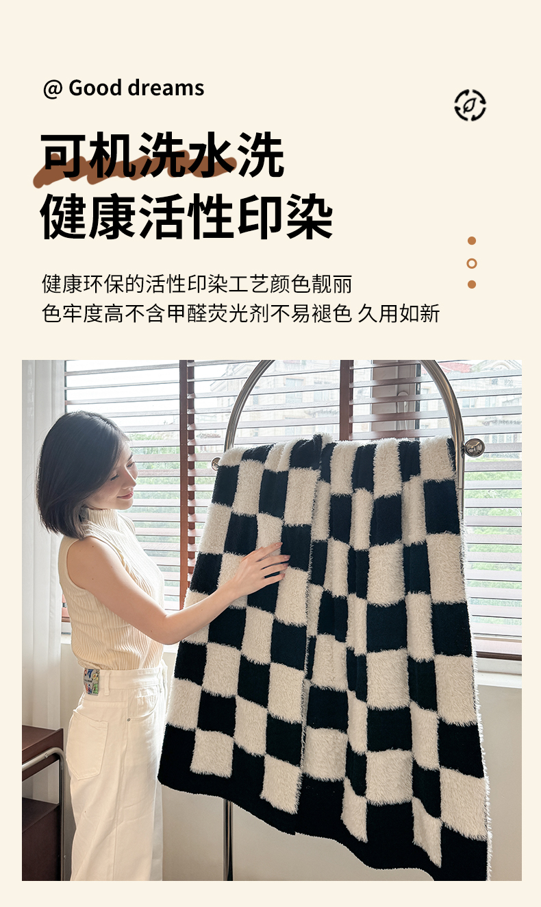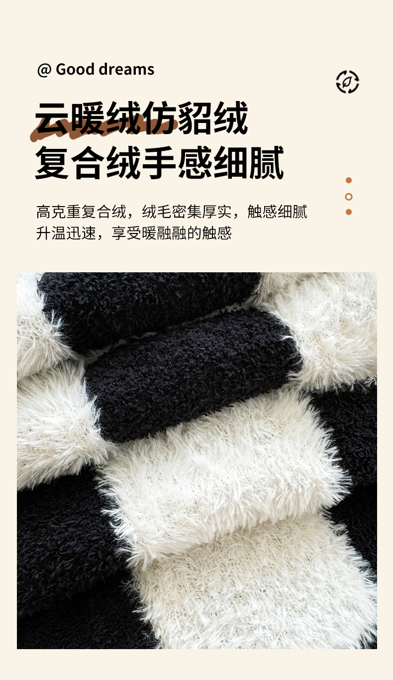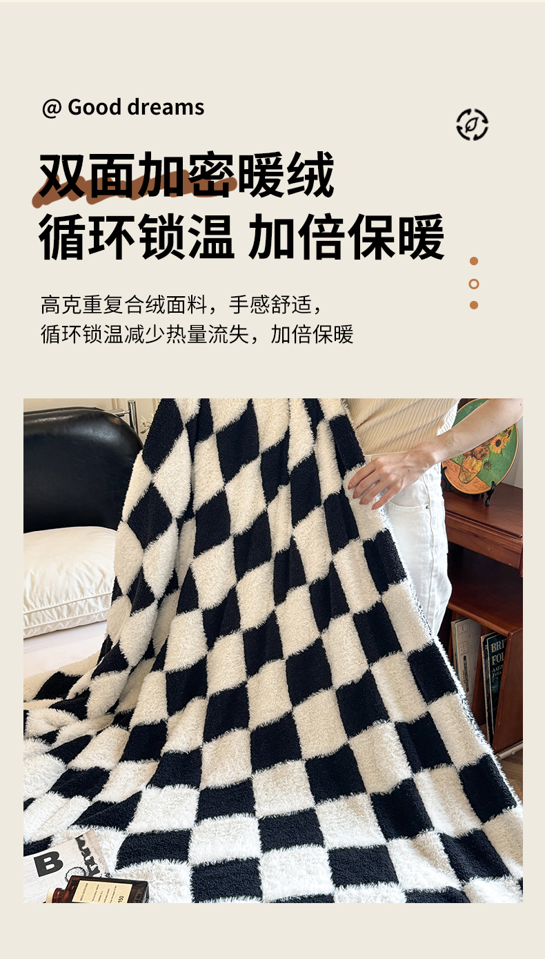 商品名称:丹本家纺 2025新款A类云暖绒仿貂复合毯跨境无印风针织毯半边绒毛毯盖毯 黑格子