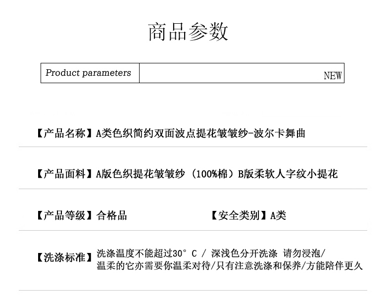 商品名称:玛奇朵 2024新品韩国A类色织简约双面波点提花双层皱皱纱-波尔卡舞曲 波尔卡舞曲-灰