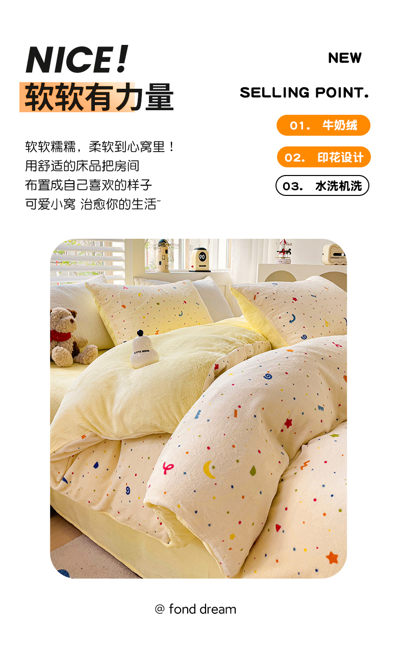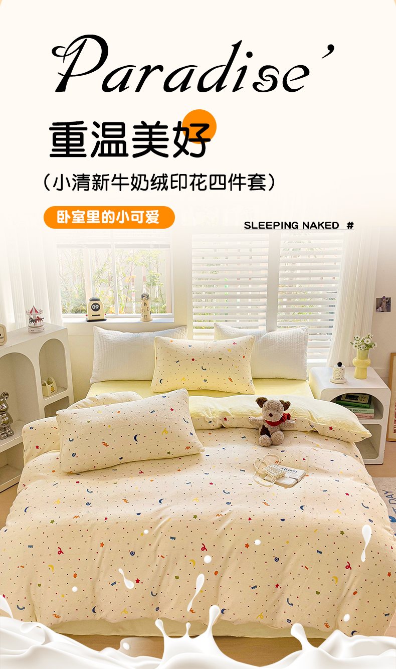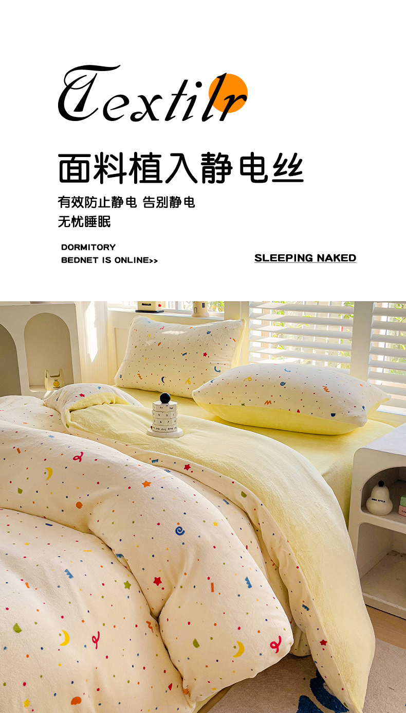 当前位置: 91家纺网 > 商品网购 > 床品套件 > 四件套 > 牛奶绒四件套 > 优选良品 2025新款小清新加厚高克重牛奶绒四件套直播热款电商热款 彩虹糖