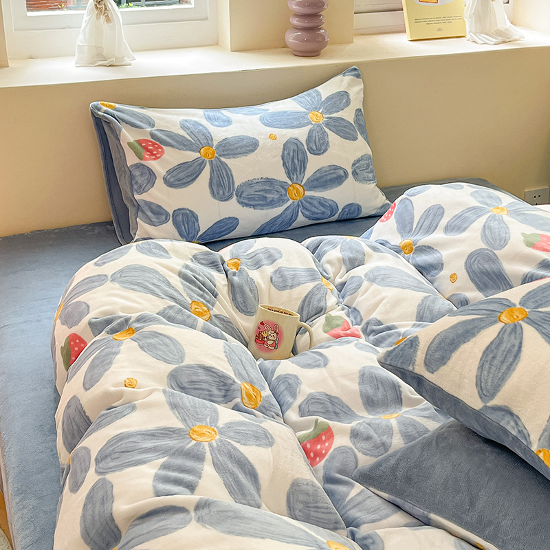 商品名称:雅居纺家纺 2024新款高克重印花牛奶绒单枕套 蓝墨花朵