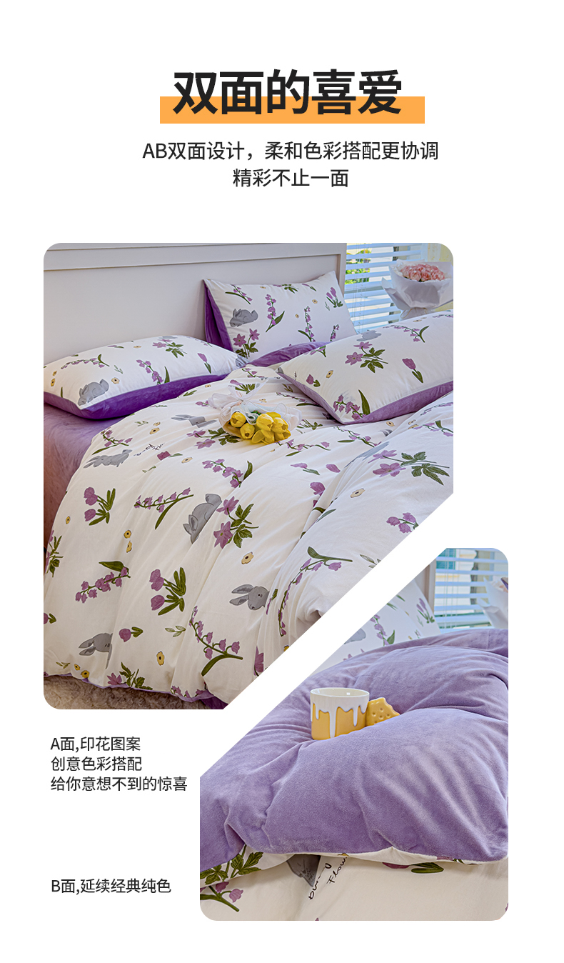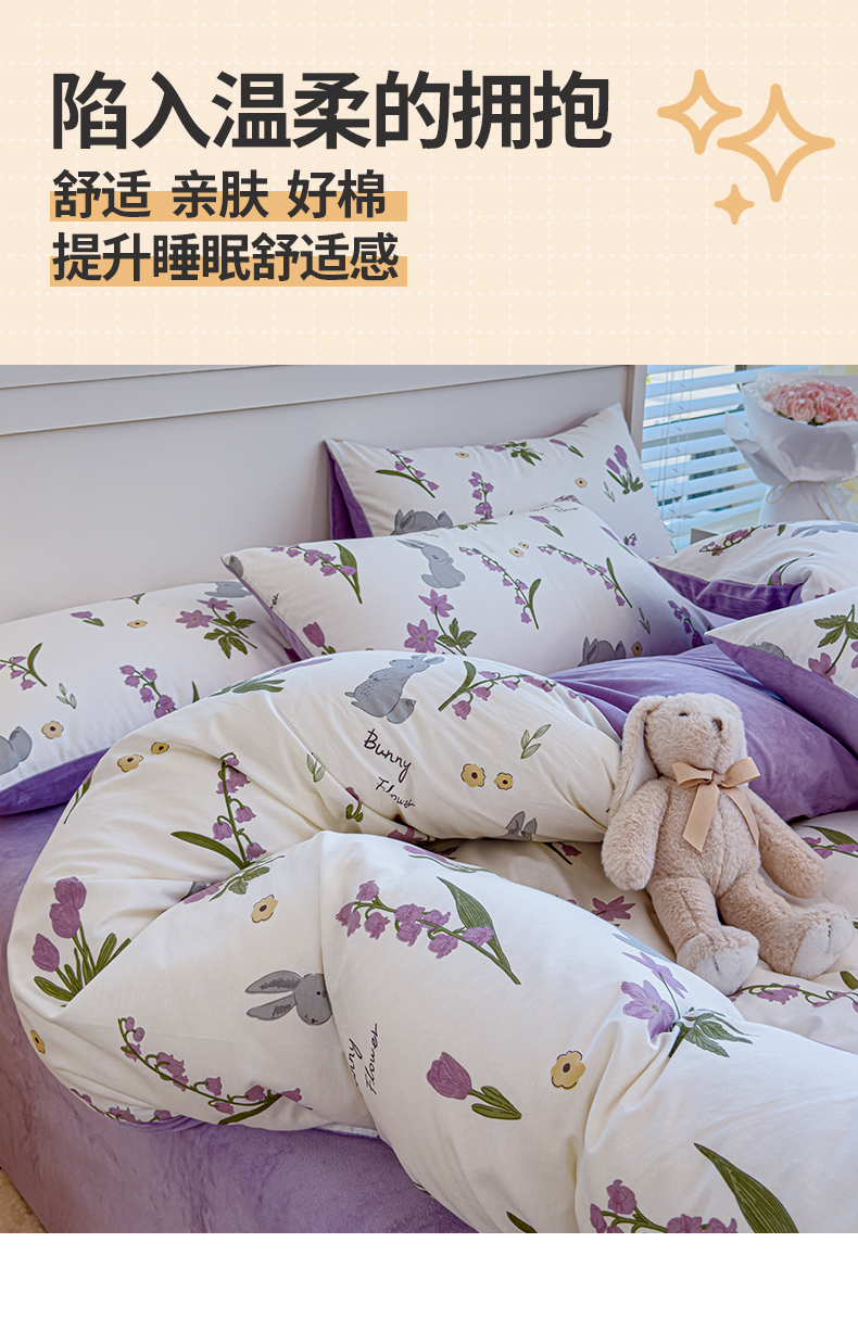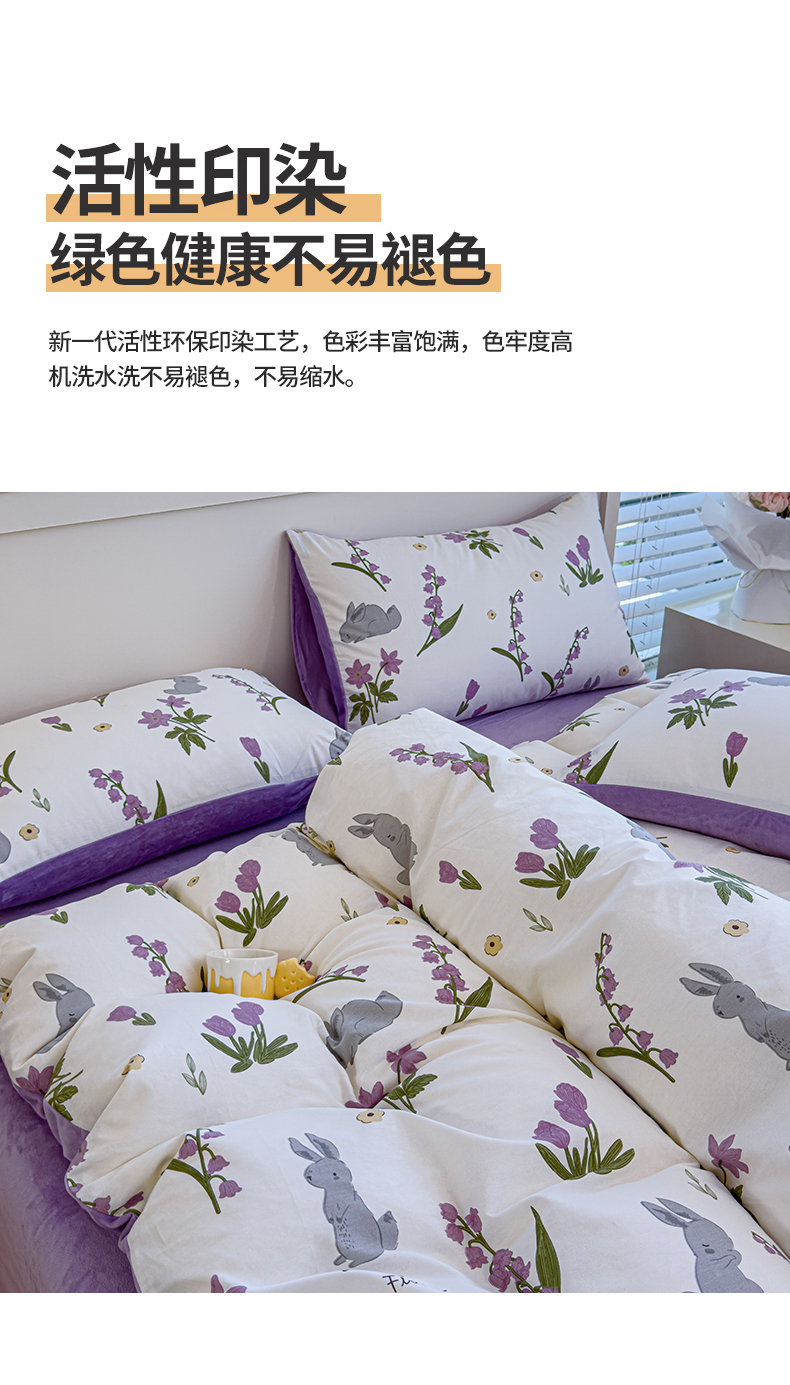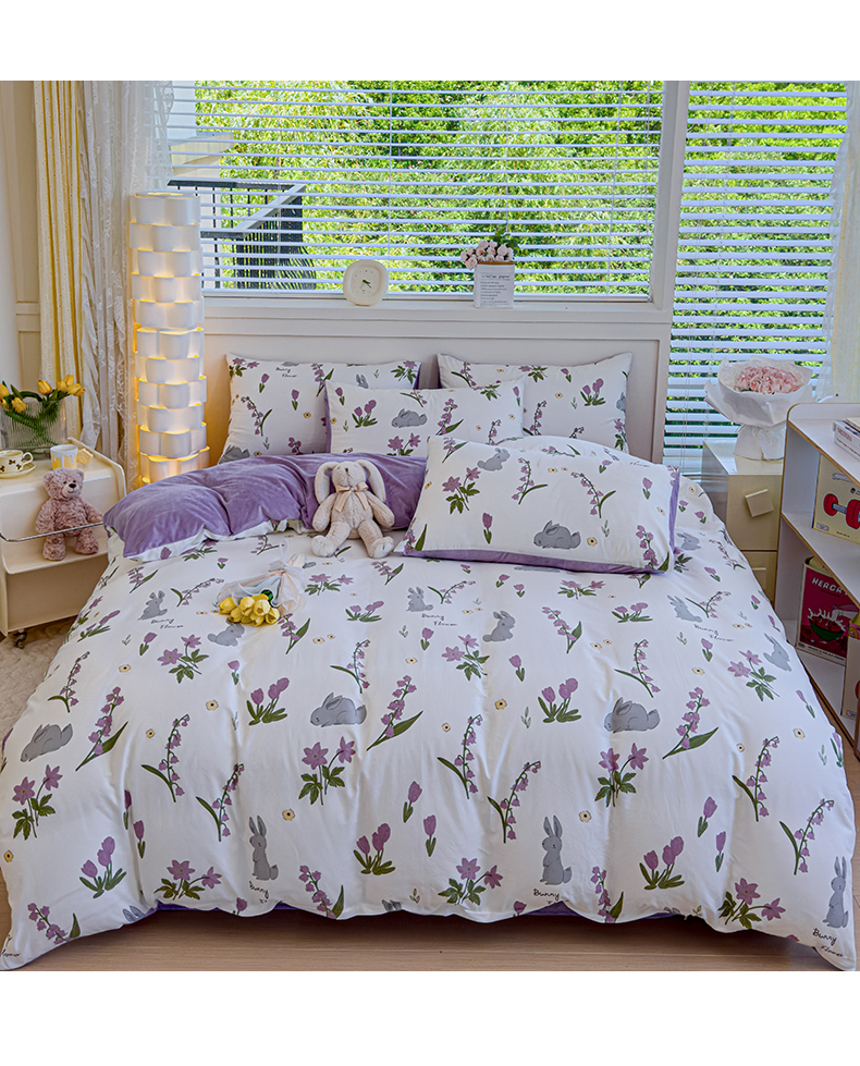 当前位置: 91家纺网 > 商品网购 > 床品套件 > 四件套 > 其它四件套 > 清雅福 2024新款小清新ins棉加绒印花四件套系列-棉绒风格一 棉绒紫色花铃