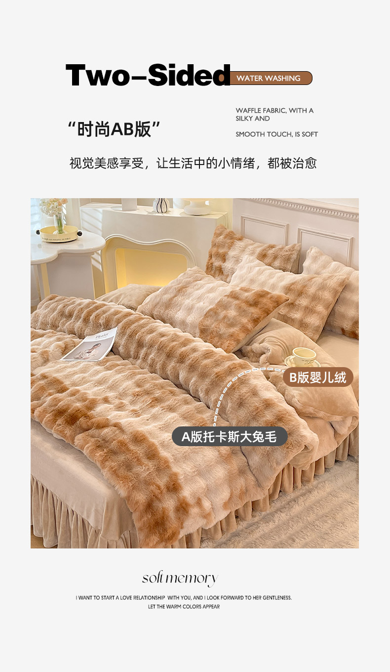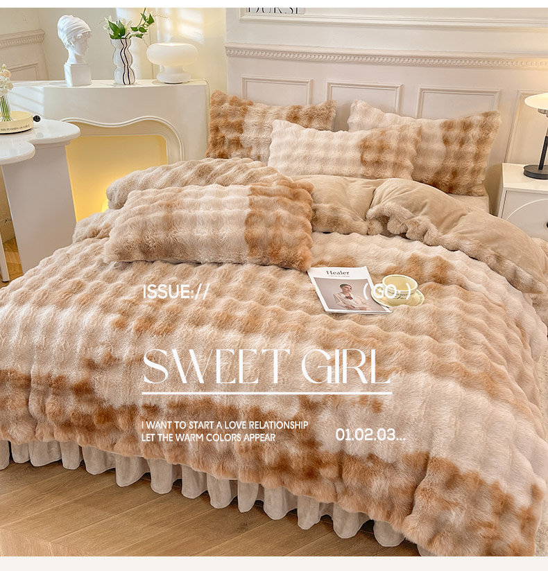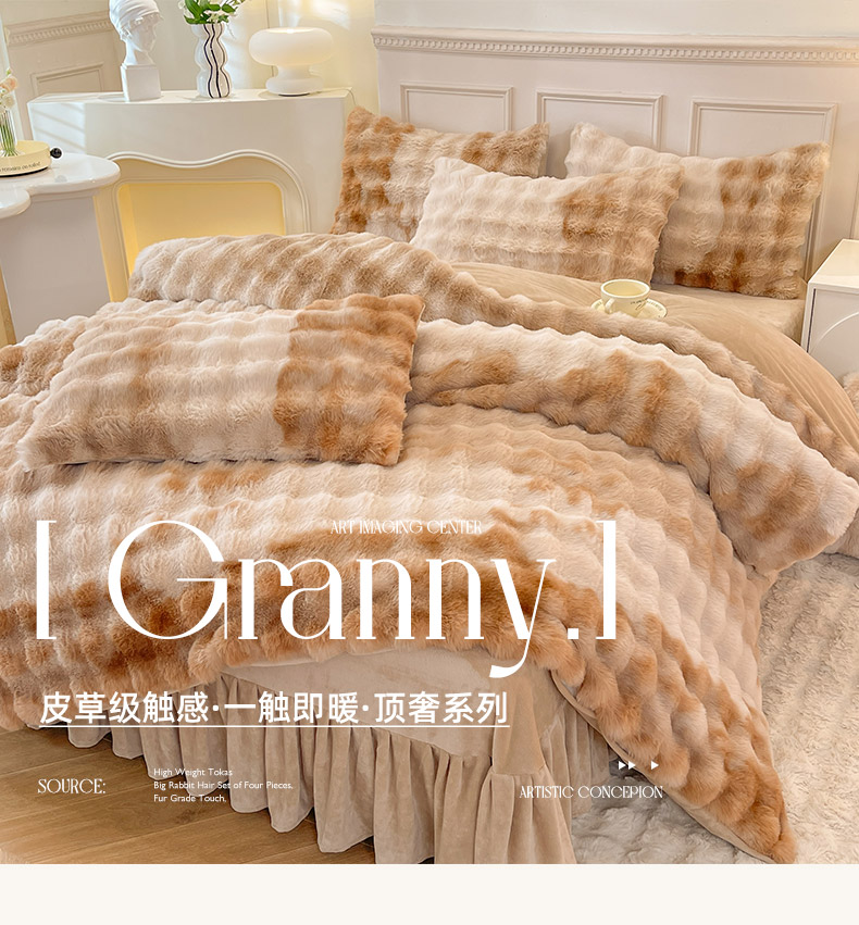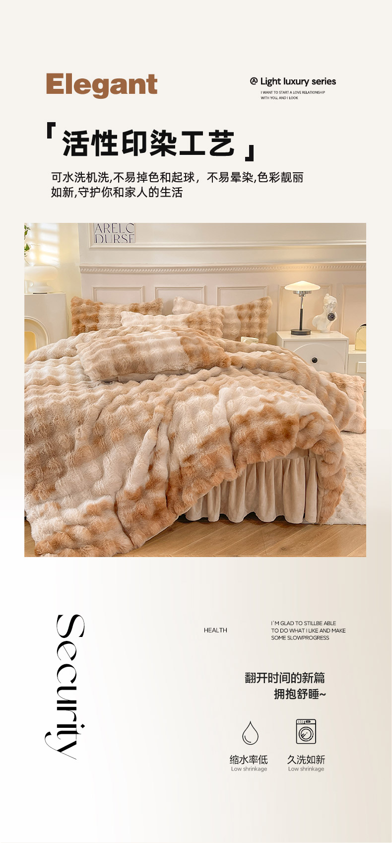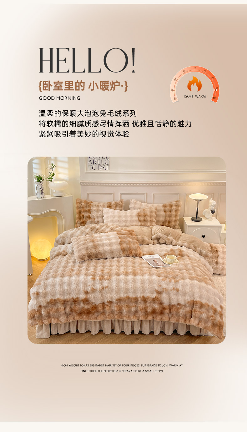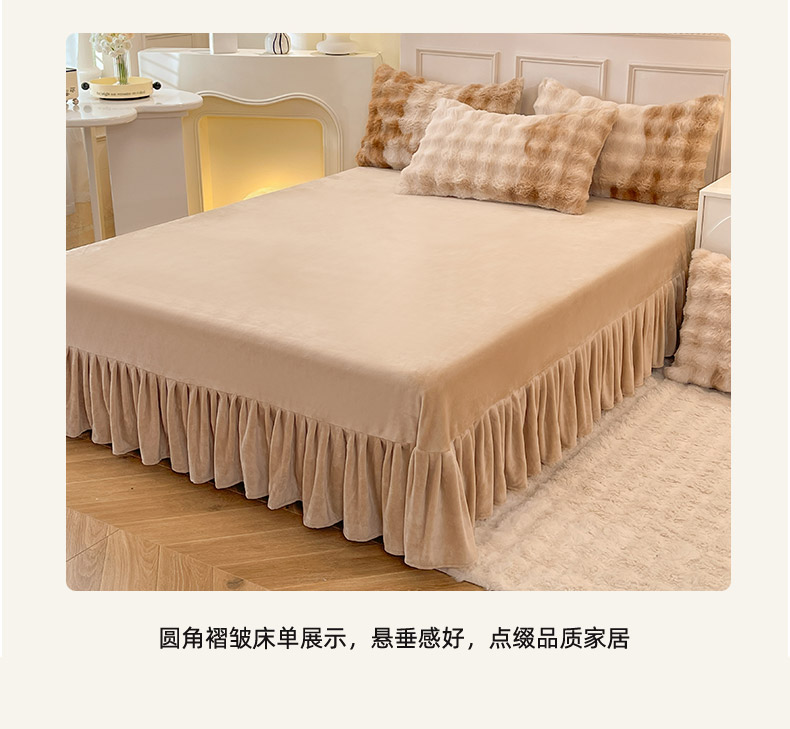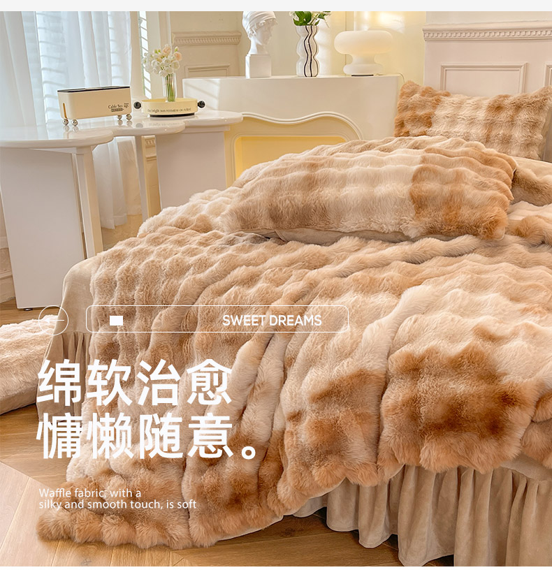 商品名称:欧冠家纺 2024秋冬新款纯色泡泡绒和七彩泡泡床裙款四件套 七彩-奶咖色
