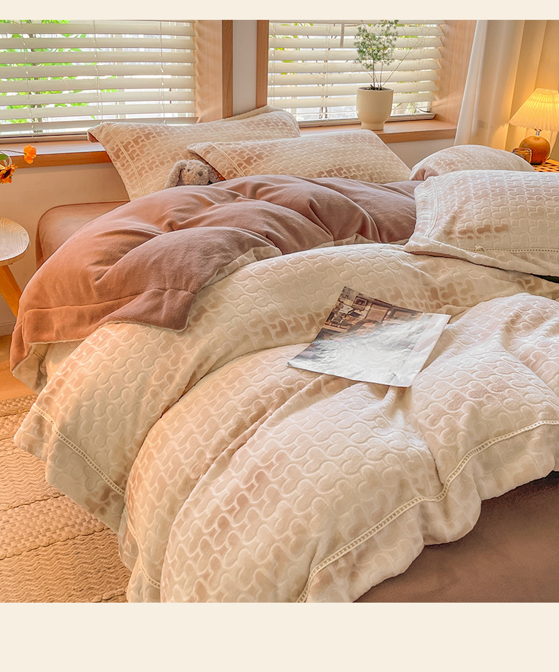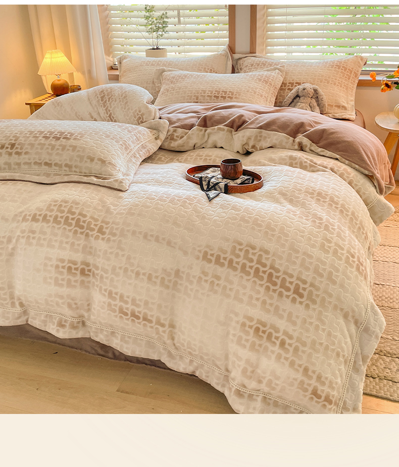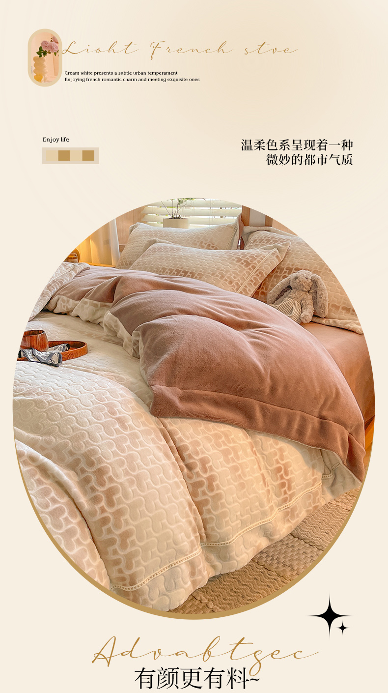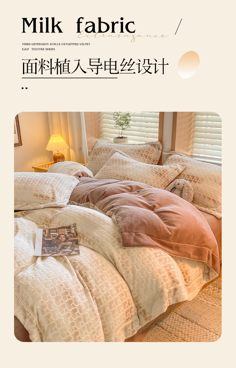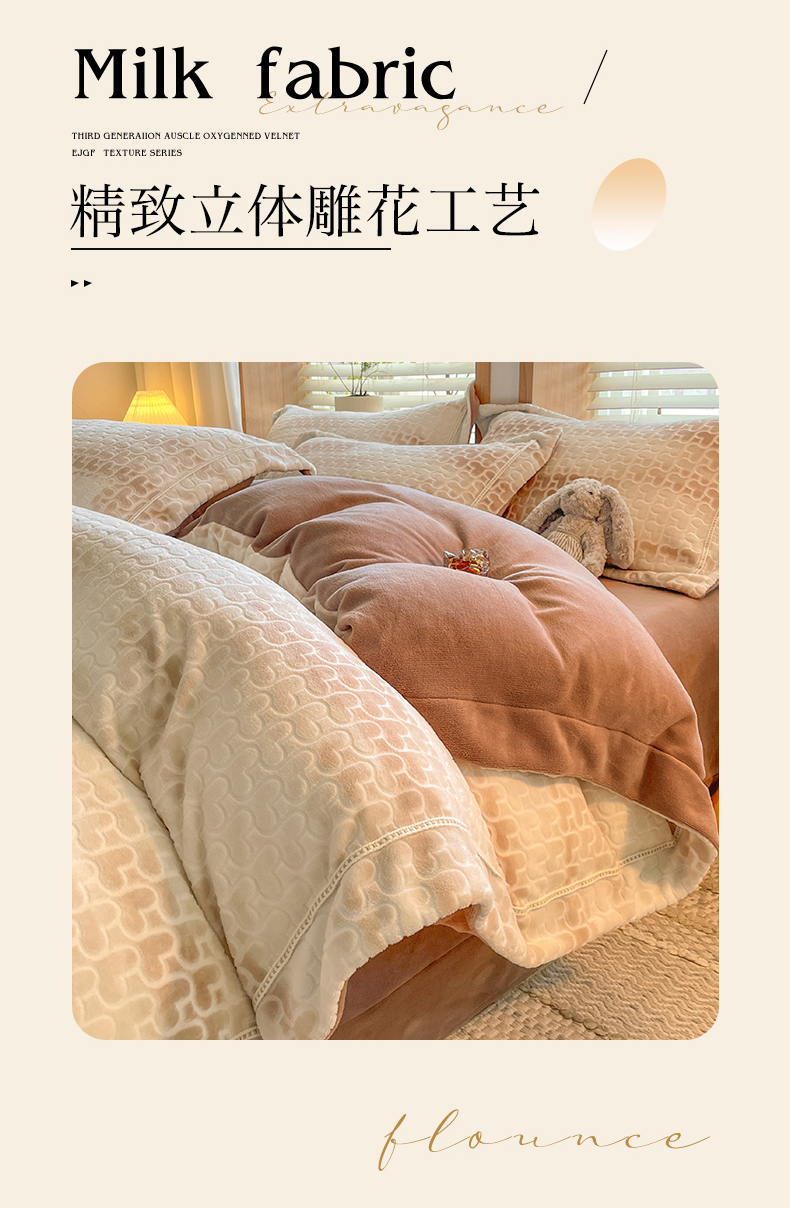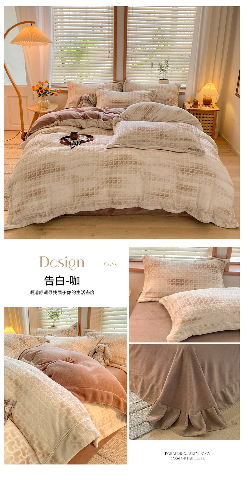简如 2025新款A类加厚冰岛立体雕花牛奶绒浮雕绒四件套(有买家秀) 告白-咖