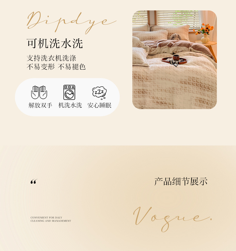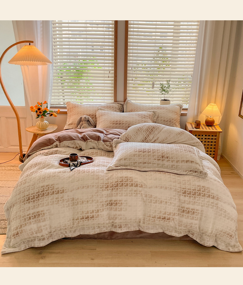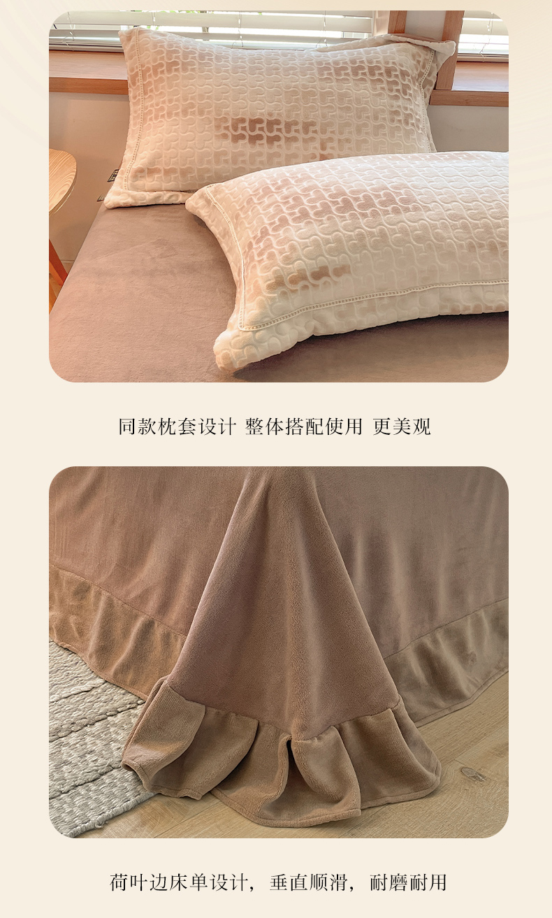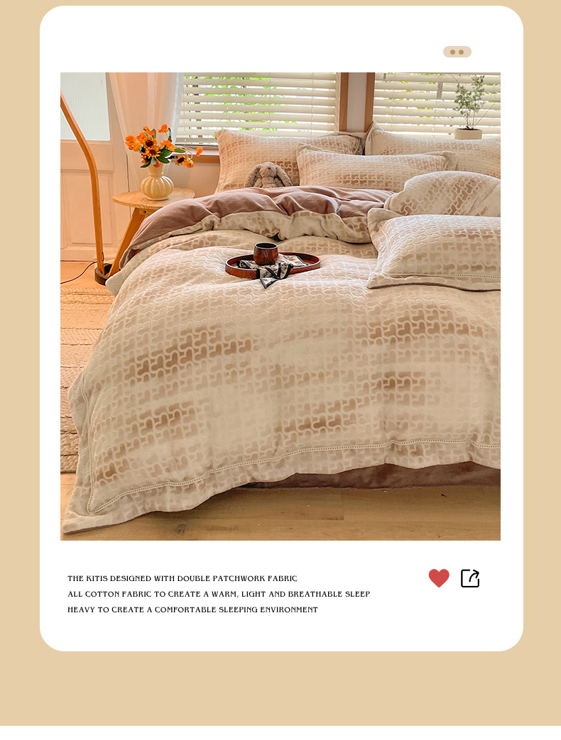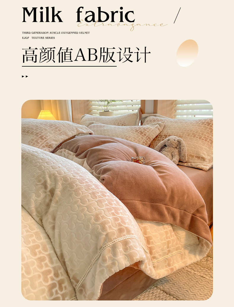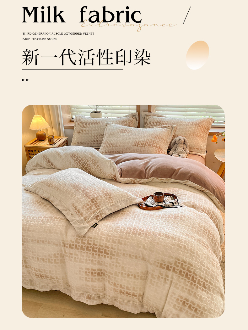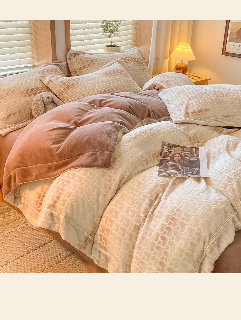 简如 2025新款A类加厚冰岛立体雕花牛奶绒浮雕绒四件套(有买家秀) 告白-咖