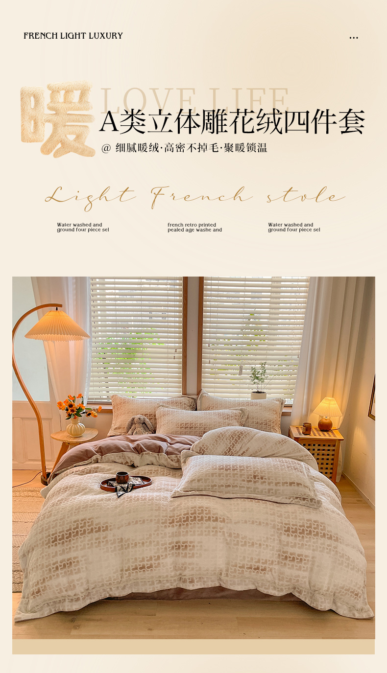 (总)简如 2025新款A类230克加厚立体雕花绒四件套,安吉拉-粉玉,安吉拉-海鸥灰,安吉拉-浅灰,安吉拉-浅绿,安吉拉-天空蓝,米兰-粉,米兰-米驼,米兰-玉,米兰-中灰