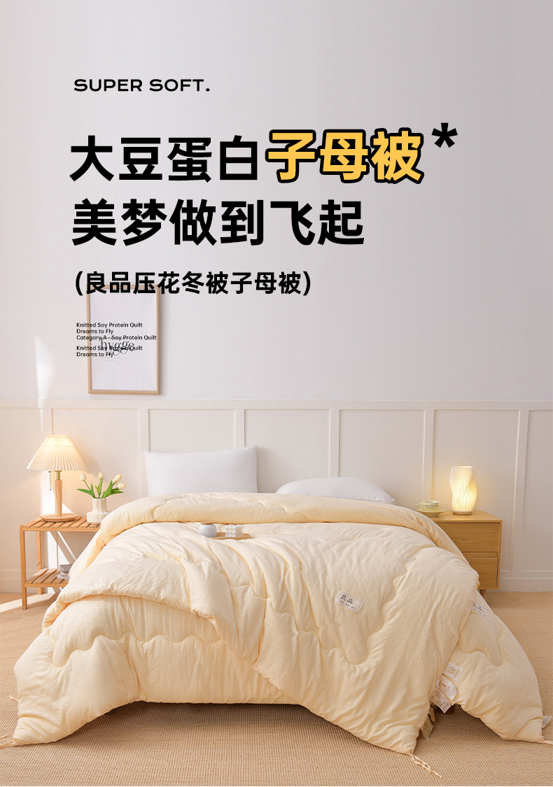 预言家纺 2024新款良品压花冬被子母被 良品奶黄