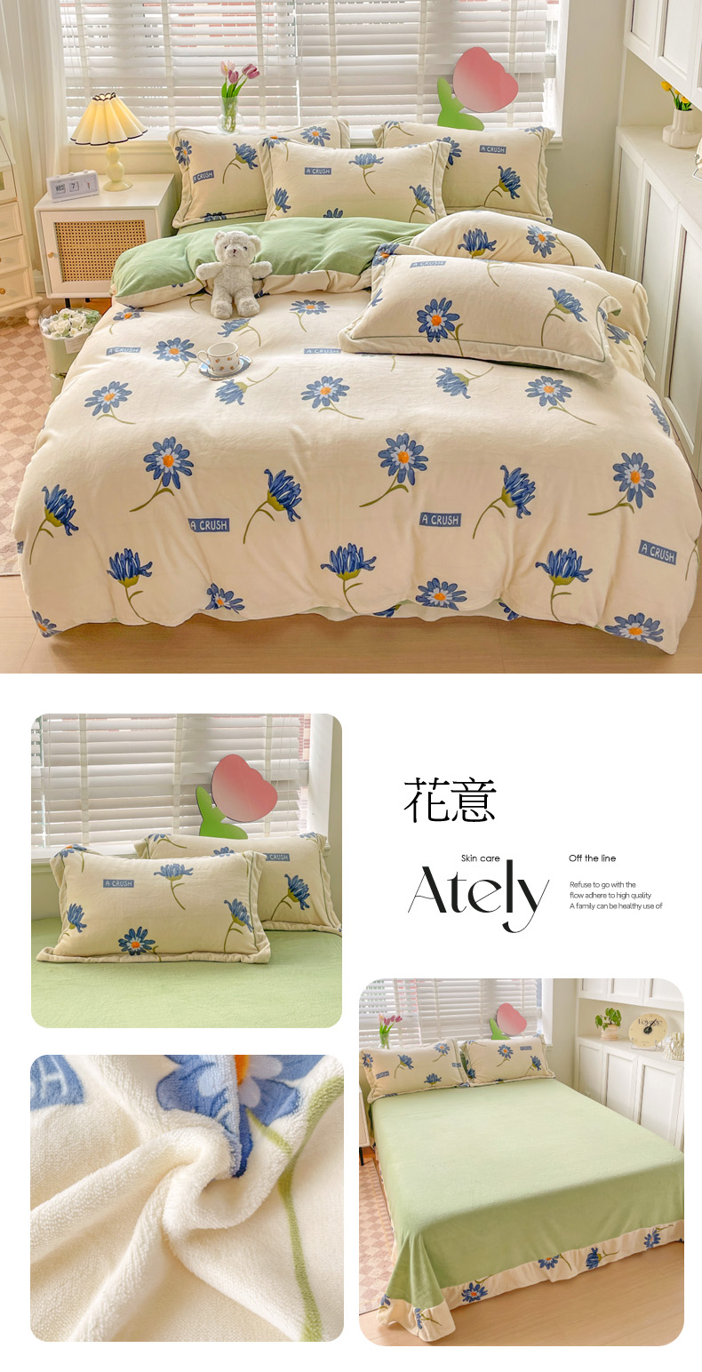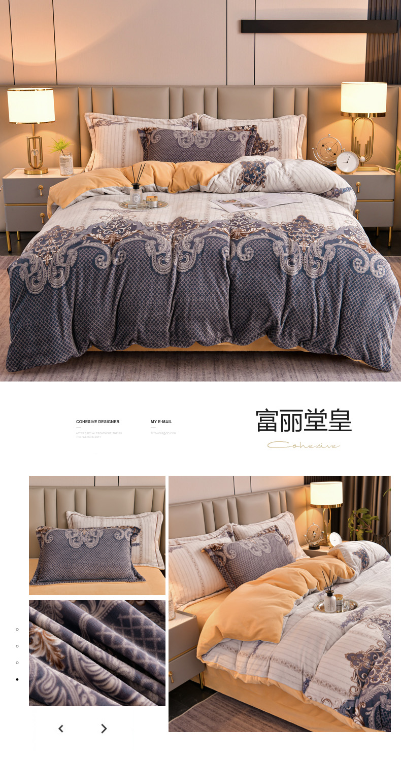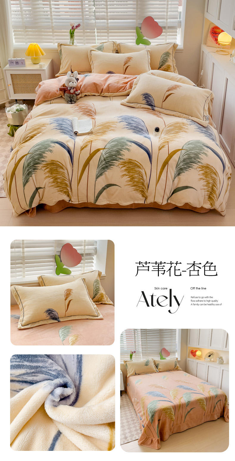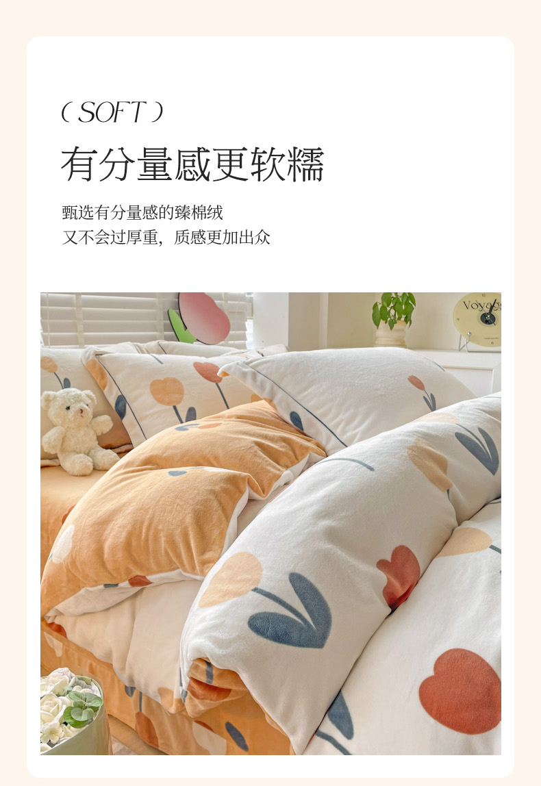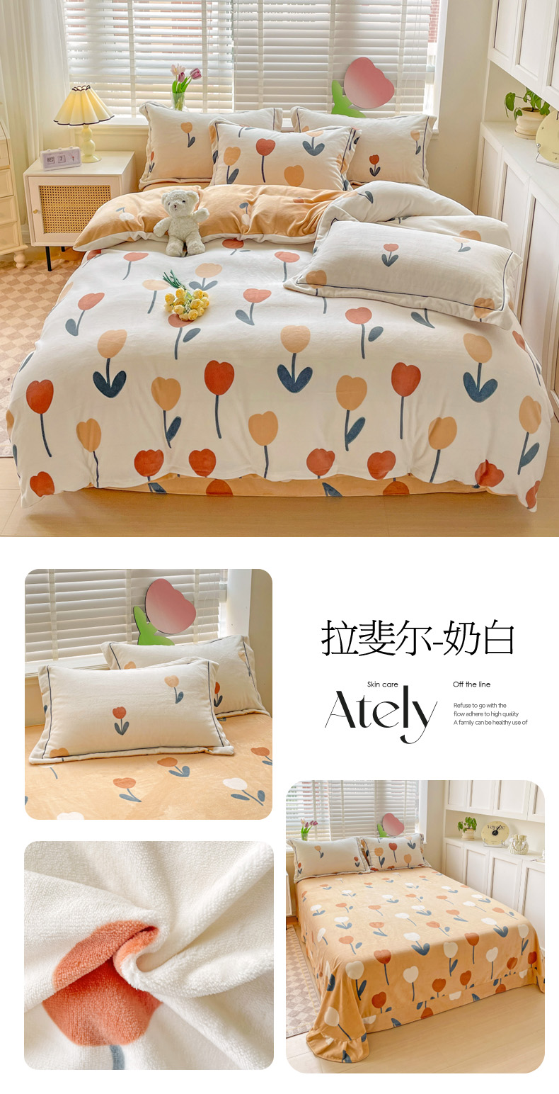 丽涵家纺 2024秋冬新品冰岛臻棉绒保暖四件套 拉斐尔-奶白