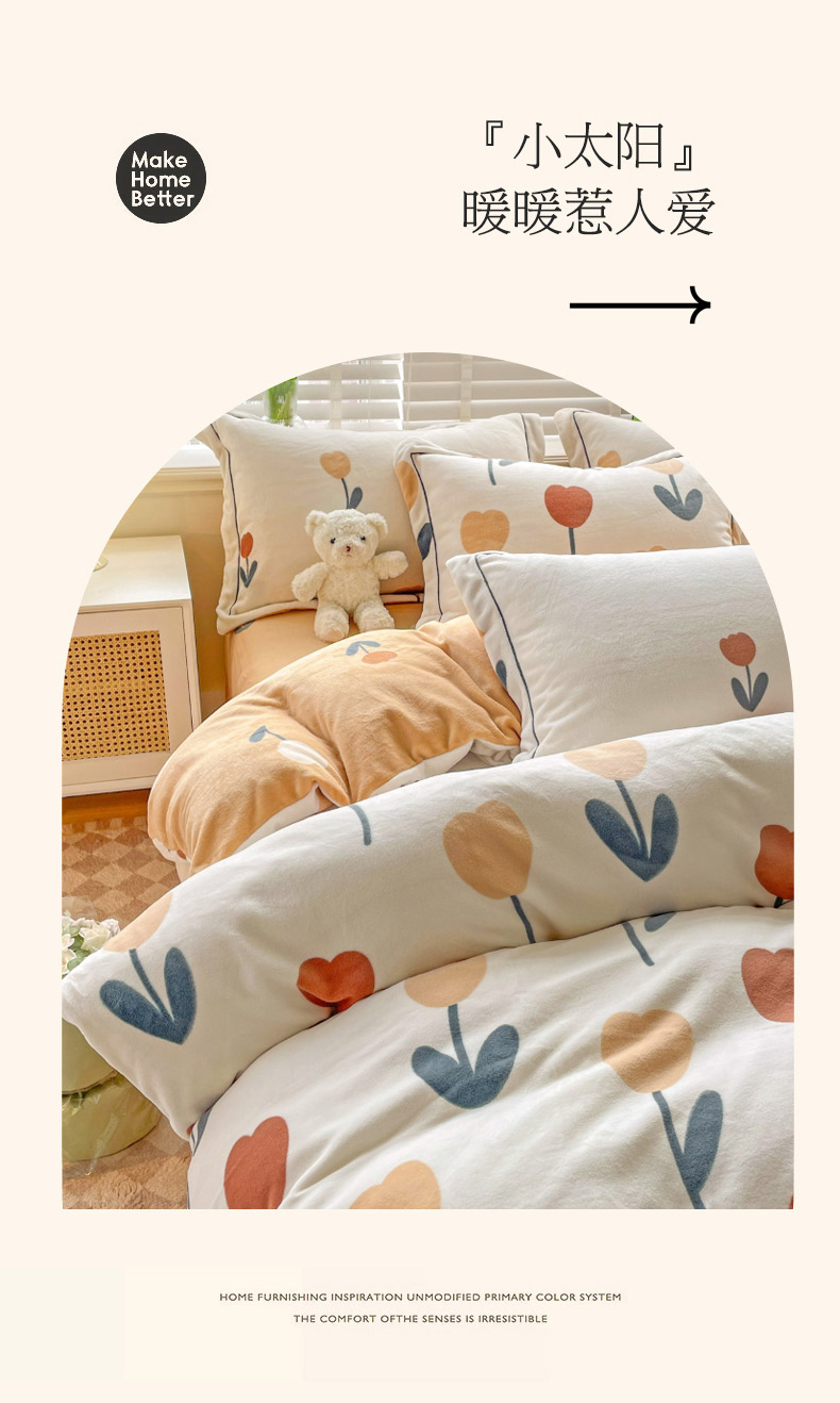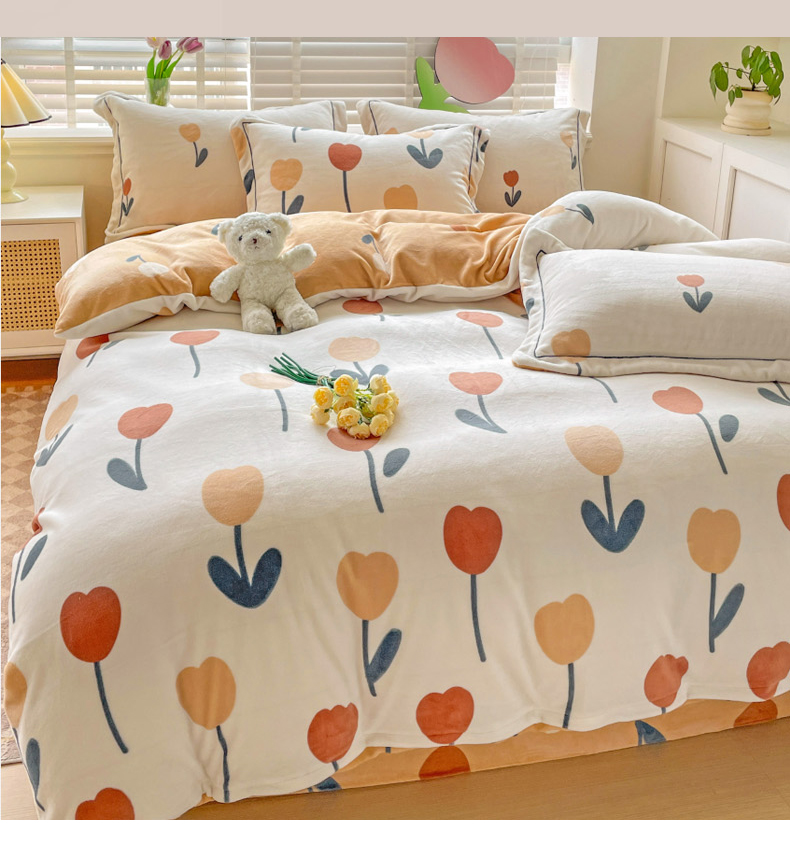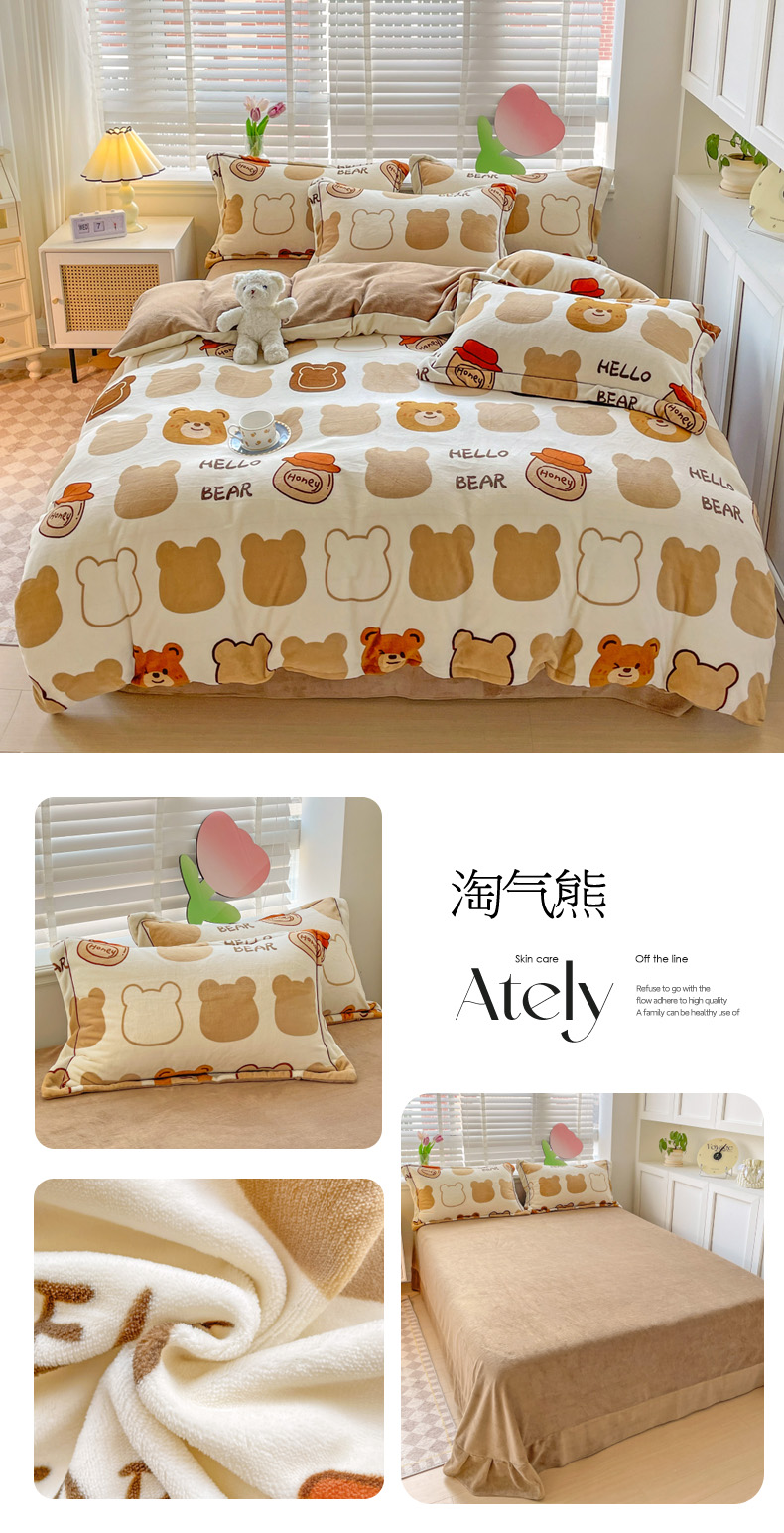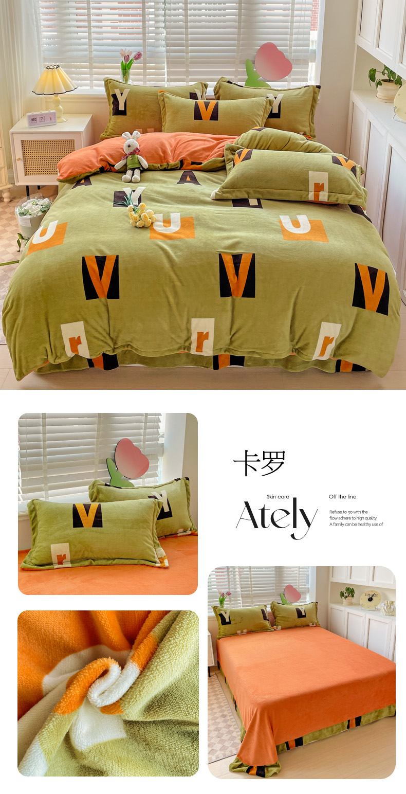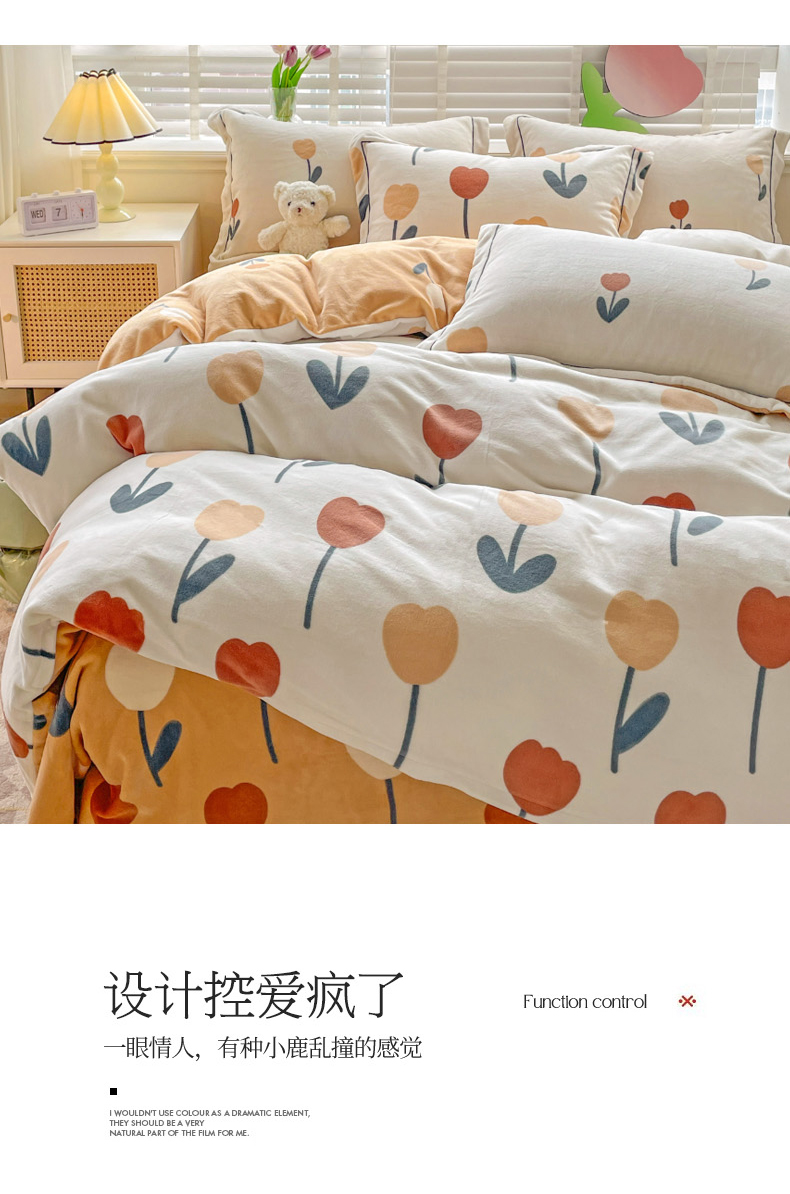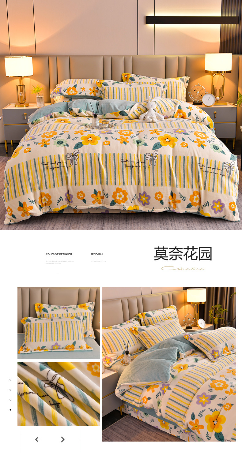 丽涵家纺 2024秋冬新品冰岛臻棉绒保暖四件套 拉斐尔-奶白