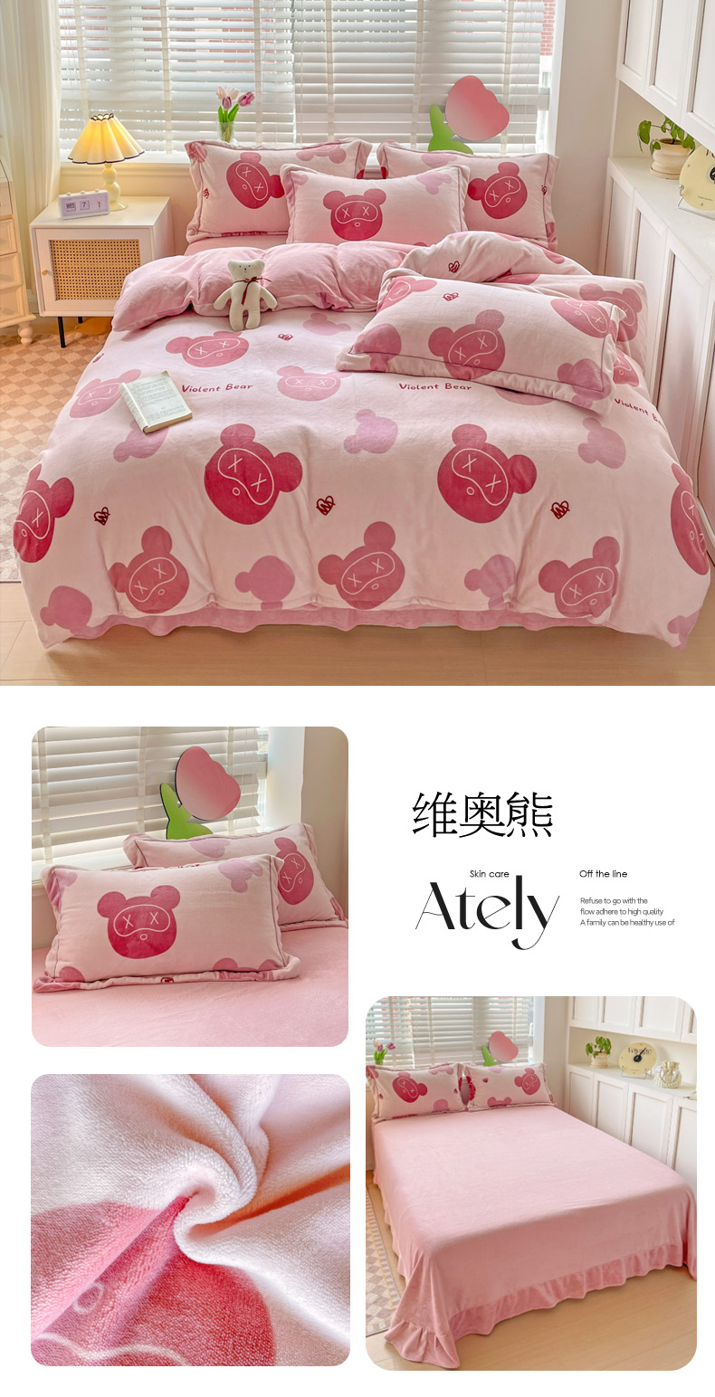 (总)丽涵家纺 2026新款全棉数码印花毛巾绣四件套-少女派,懵懂少女,熊崽奇遇,抱抱熊,甜梦满溢,甜茶女孩
