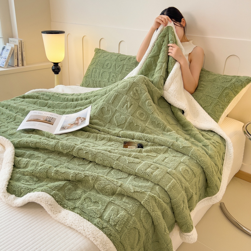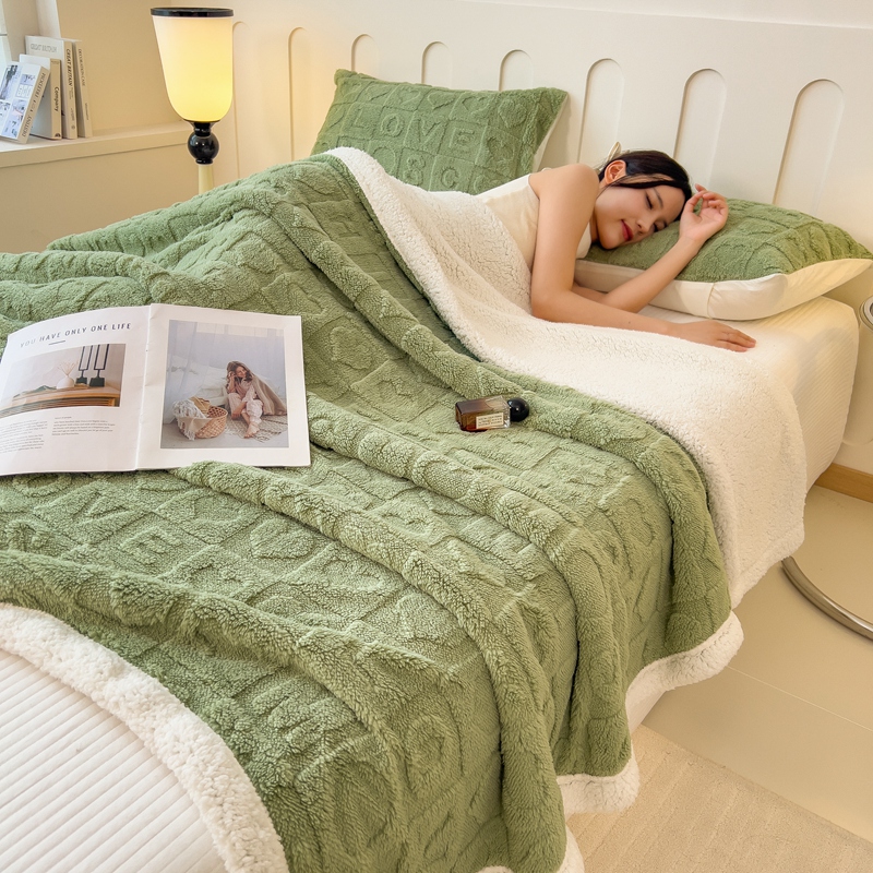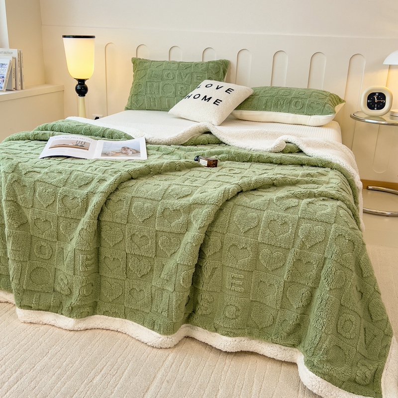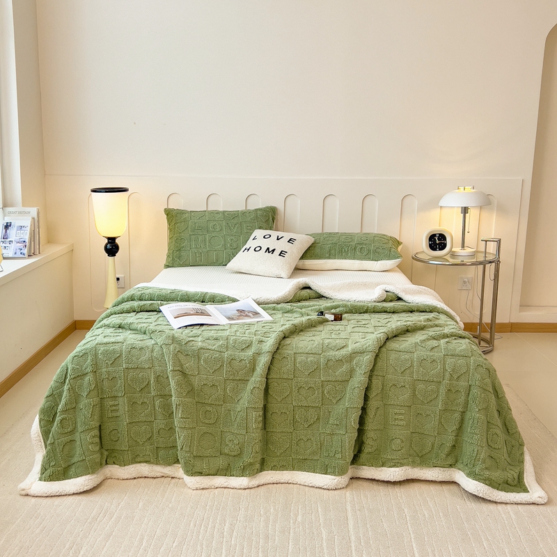 商品名称:希廷顿 2024新款高克重双层加厚塔芙绒毛毯 爱心-抹茶绿