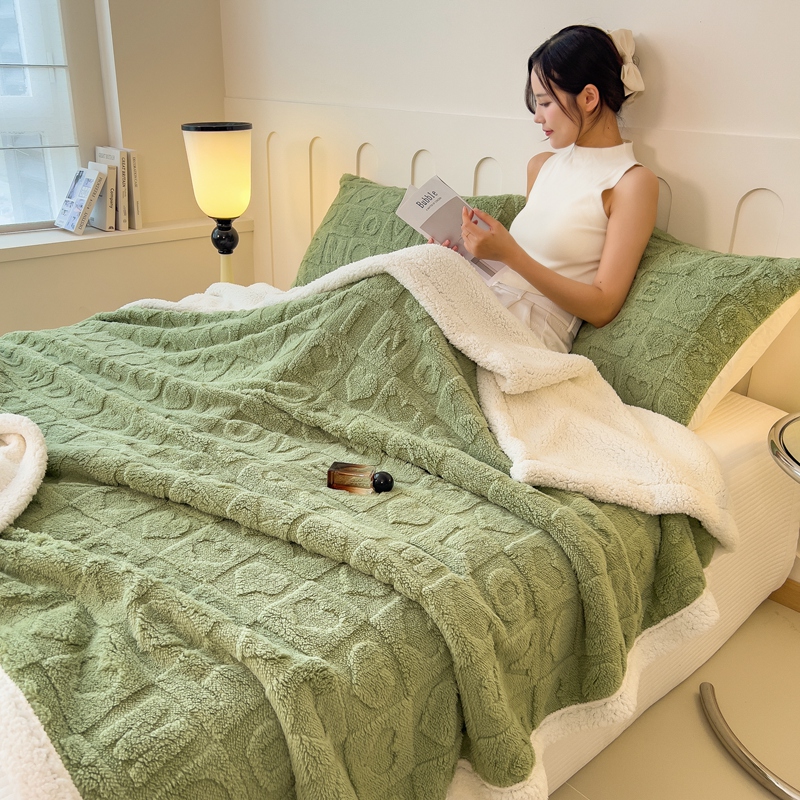 希廷顿 2024新款高克重双层加厚塔芙绒毛毯 爱心-抹茶绿