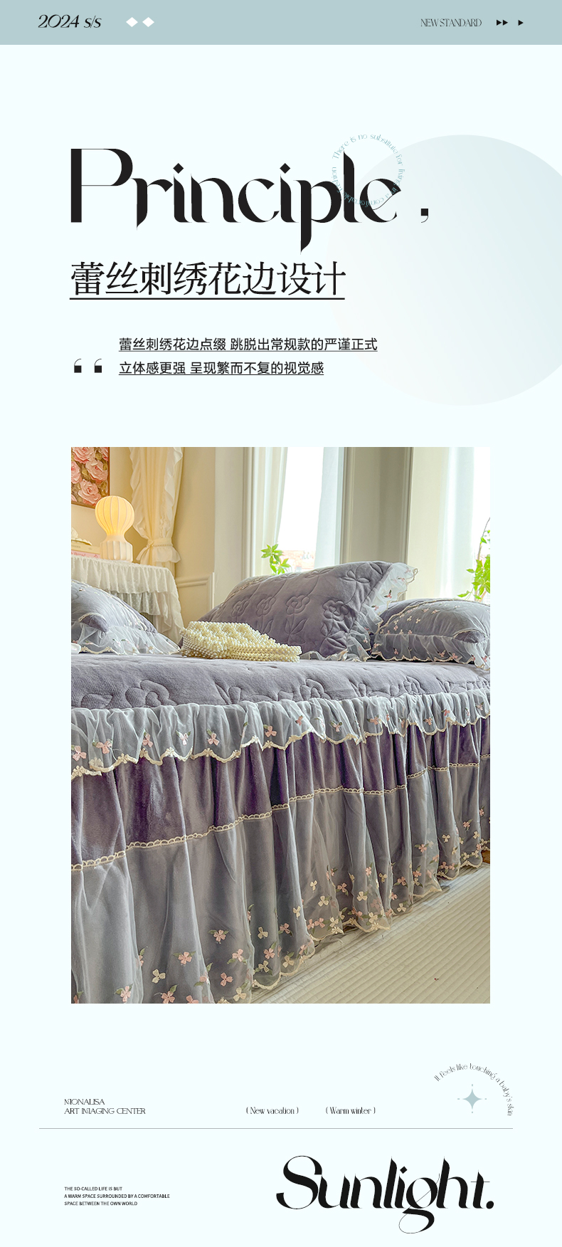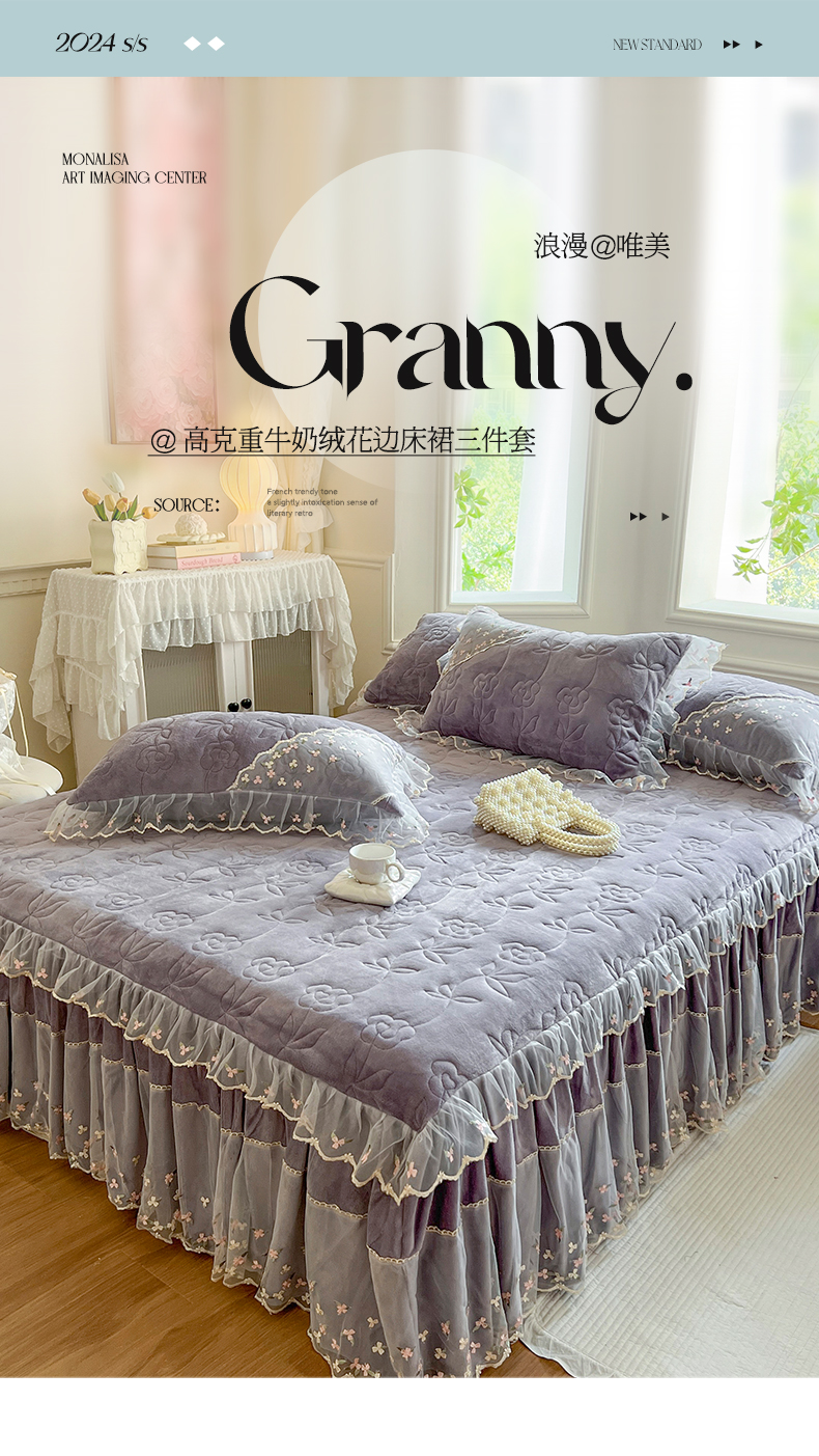 (总)网红馆(ck家纺) 2025新款色织提花牛奶绒床裙四件套-洛丽塔系列,洛丽塔-豆沙,洛丽塔-蓝色,洛丽塔-米色