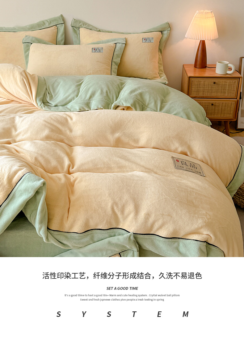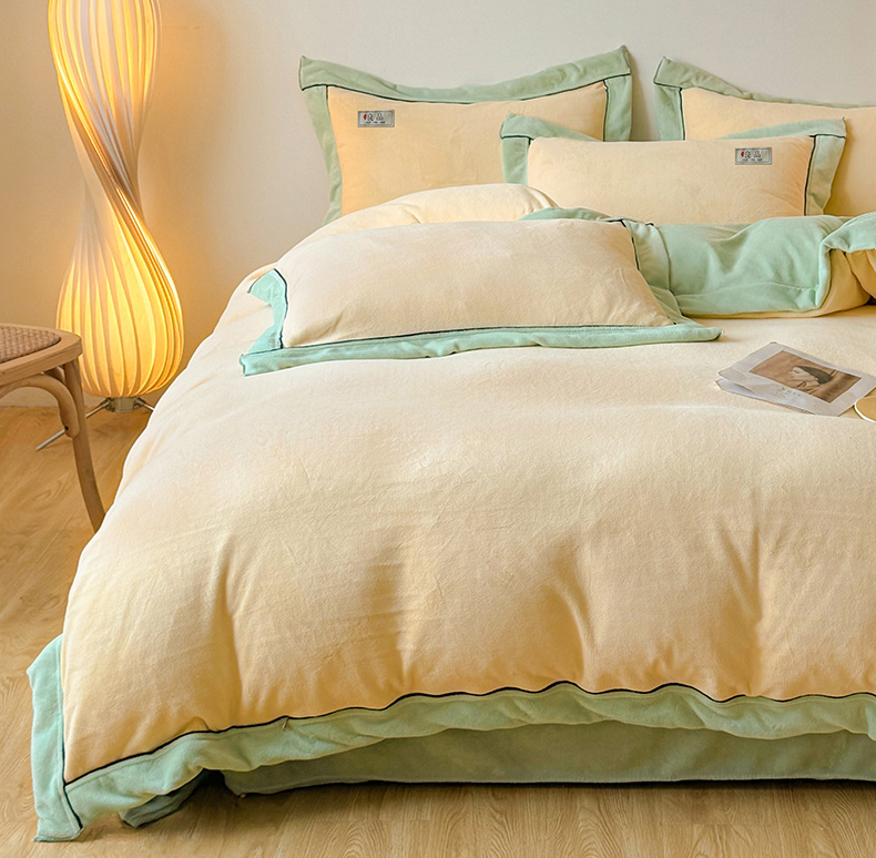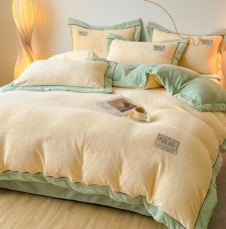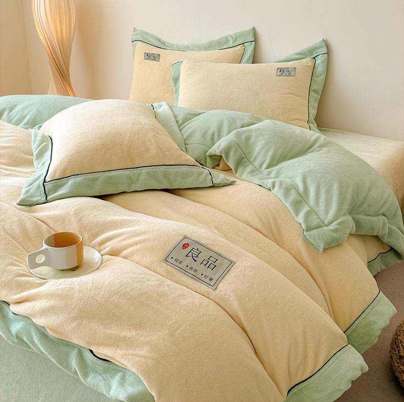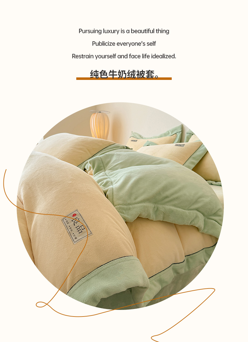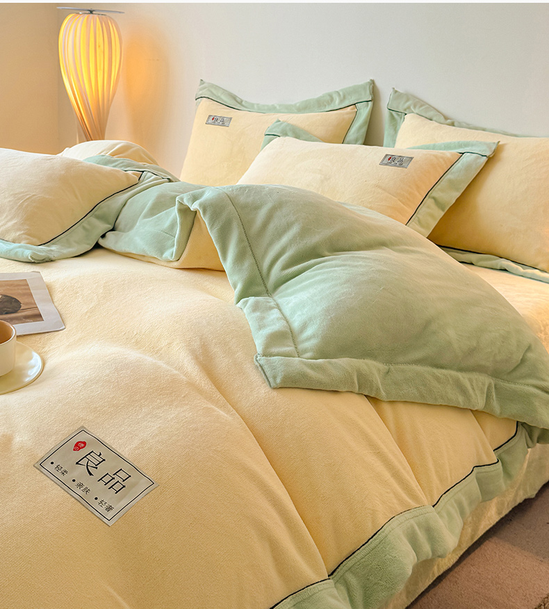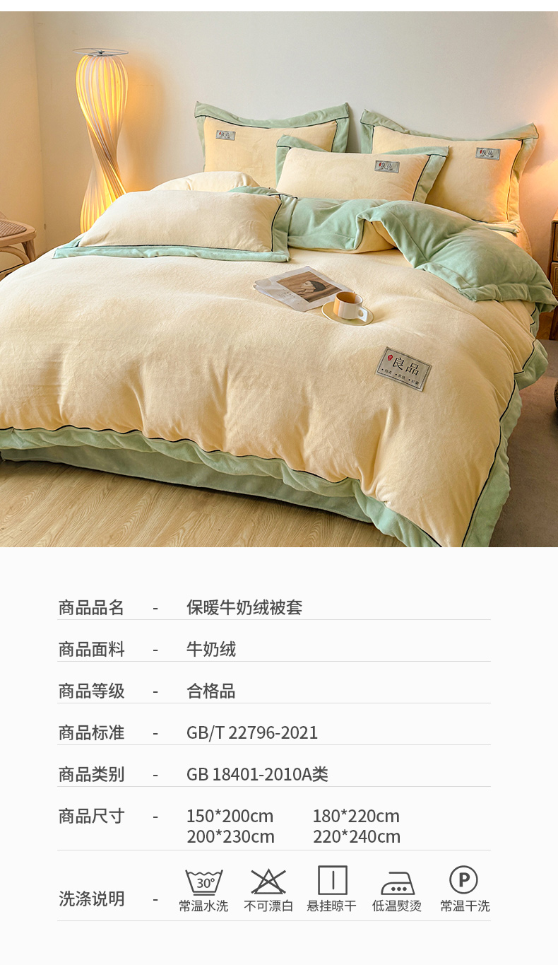 商品名称:全季家居 2024新款A类良品纯色双拼牛奶绒高克重加厚保暖被套单件 米黄+果绿