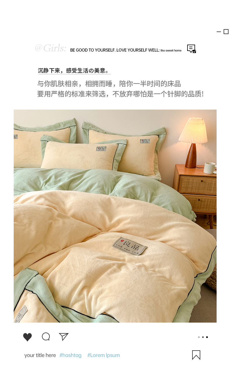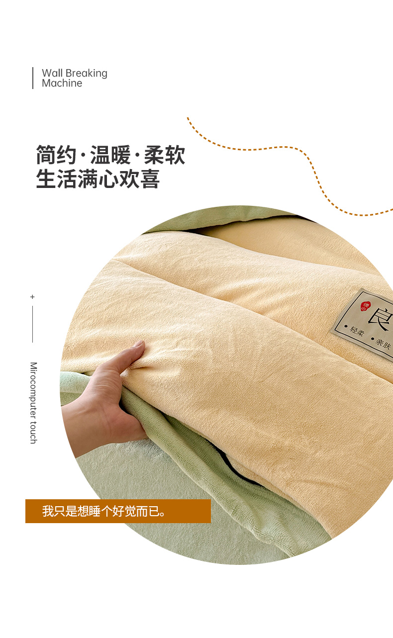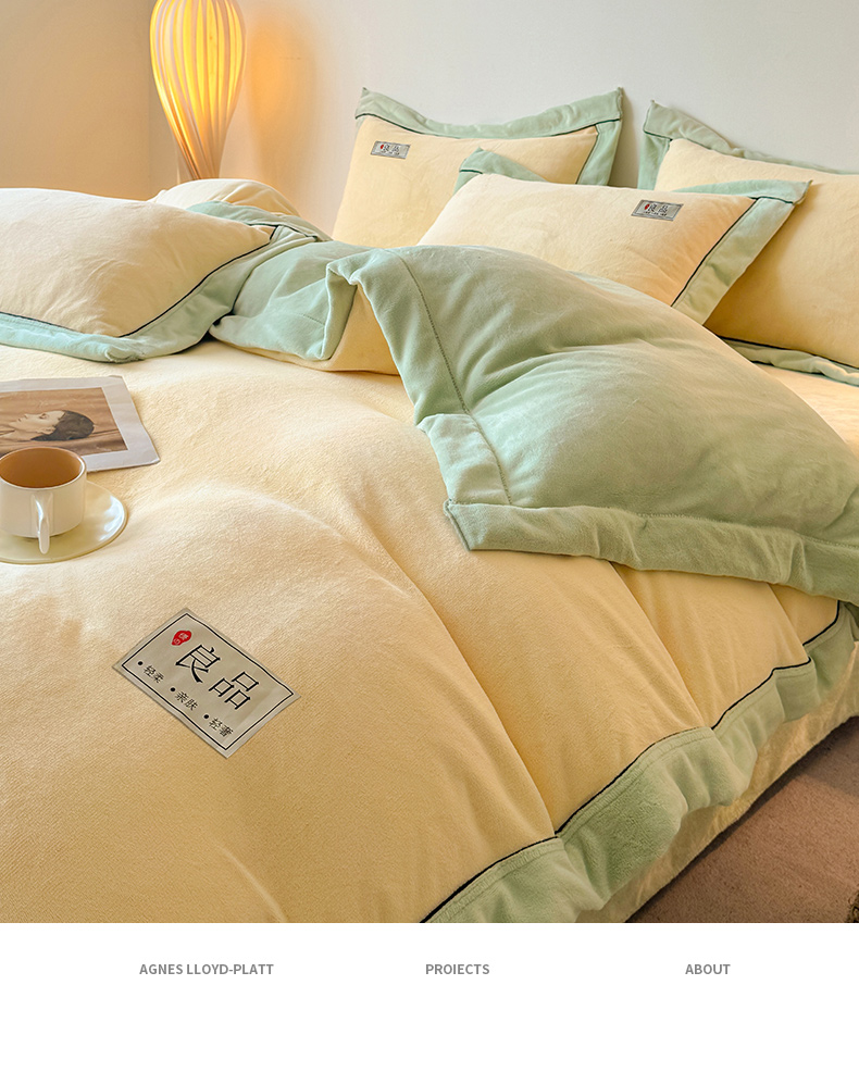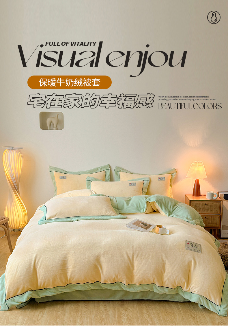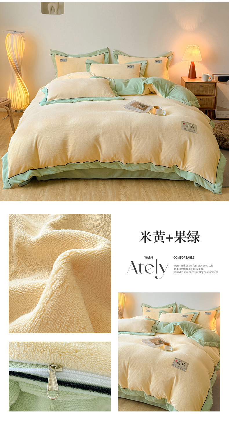 商品名称:全季家居 2024新款A类良品纯色双拼牛奶绒高克重加厚保暖被套单件 米黄+果绿