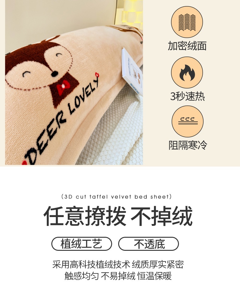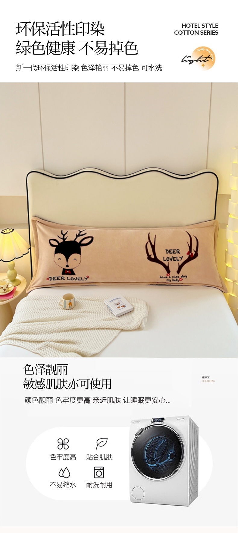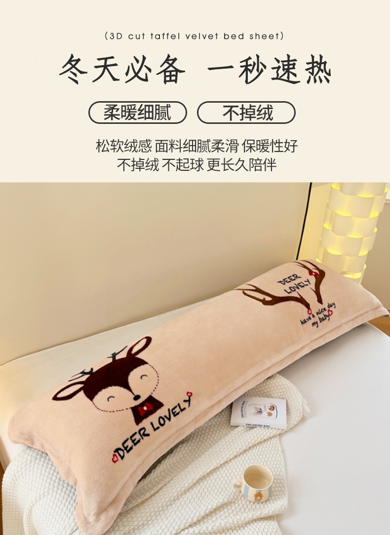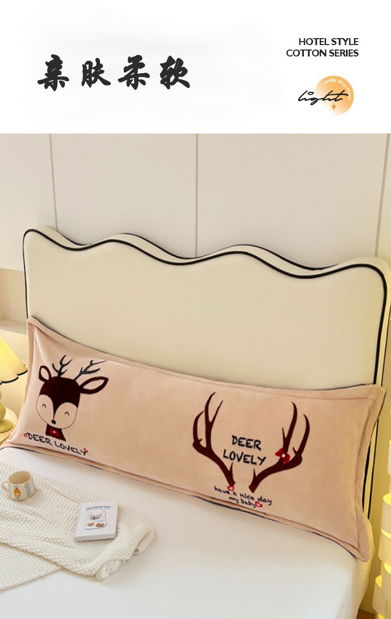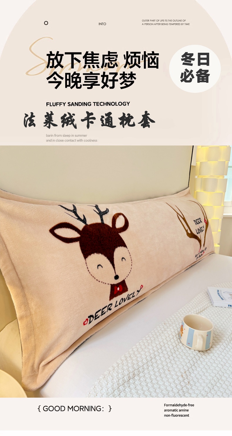 商品名称:梦舒羽 2025新款冬季法莱绒枕套牛奶绒1.5m枕头套双人珊瑚绒枕芯套 快乐麋鹿