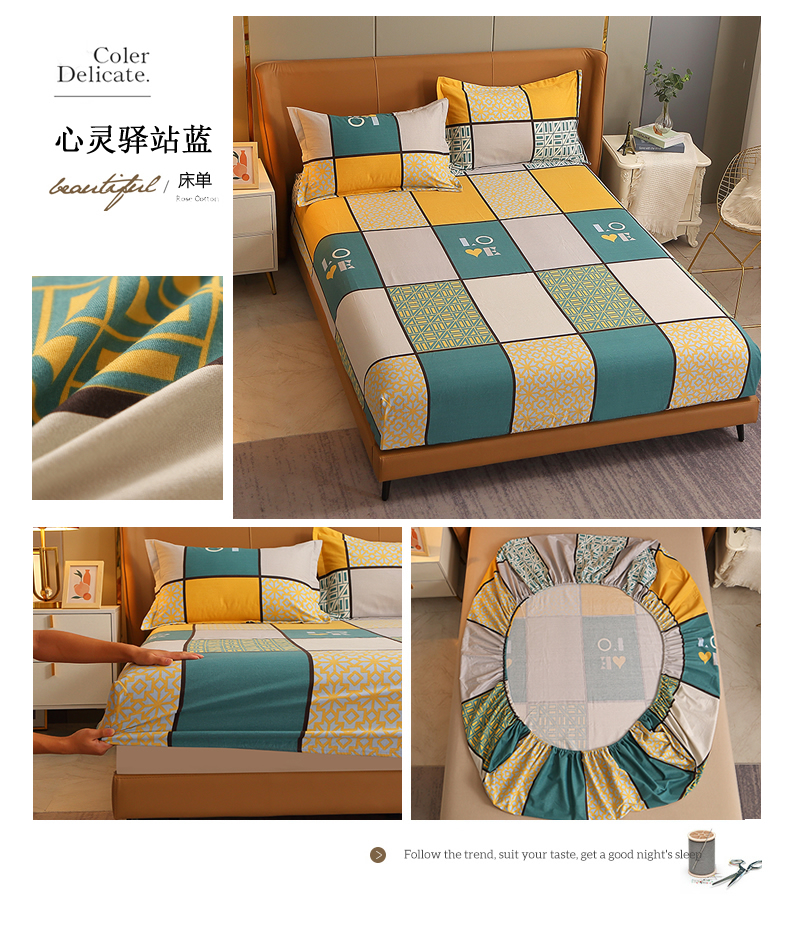 晶缦家纺 2024新款典雅系-全棉活性磨毛多规格单品床笠 心灵驿站蓝