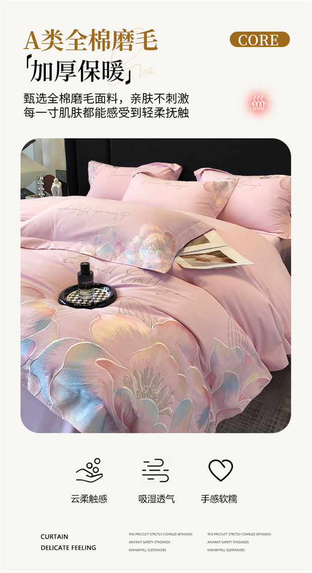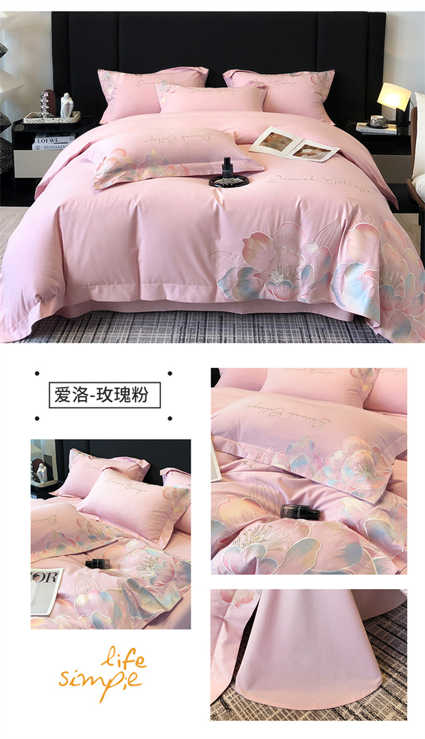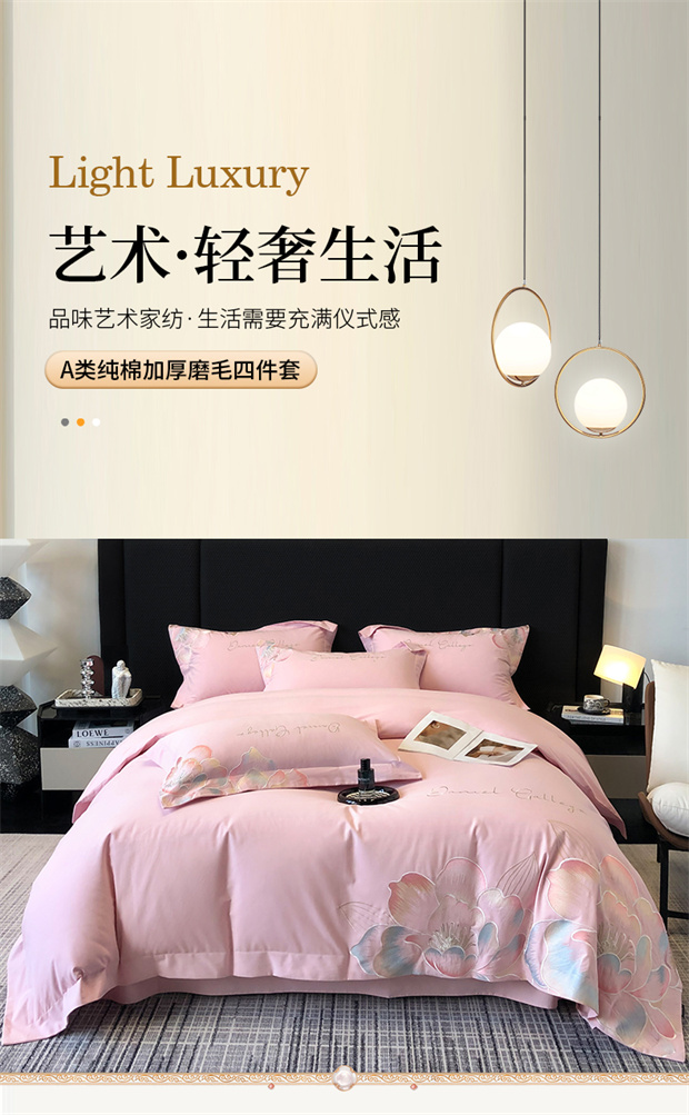 当前位置: 91家纺网 > 商品网购 > 床品套件 > 四件套 > 普通磨毛四件套 > 家居1号家纺 2024新款全棉磨毛刺绣四件套-爱洛 爱洛-玫瑰粉