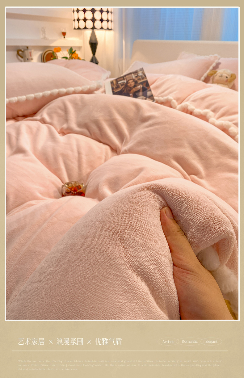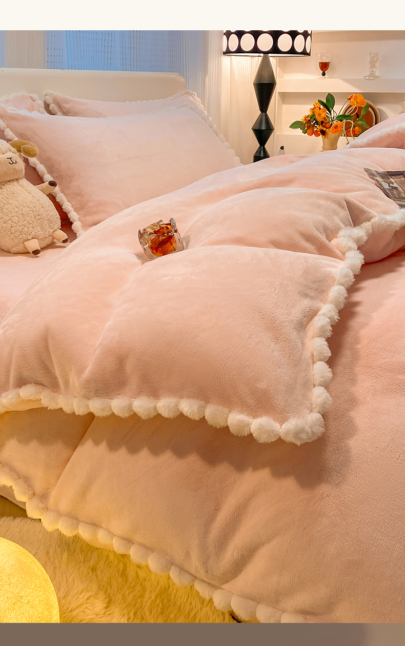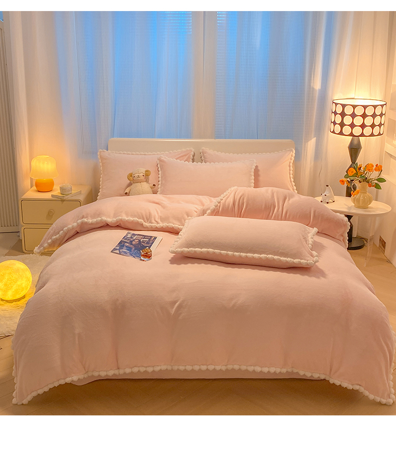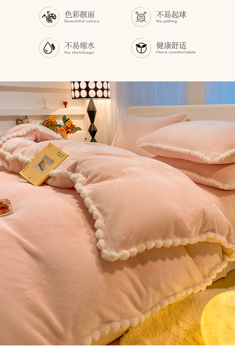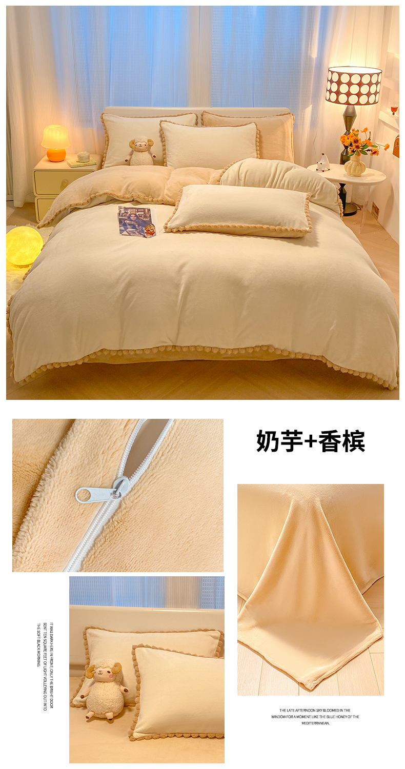 (总)盛秋家纺 2025新款A类牛奶绒毛球工艺款四件套-琳达(暖光)