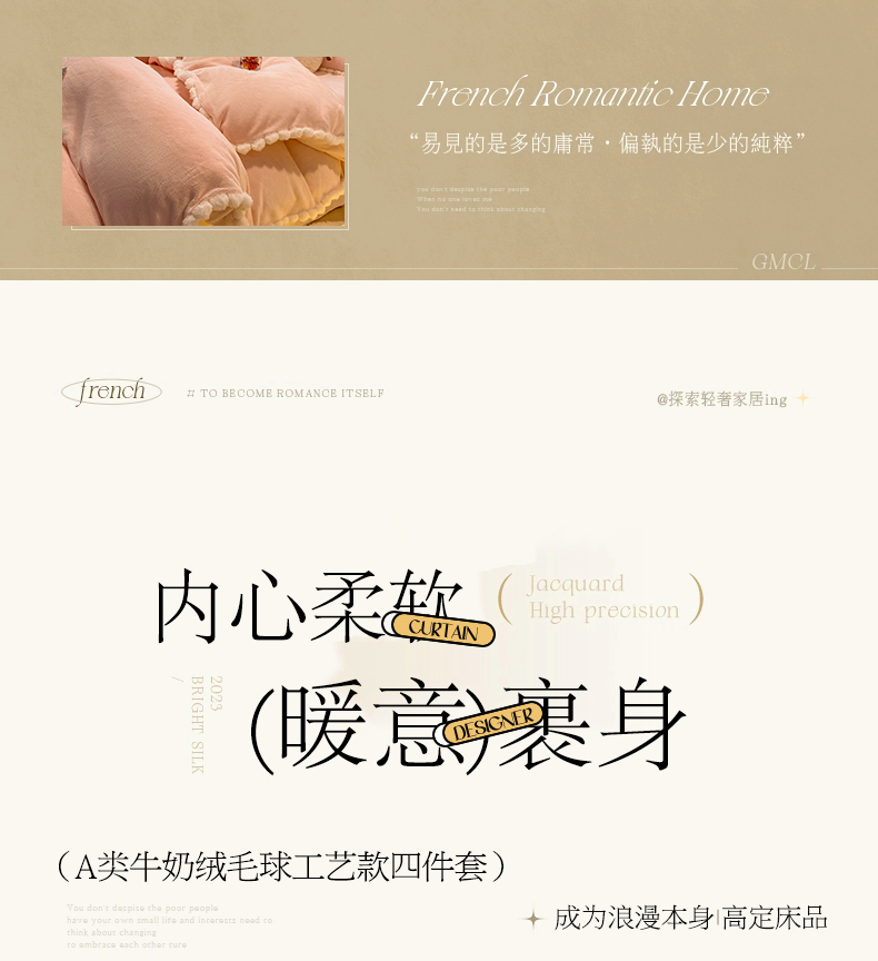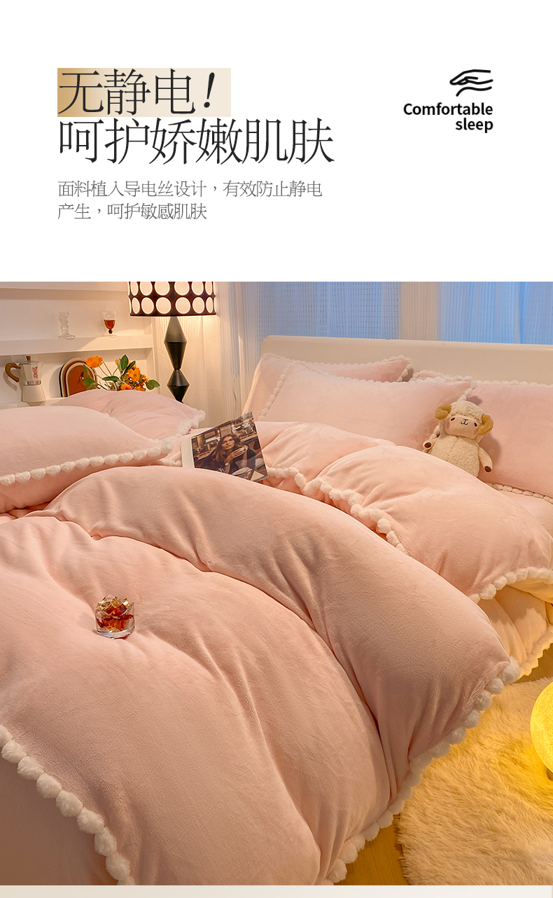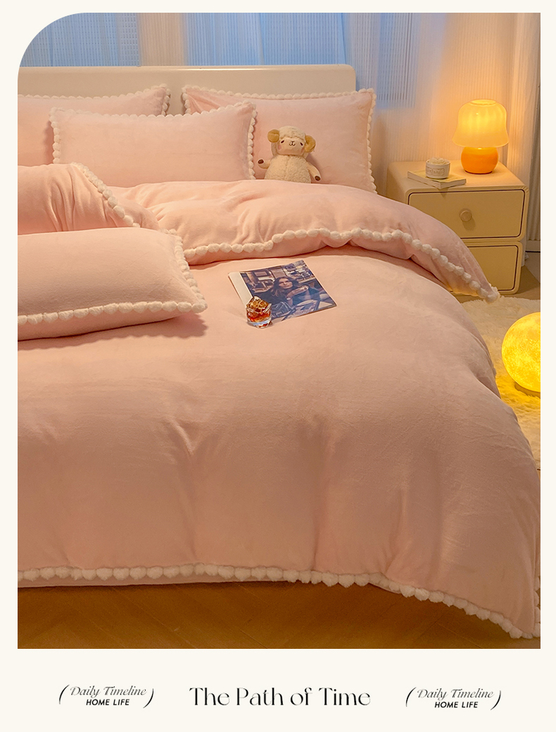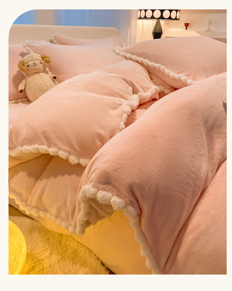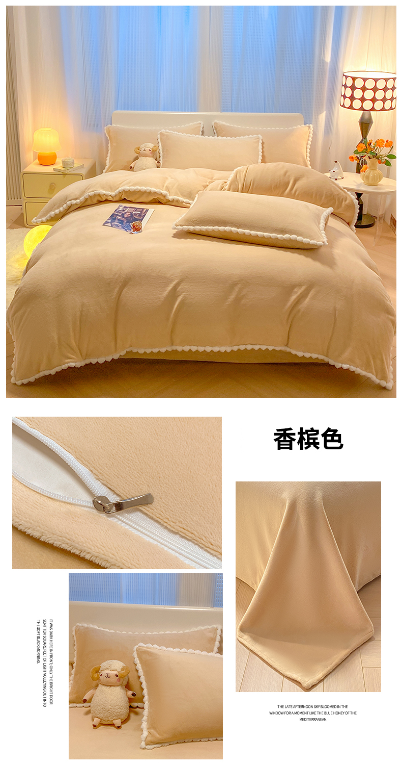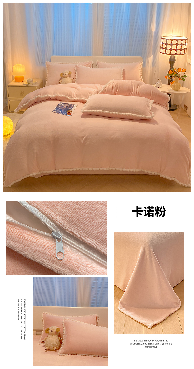 (总)盛秋家纺 2025新款A类牛奶绒毛球工艺款四件套-琳达(暖光)
