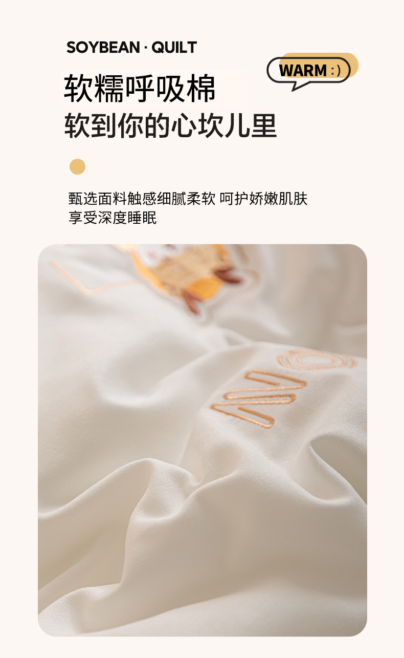 (总)米洛贝伊 2025新款艾绒暖芯被大豆被被子被芯冬被,花庭玉,奶杏色