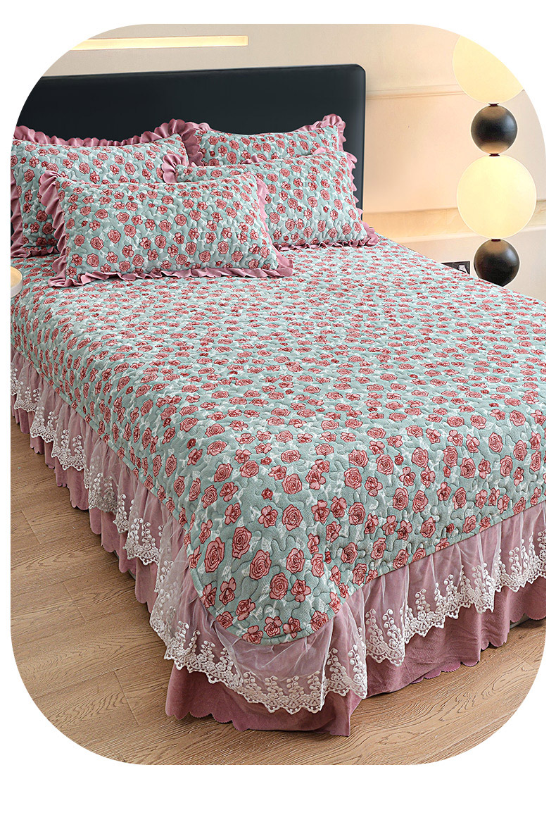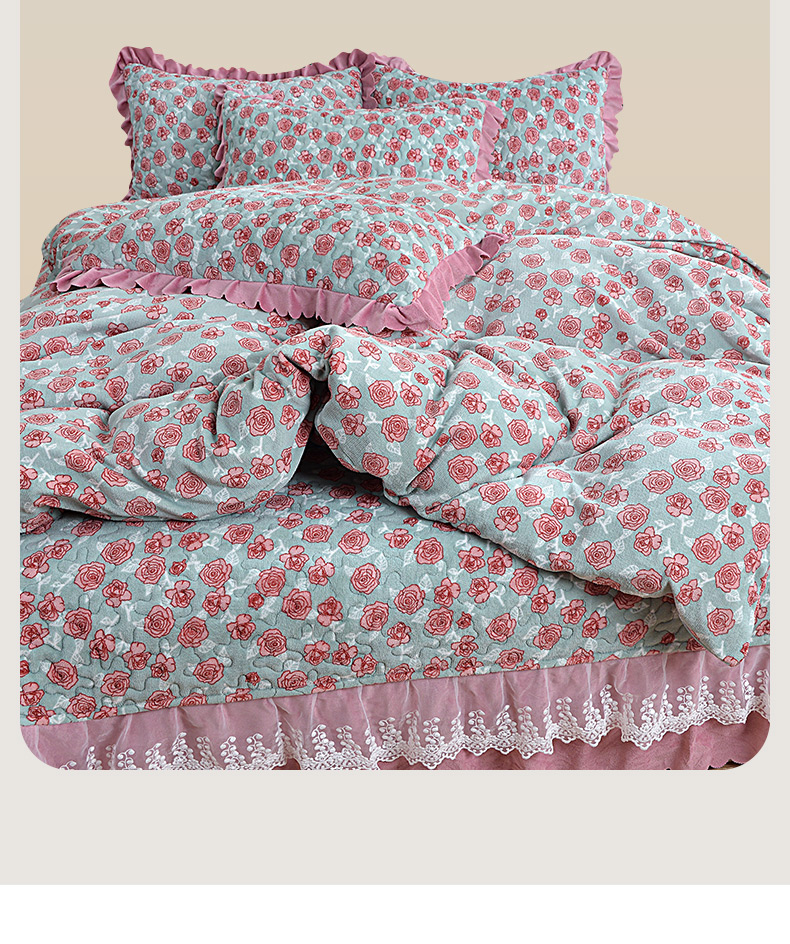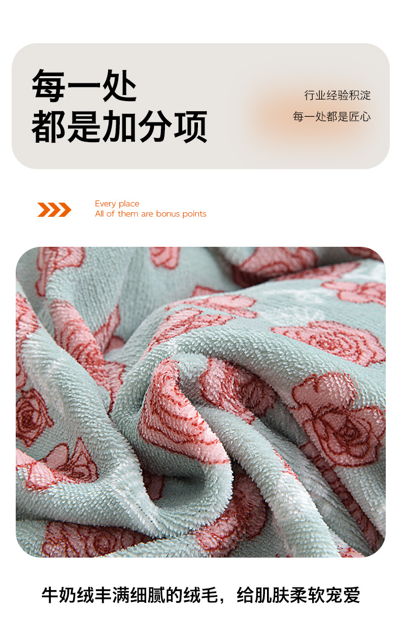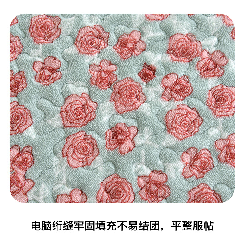 2024新款亲肤牛奶绒夹棉床盖四件套 粉色玫瑰