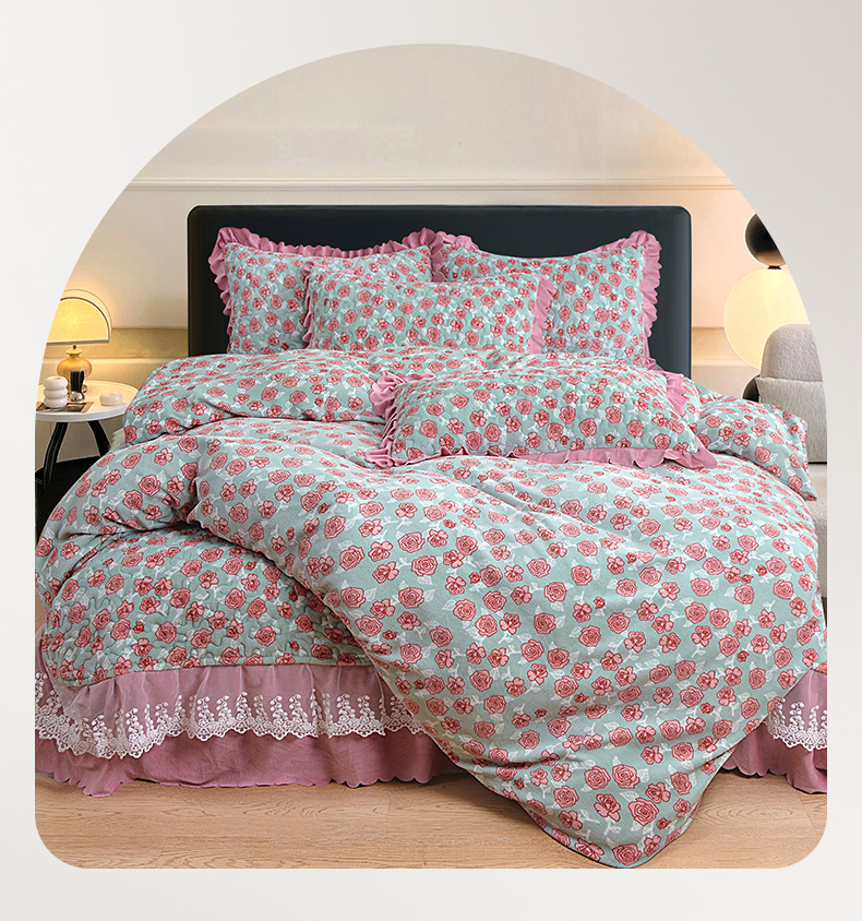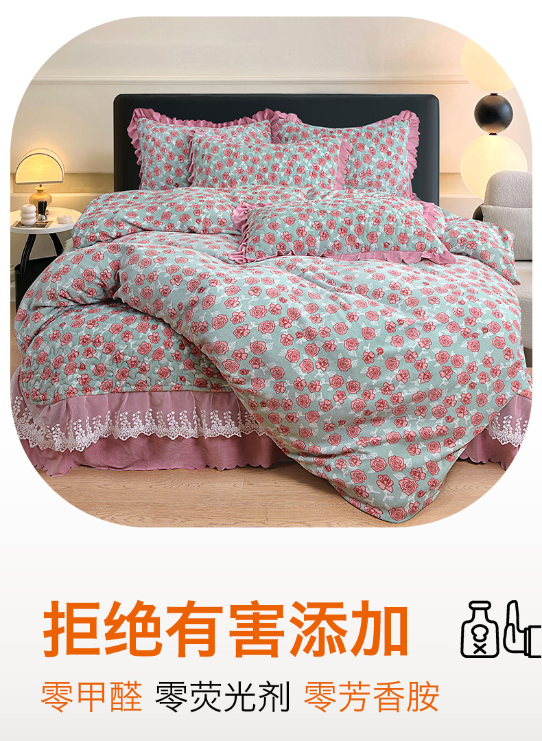 (总)梦柏 2025新款韩版双层纱夹棉绗缝床盖夏被四件套,爱心,春意,芳香,花溪,林荫,绿野仙踪,萌小兔,南瓜派对,清风,思念,香草,小蘑菇,小熊,薰衣草,幽香